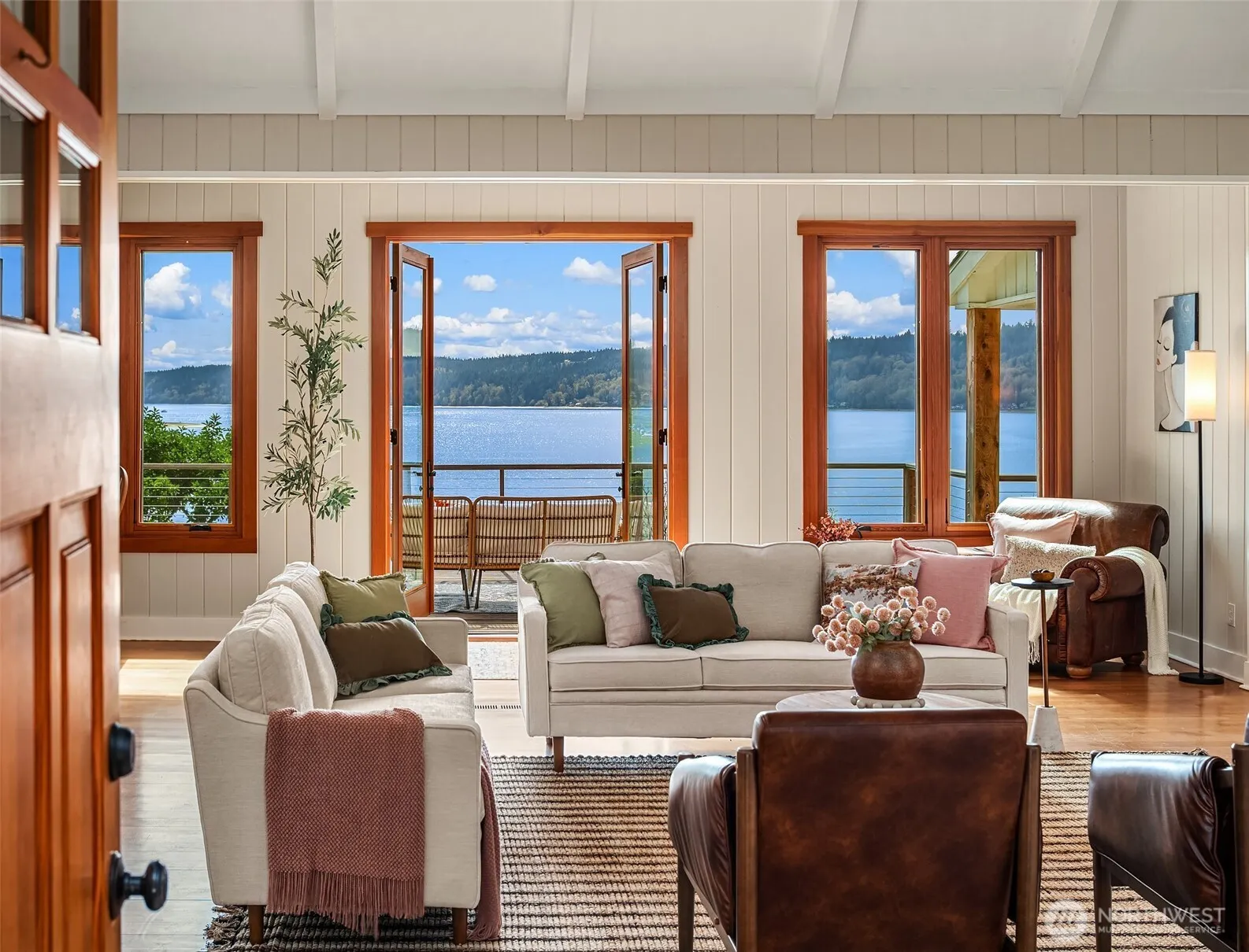 Perched on the sun-kissed Burton Peninsula, this classic coastal-style waterfront sanctuary offers a life bathed in light and serenity. Gazing south over the Puget Sound’s endless blue, the home rests on a shy acre of lush beauty. A seamless indoor-outdoor connection invites you to relax on the expansive deck and dine al fresco. Built in 1939, the grand entrance into the great room boasts soaring vaulted ceilings, rich hardwood floors, and a prominent wood-burning fireplace. Elegant and timeless, it offers 5 bedrooms, 3.5 baths, including a charming MIL suite w/ its own kitchenette and entrance. A spacious office, bonus room, and solar panels complete the finest PNW experience – don’t miss this coveted haven where nature and luxury entwine.