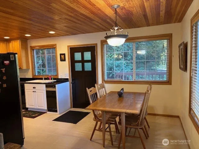 Completely rebuilt cabin w/quality materials (only partial foundation from original cabin). Custom Alder cabinetry, granite tile counters, solid Fir doors & wood wrapped windows. Nice partial view of the lake & mtns. Continental bath with W/D, updated appliances & freestanding propane stove. Attractive deck & separate patio area w/firepit. Cedar shake siding, shop/boat storage or sm. 1 car garage attached. Some furnishings included. Recreation use only, can’t be a permanent residence or commercial rental. USFS land, buyer must apply for a Special Use Permit w/USFS. Contact Annabelle Pfeffer, Special Uses, annabelle.pfeffer@usda.gov for questions regarding the Recreation Residence Program. Security cameras active. Buyer to verify all data.