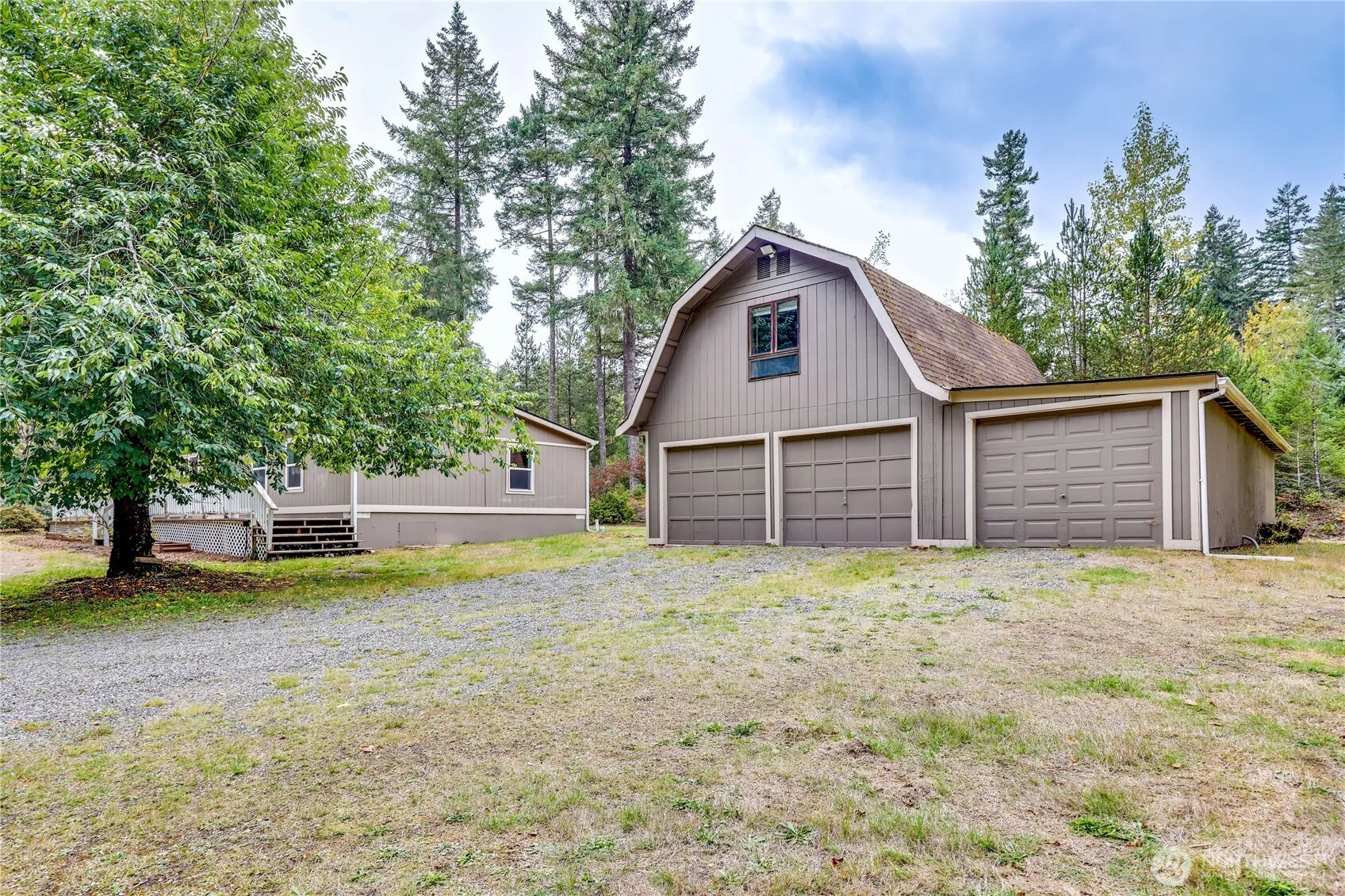 Don’t miss your chance to own this private retreat on nearly 5 acres of peaceful, usable land. Huge Creek meanders through the north end of the property, creating a serene, park-like setting with fishing opportunities. The 3-bedroom, 2-bath, 1,512 sq ft home features NEW FLOORING, vaulted ceilings, ceiling fan, fresh paint, and a convenient utility room. A 34’x38’ shop provides 4 parking spaces, a loft, and additional workspace—ideal for projects or storage. With open acreage, outbuildings, a chicken coop, fruit trees (apple & cherry), this property offers great space for farming, potential equestrian use, additional dwellings for multi-gen use, or simply enjoying the privacy and space.