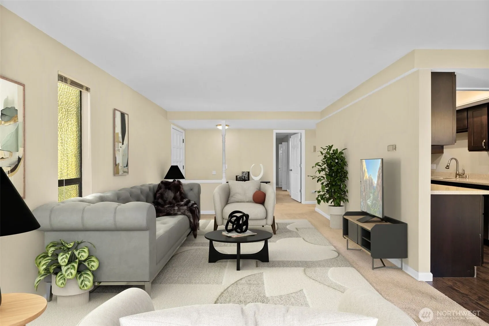 Beautifully updated 1-bed, 1-bath ground-floor corner unit in the gated Caravelle community of East Hill, Kent. Features quartz countertops, modern finishes, and no popcorn ceilings. Enjoy your own private exterior entrance and peaceful patio just steps from the pool and clubhouse. Covered carport parking with adjacent storage offers convenience, while the spacious layout includes double closets and full bath access. HOA includes water, sewer, trash, and common area maintenance. Community laundry is located close to unit. Walkable to Kent Station, ShoWare Center, shopping, dining, and transit. Stylish, move-in ready, and perfectly located for easy living in a vibrant neighborhood.
