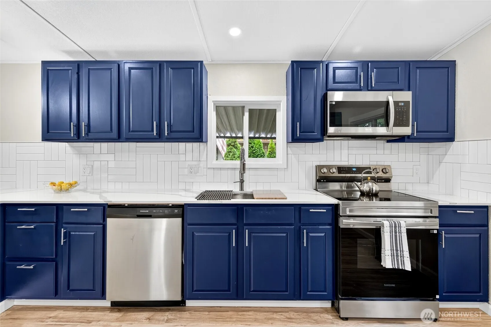 Totally renovated home feels like new as you enter, located in a 55+ community close to shops ,park & ride and I-5 .Updates include roof, bathroom with luxury tile, flooring, kitchen with granite counter tops, new appliances including full size washer and dryer, through the wall AC. New covered porch, professional landscaping, new vapor barrier, fresh paint inside and out nice size storage shed. Conveniently located and one of the most affordable rents in the area ($660.00 a month) include S&G, water only $20.00 approx., billed by park. Walking distance to public transportation, shops and clinic. RV and extra cars parking available. Dogs less than 25 pounds subject to approval. HURRY MAKE THIS BEAUTIFUL UNIT YOUR FUTURE HOME