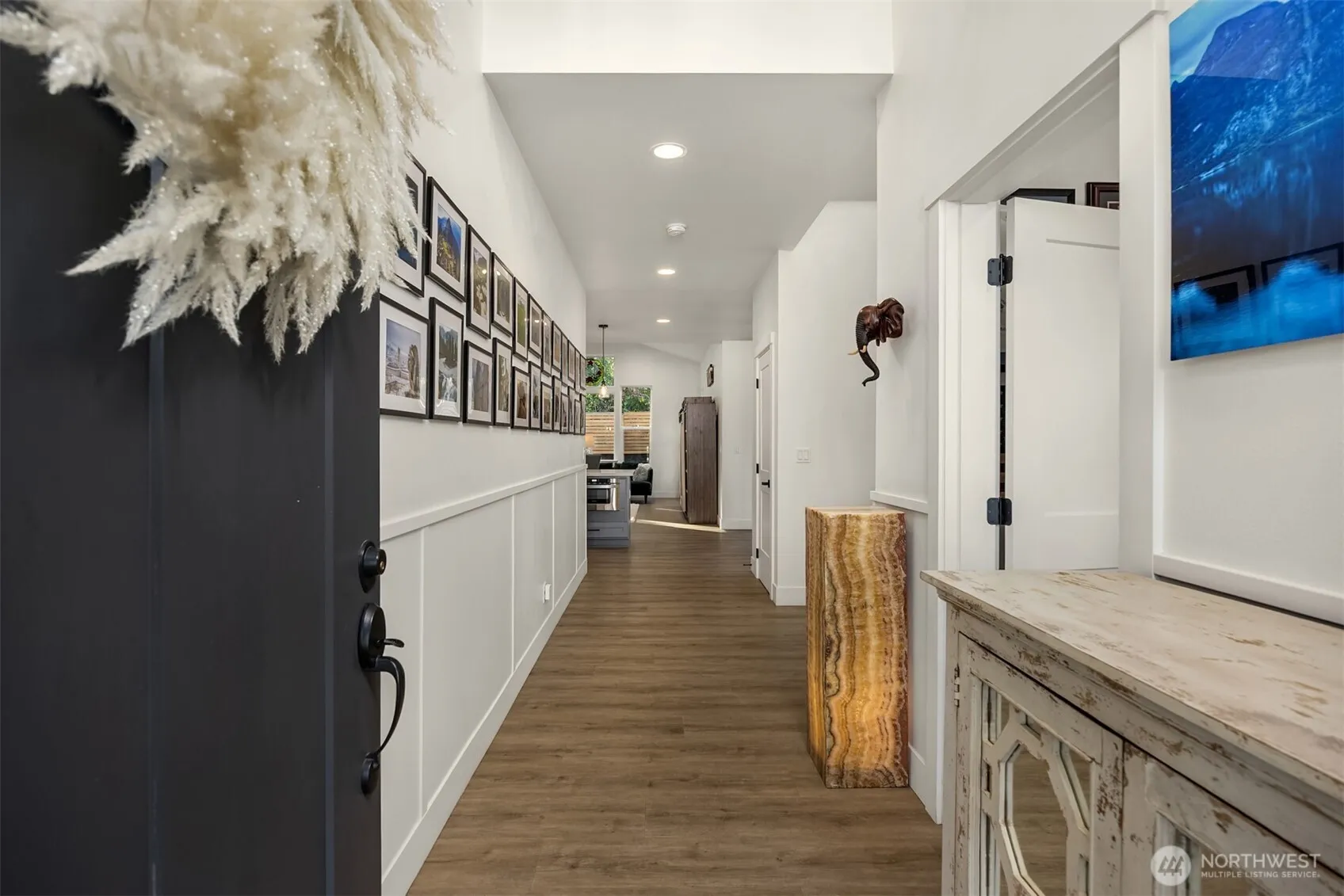 Stunning, almost new home, this nearly quarter-acre property offers privacy and convenience just minutes from downtown Poulsbo and Liberty Bay. Only 4 years old, in a small cul de sac of just 4 sites, the home features soaring ceilings and oversized windows that fill the space with natural light. The open layout flows seamlessly to a covered patio—perfect for entertaining—and a fully fenced backyard. Quartz countertops, custom lighting and chic fixtures throughout. The garage includes sleek epoxy floors for a polished, durable finish. Professionally landscaped with three bedrooms and an office. Huge ensuite primary bath, excellent builder. With its central location, modern upgrades, and thoughtful design, this home is truly better than new!
