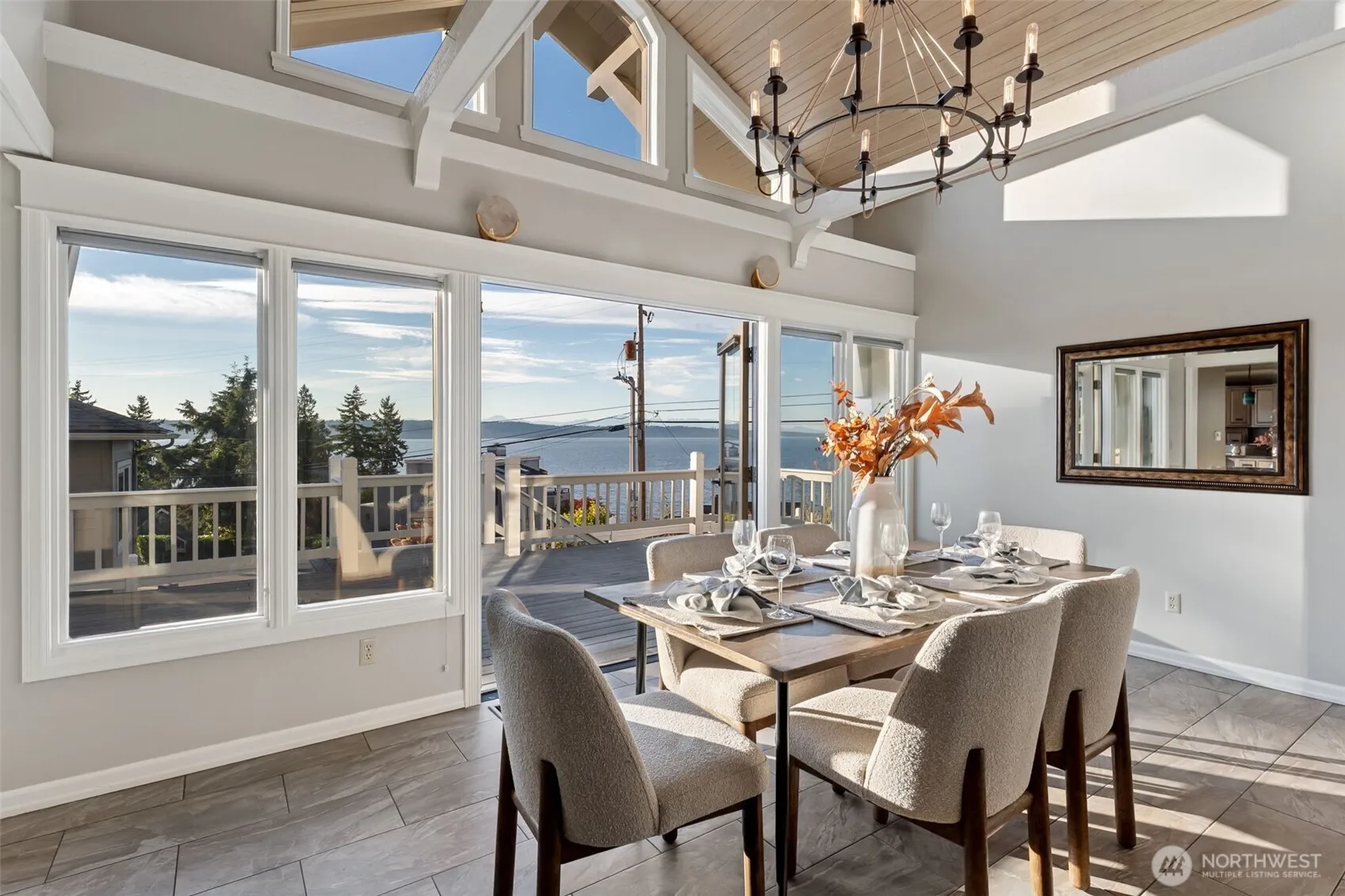 Set just off Maplewild Ave, this Three Tree Point home offers breathtaking views of Puget Sound & the Olympic Mountains. A perfect blend of traditional architecture & modern design, home features beautifully updated kitchen & baths, a huge living room ideal for entertaining, tall ceilings & a big statement fireplace. Enjoy stunning views from every west-facing room. Primary suite has a full bath, walk-in closet, & French doors that open to a private patio w/ views. Loft/ bonus room. Lower level: family room wired for surround, shop/ tool area, large laundry room w/ folding station, ample storage, & half bath. Generac Generator. Fully fenced, well-manicured yard. Detached 3-car garage w/ separate garden room & half bath. Welcome home!