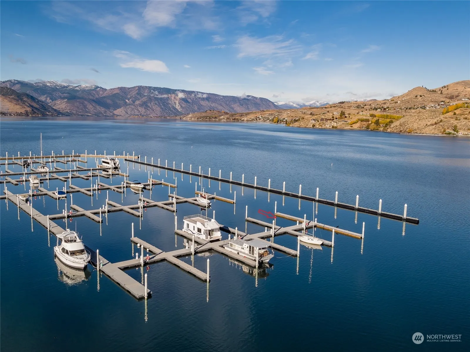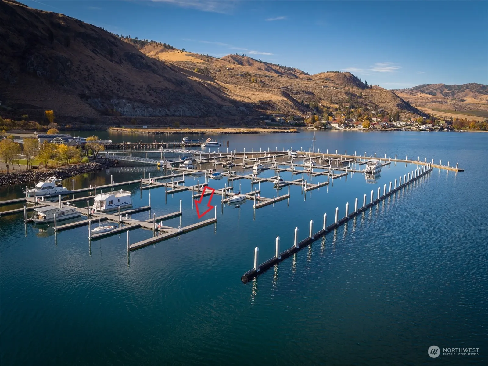 Sunset Marina at Lake Chelan is waiting for you! 24/7 gated marina w/ deep-water year-round moorage. F18 is a 40ft slip w/ easy in & out access. Each slip has water/power/WIFI, & there is a pump out facility located on the breakwater. This slip would also include the 30ft Maxum boat with low hours. Come start enjoying the lake life on the water and create lasting memories. Amenities include a private clubhouse, wet bar, TVs, large fire pit & patio area, BBQ stands, showers, laundry, convenience store and security. All this in a prime location in downtown Chelan w/ a private parking lot on the marina grounds. CCRs allow for rental(Minimum 3 night) weekly, monthly or yearly rental.
