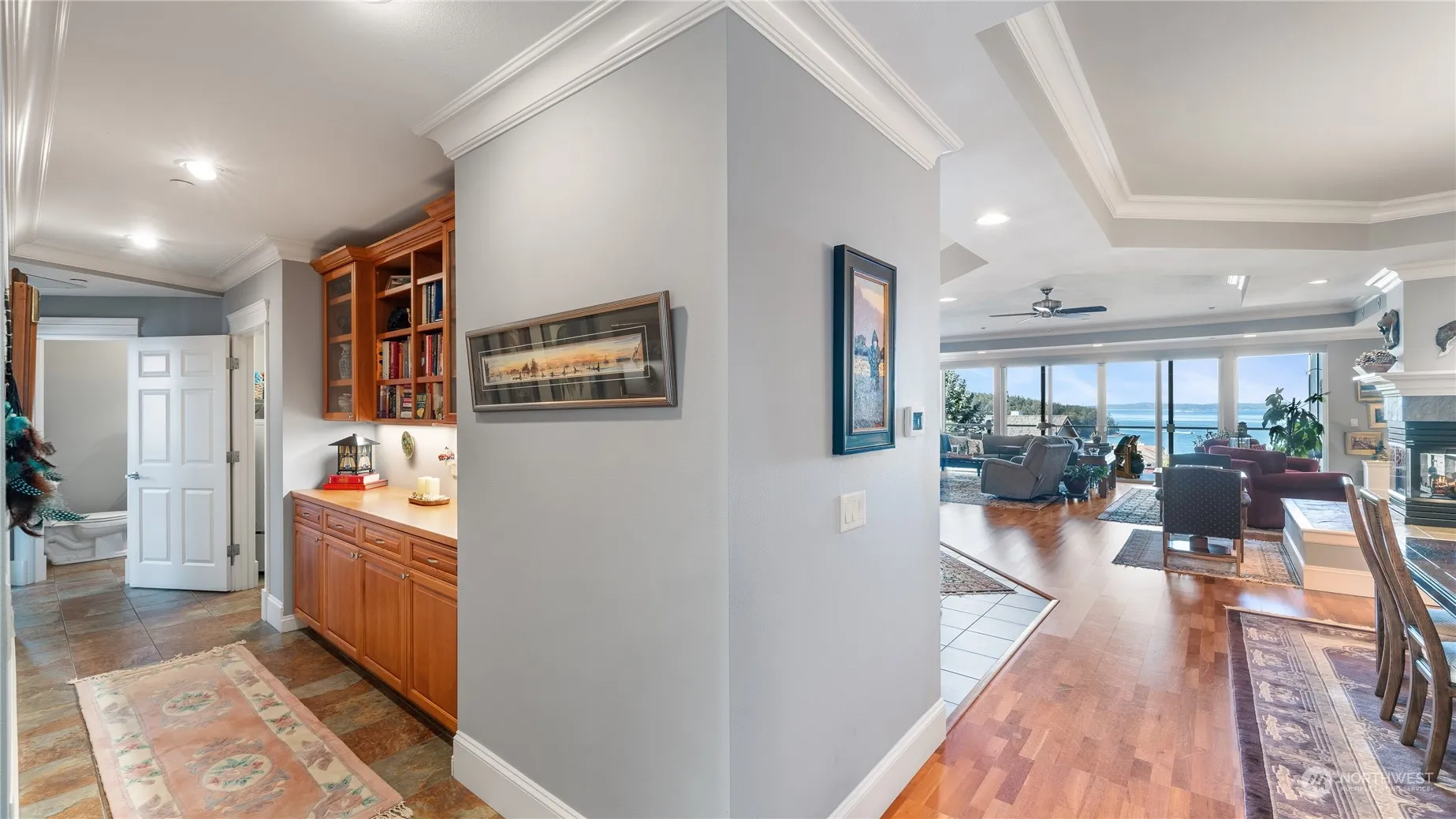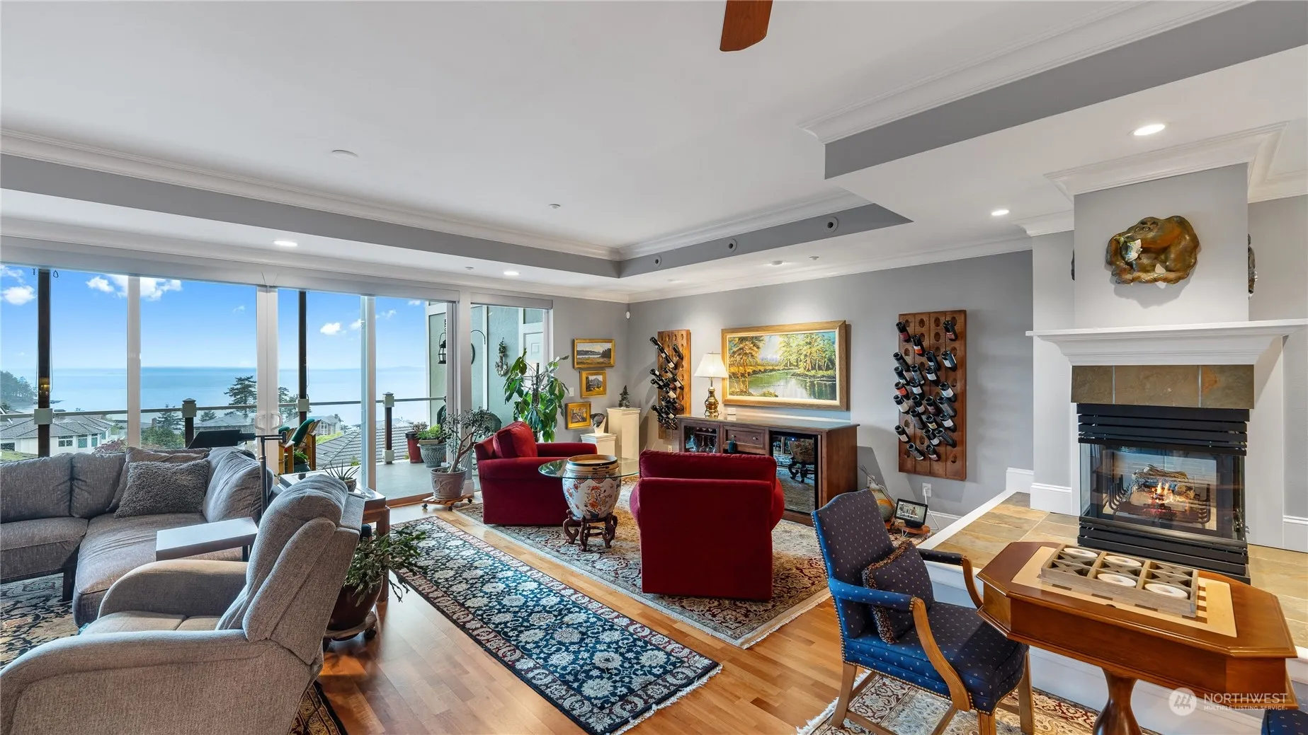 Must see condominium with incredible! amazing! views. Balcony is perfect for entertaining (plumbed for gas grill) Cherry wood and slate floors, walk thru master closet (back entrance to laundry room), upgraded wood/granite built-ins in serving pantry; state of the art appliances, shower with view & more! Video monitored security & alarm systems. This unit is exceptional! Entertainment center and TV stay, dual head shower with view & more! End unit with Shannon Pt. as neighbor means wooded park like setting. Video monitored security & alarm systems. This unit is exceptional! Other items are negotiable.