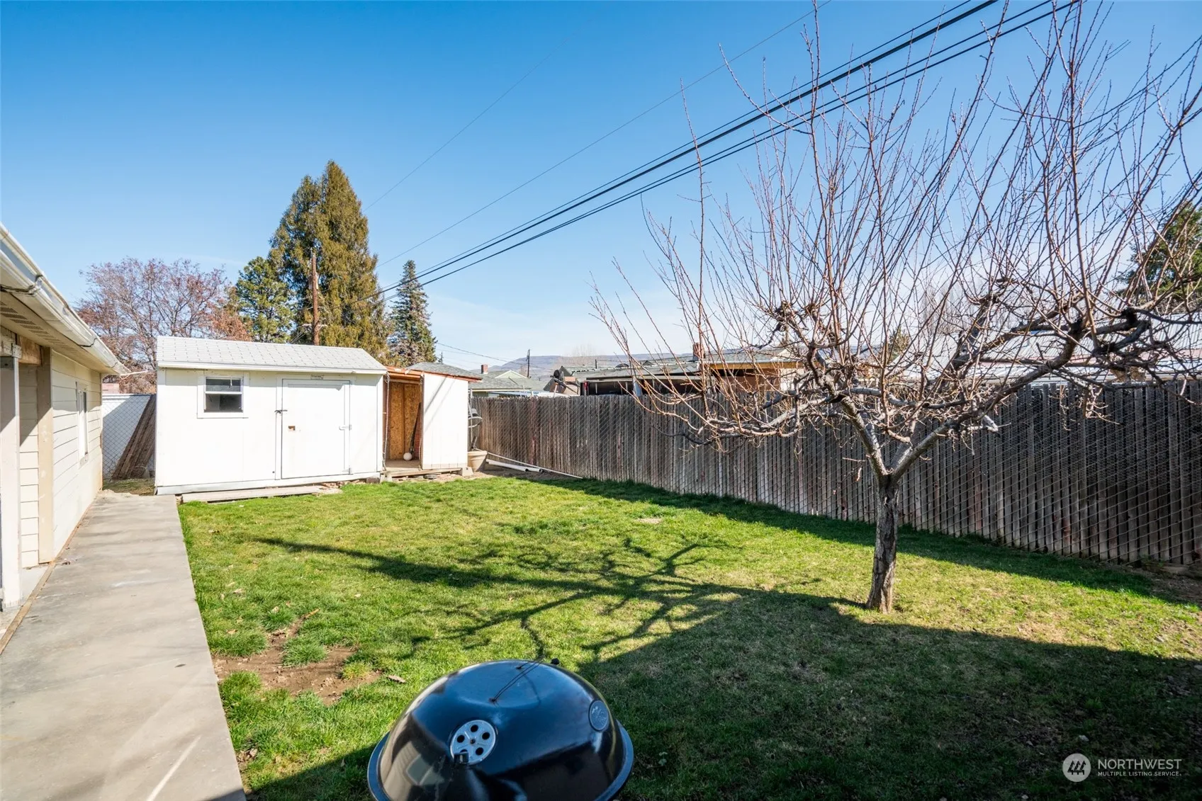Nestled in a nice neighborhood in the welcoming community of Wenatchee, WA. This 5 bedroom, 1.75 bath one level home offers a spacious 1,834 square feet. Side one of the home includes 3 bedrooms, a full bath, kitchen and living room. The other side of the home, which can be accessed from a separate outdoor entrance, has two bedrooms, a bathroom with a shower and a kitchen/dining area. In addition, the fenced back yard has two outbuildings with power, one for storage and the other is heated with a finished interior. Located near schools, hospital, the City pool & recreation with off-street parking. This property is zoned Residential High so there are many possibilities. Current tenants are extended family that will vacate on closing.