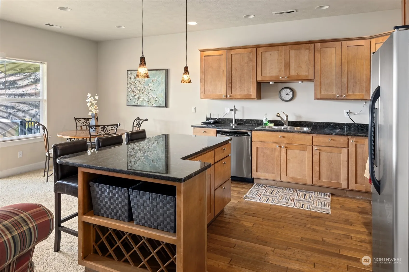 Breathtaking views from this fully furnished 2bd/2ba + bonus room home. Amazing views from the Kitchen and Living room of the Columbia River and beyond! Perfect for cooking while enjoying friends. Sliders that lead to your private viewing deck off the main level and custom staircase for easy access to grass play area, the golf course, and the Canyon pool nearby. Slide down the hill w/snow in the Winter! Master suite has a patio off the lower level that will not disappoint! Completely turnkey just show up and have fun!!
