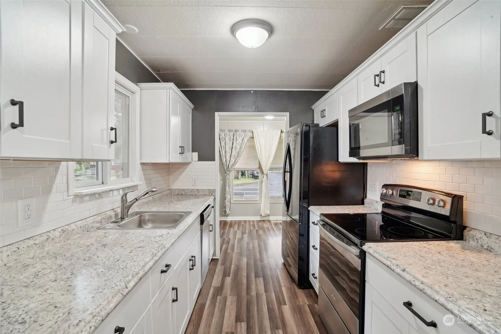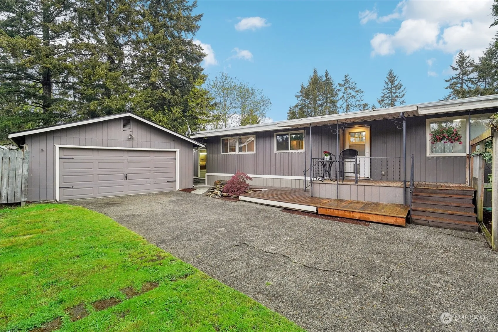 Welcome to your spacious retreat! This 2-bedroom, 1.75-bath rambler boasts charm with new vinyl floors throughout the main living space & an updated kitchen. Private primary suite and guest bedroom/bathroom tucked away from the main living area. Enjoy seamless indoor-outdoor living with a sliding door leading to your covered back deck & spacious yard, perfect for entertaining or relaxing. Recent upgrades include a new roof in 2023 & updated plumbing and sewer pumped in 2023, ensuring worry-free living. With ample storage space with detached shed, an oversized 2-car garage with shop space, & an extra-long driveway, convenience is key. Nestled near amenities, this home offers both comfort & accessibility. Discover your new haven today!