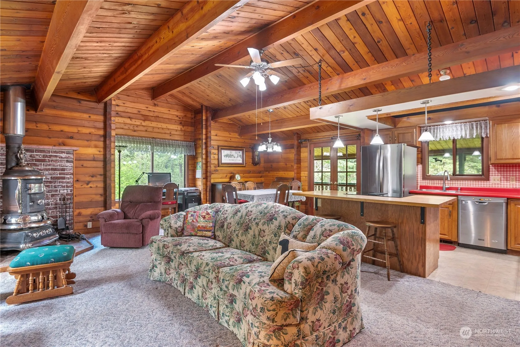 Beautiful Cedar Log home in Salmon Creek on 2.14 acres. Private, serene setting bordered on two sides by greenbelt in the Whipple Creek watershed. Open concept living room, kitchen and dining room on main floor As well as primary bedroom, bathroom and den/office. Two additional bedrooms, partial kitchen, second bathroom, utility room & living area on lower floor. Cedar deck in front and back as well as full length concrete deck in back. Newer Hvac with woodstove and fireplace. Serene backyard has fruit trees, wildlife, 2 storage sheds & woodshed. Garage with parking and shop area. Garden shed and large carport for all your goodies. Close to hospital, shopping, restaurants and schools!