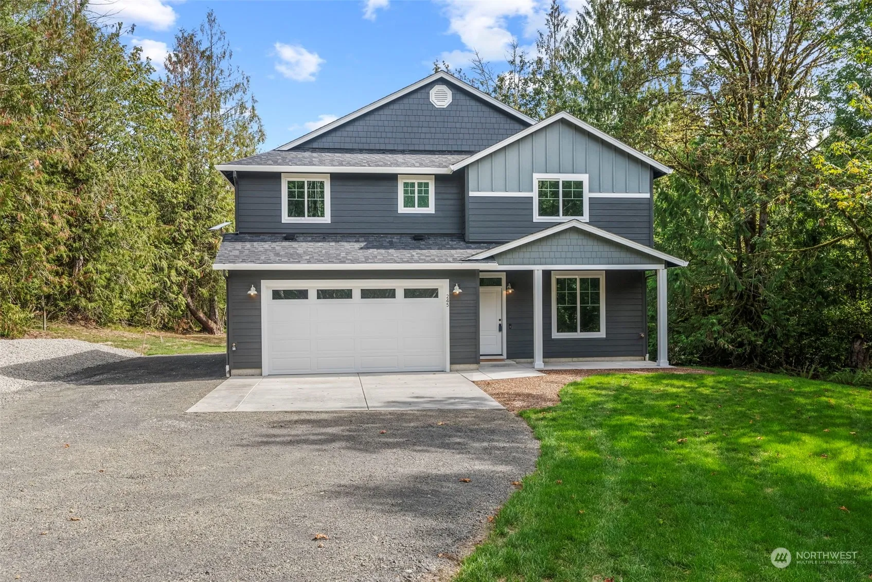 Come see this NEW construction home situated on 5.6 secluded acres not far from I-5 and amenities. This is a 2115 sqft 3 bed 2.5 bath with quality finishes and attention to detail. Kitchen features all SS appliances including fridge, large Island, quartz counters, and custom fixtures. Main floor consists of open concept kitchen/living area, 1/2 bath, utility room w/sink, and a finished garage! Upstairs you will enjoy 3 large bedrooms with an additional living space or play room. The large primary suite is sure to impress with double sinks, walk in shower, and walk in closet. Outside you will enjoy your own private oasis off of the covered deck, view the mixed forest acreage, and enjoy a seasonal creek! Property has room for shop or animals!