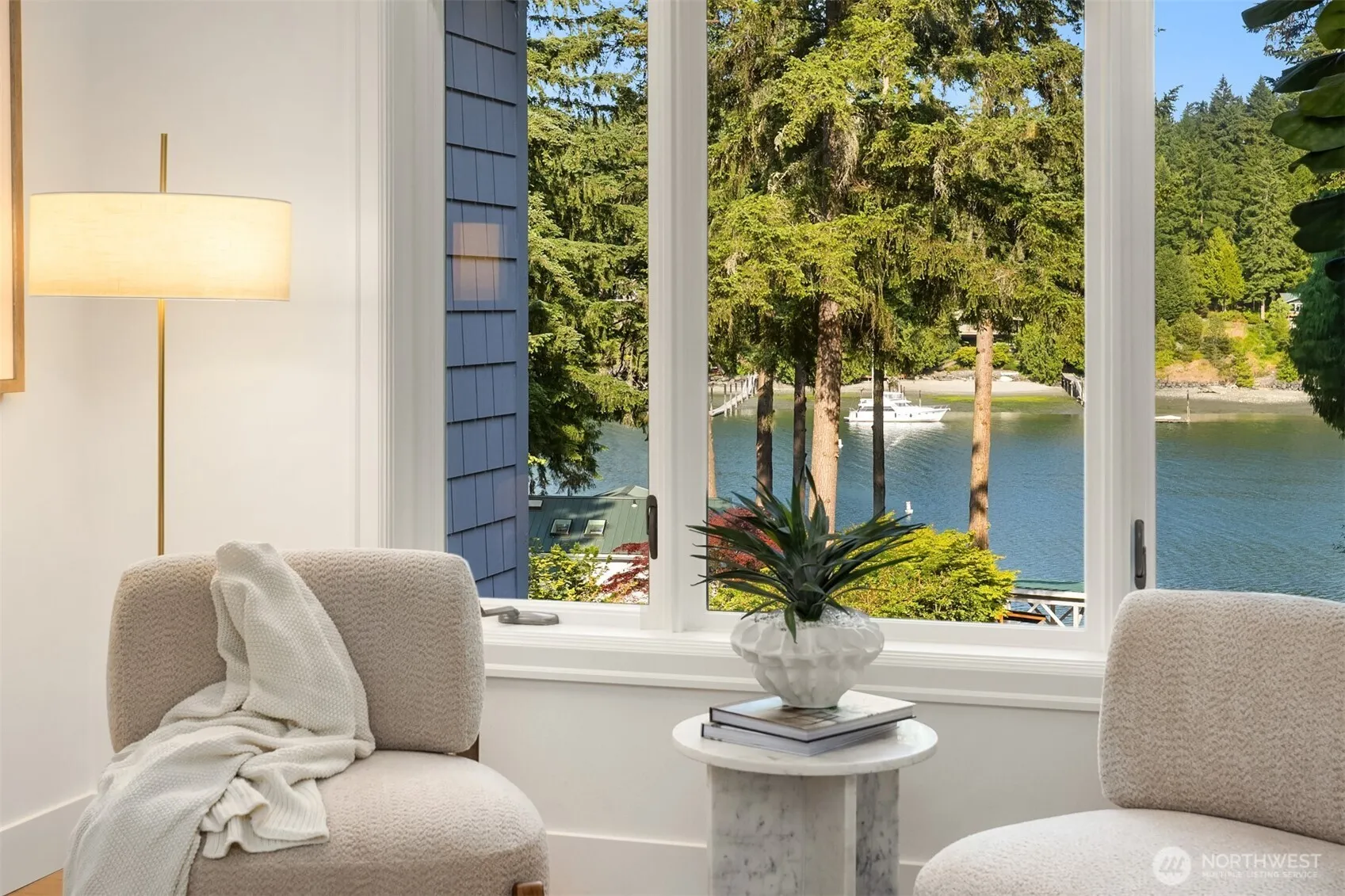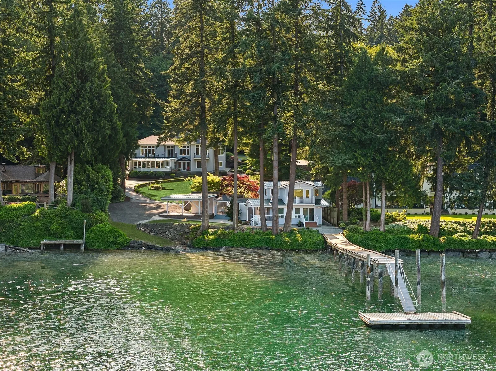 Rare Bainbridge Island waterfront retreat on 1.4 private acres featuring two independent dwellings, year-round deep-water moorage, and private boat launch. Offered for the first time in 50 years, this exceptional estate delivers what few can. The elegantly renovated main home showcases walls of windows, radiant heat throughout, a spacious view deck, all en-suite bedrooms, and a stunning solarium overlooking Manzanita Bay. Substantial outdoor living & entertaining spaces abound. At the water’s edge, a grandfathered in beach house offers premier guest or multi-generational living. A long, secluded park-like drive and proximity to the island’s best park and trail systems at Battle Point Park complete this one-of-a-kind waterfront offering.