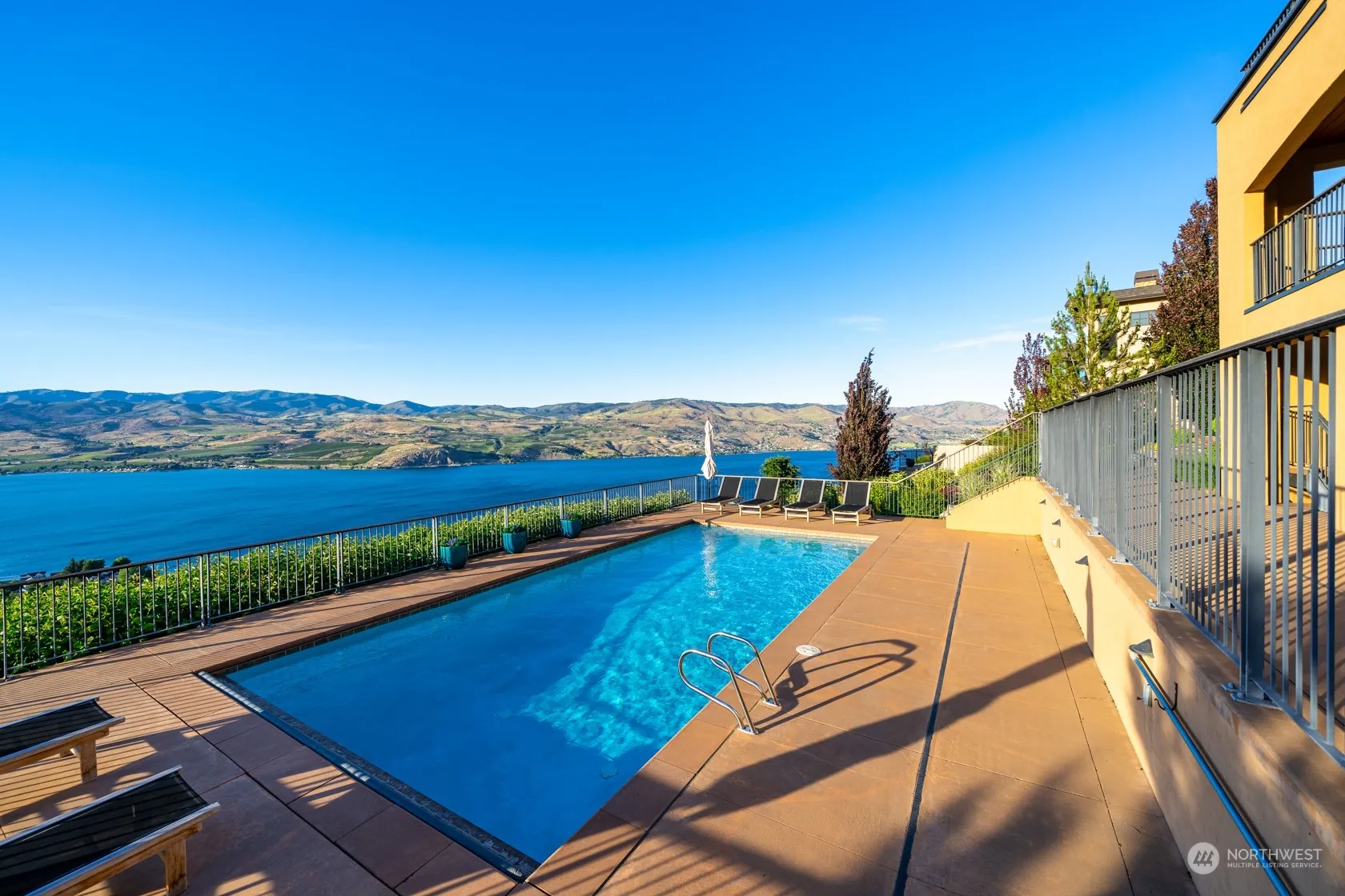 Panoramic lake and territorial views! Nestled in the vineyard laden gated community of Clos CheValle, this sprawling luxury daylight rambler offers privacy, serenity and hours of relaxation all on 3/4 acre. Home boasts two large decks, two indoor and one outdoor fireplace, large heated pool with auto cover, outdoor sprinkler system, EV charger in the garage, high speed fiber, upper end appliances, high ceilings, open concept, large dining area and so much more.