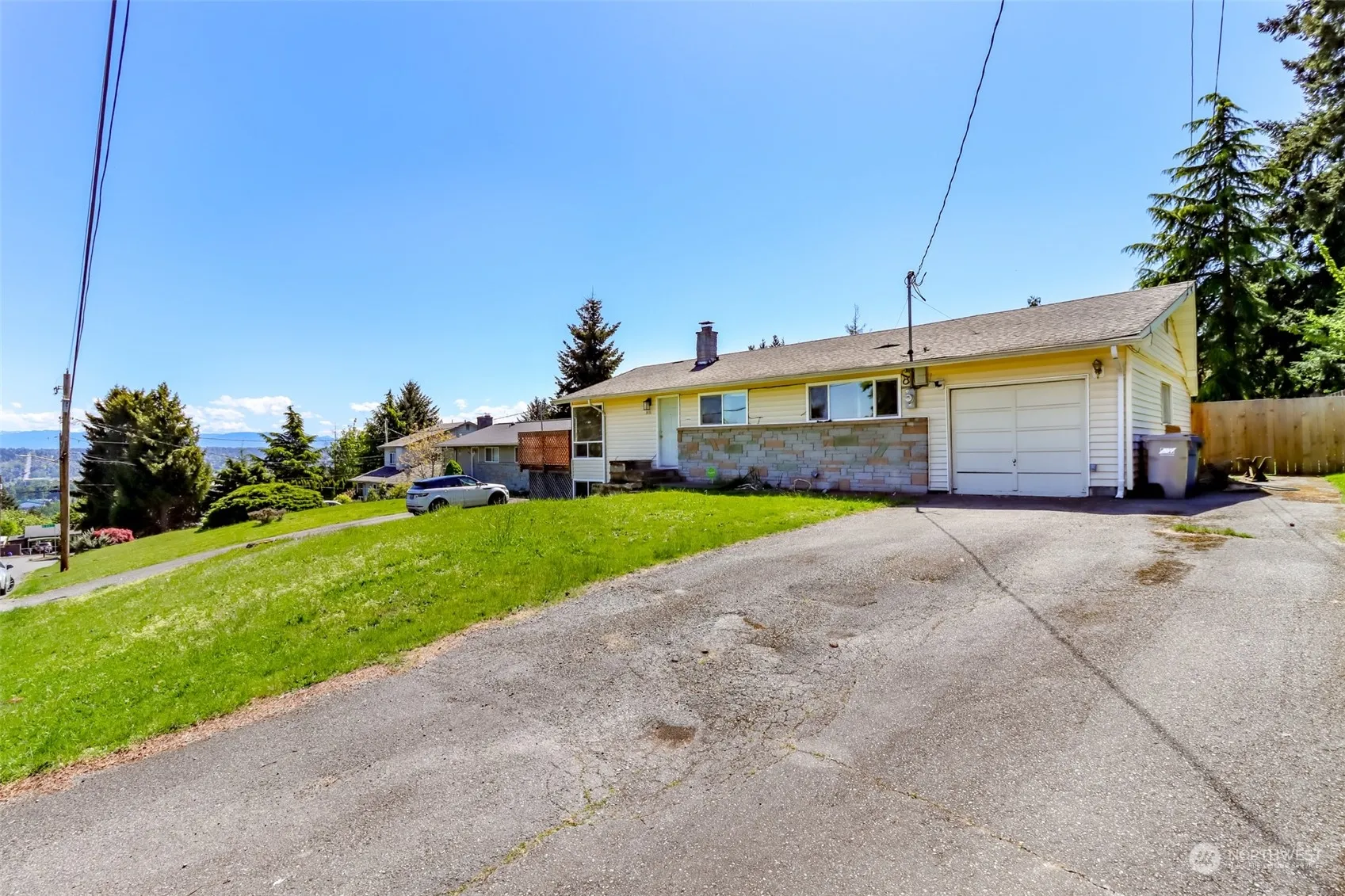 Wonderful opportunity to make this 3 bedroom 1 bath house with large basement an amazing home. Newer windows, fully fenced large yard with dog run, attached garage with additional private parking, and amazing views from a new deck. Private entrance to the basement with fireplace and living space. Newer heat pump and air conditioner. Great commuting location, close to Sea-Tac, light rail near by, easy access to all freeways.