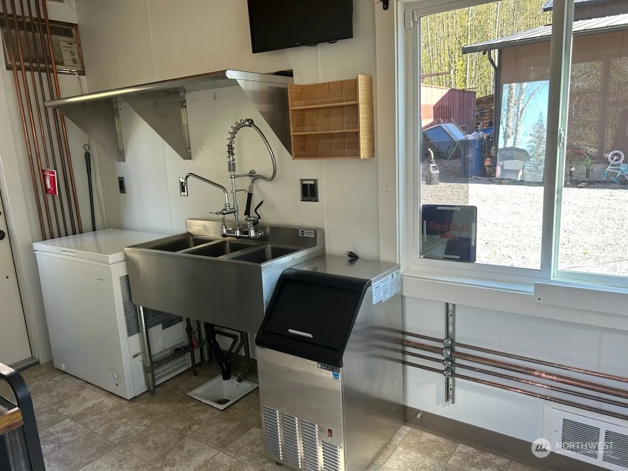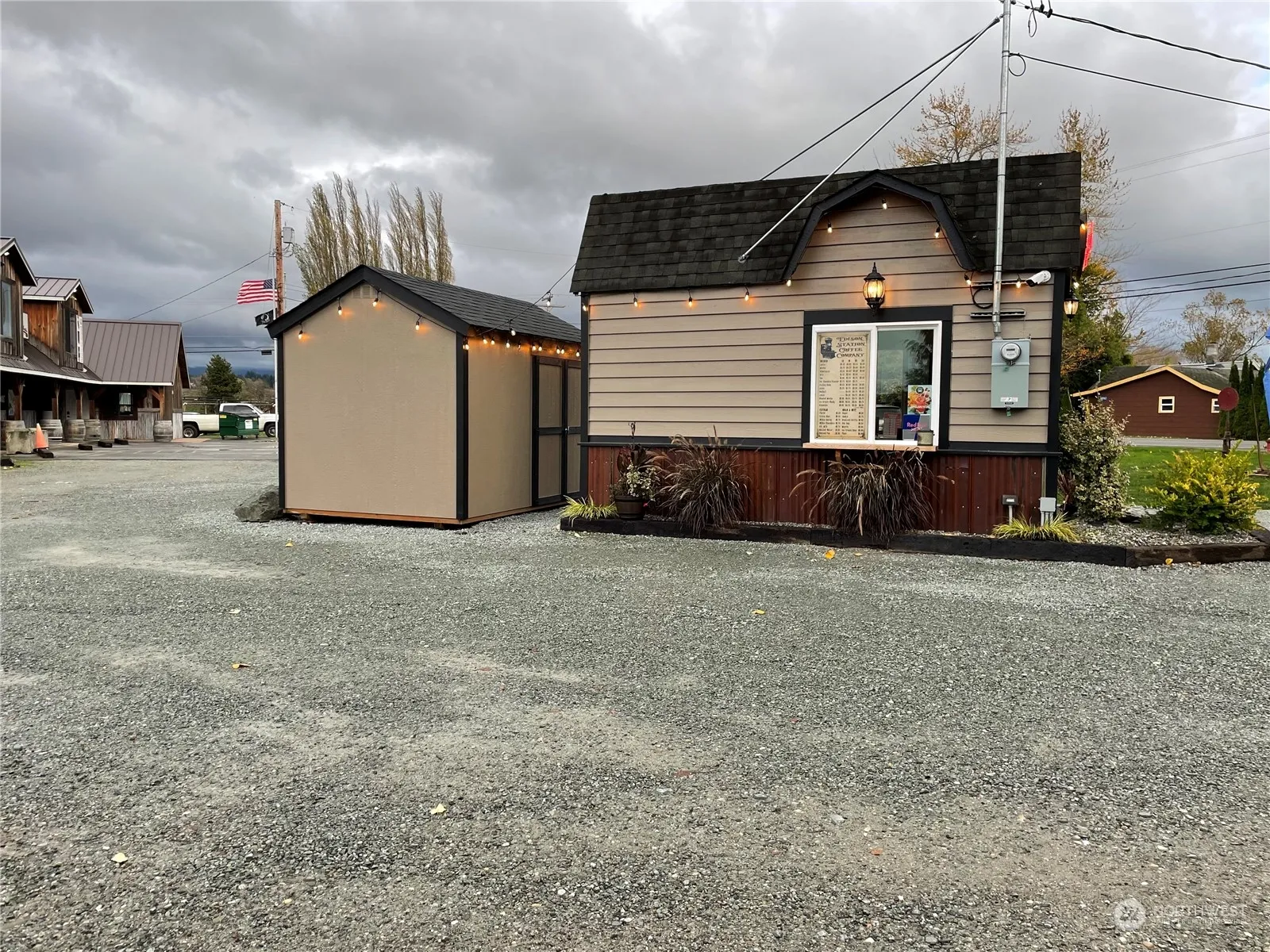 Here is your opportunity to own your coffee stand! All you need is the property to put it on. Double Sided Drive thru windows. 15.5 feet length, 12.5 feet tall & 8 feet wide, 125 square feet with storage loft. Ceiling fan, 2 group head espresso machine with multiple milk steamers, grinder, toast POS system, blender, toaster, microwave, toaster oven, ice machine, mini fridge, chest freezer, stainless steel commercial fridge/freezer, stainless steel 3 compartment sink, hand wash sink, stainless steel shelves and counter top. Security system with cameras included along with a/c unit. Brand new storage shed with full price offer, 8 x 12.