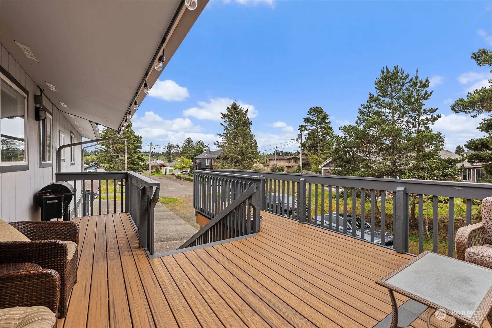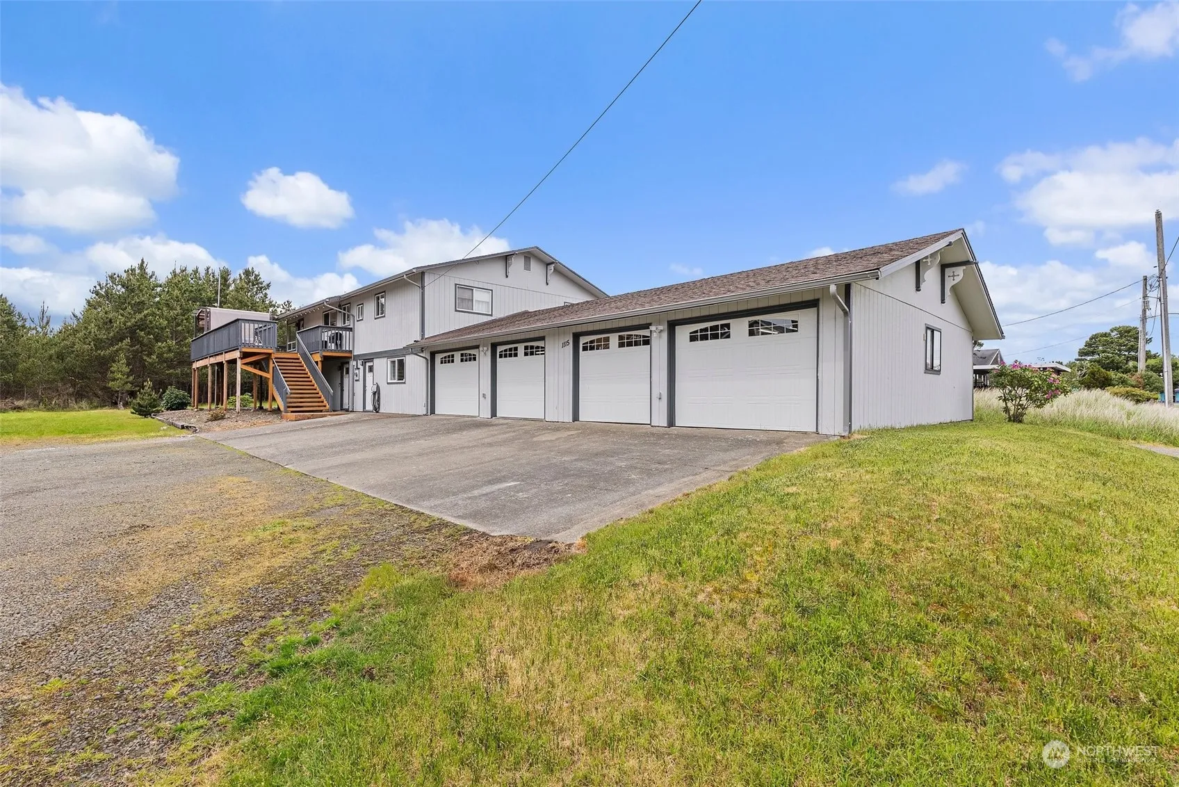 This stunning home, just a stone’s throw from the beach, offers an unparalleled blend of luxury & comfort. Boasting a rare 4-car attached garage w/ 1/2 bath, there’s ample space for vehicles & beach gear. Step inside & be greeted by the breathtaking panoramic views of the lush surroundings & mesmerizing ocean from the wrap-around deck. Discover an inviting open-concept living area, complete w/a spacious living room, dining area, & kitchen featuring a breakfast bar. The upper level also hosts an additional living space, 3 bedrooms & 2 baths. Venture downstairs to find a large second living space. Additionally, there’s a bedroom, office, bonus room, 2 more baths & spacious utility room, ensuring comfort & convenience for all. Welcome Home!