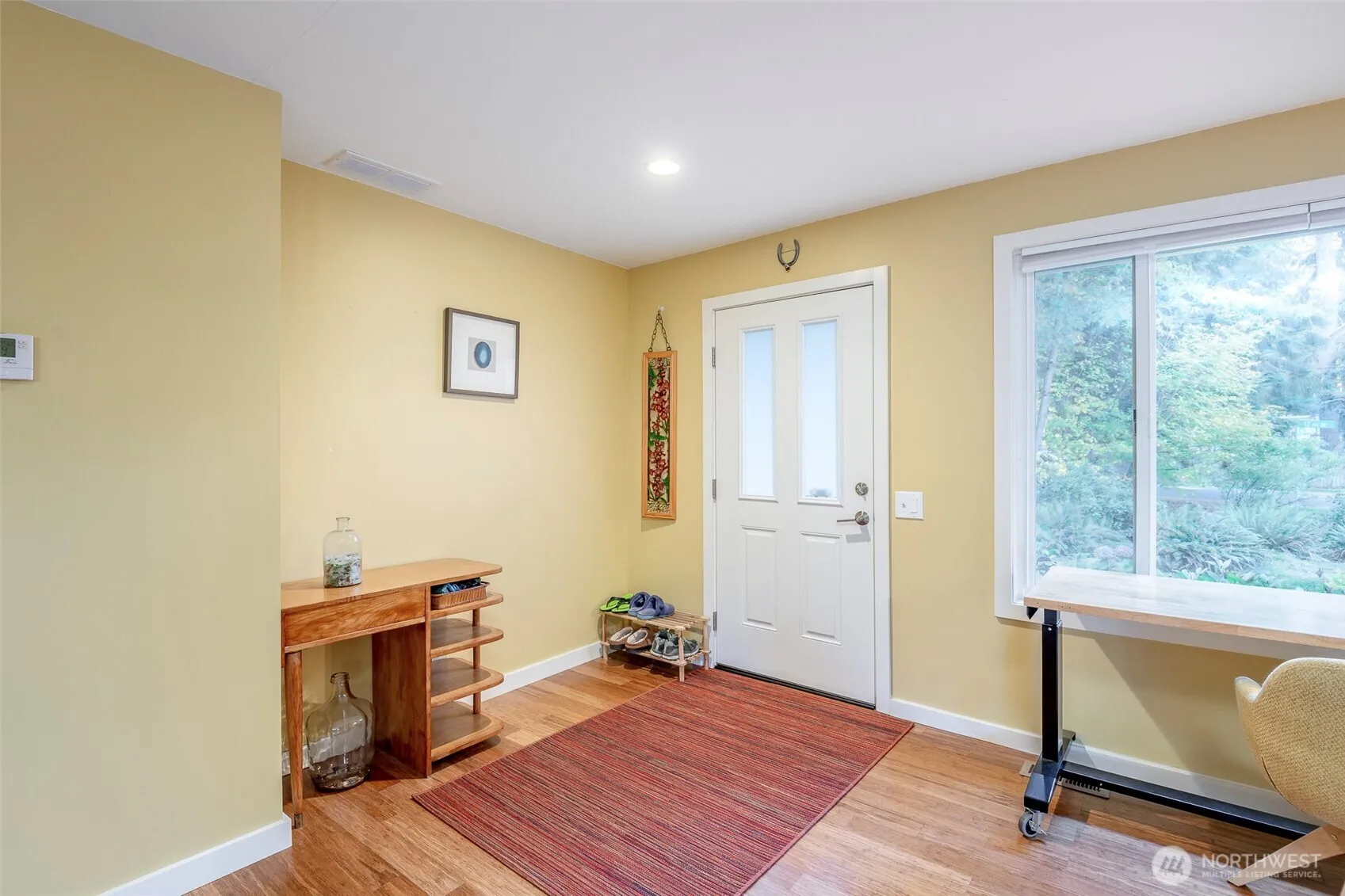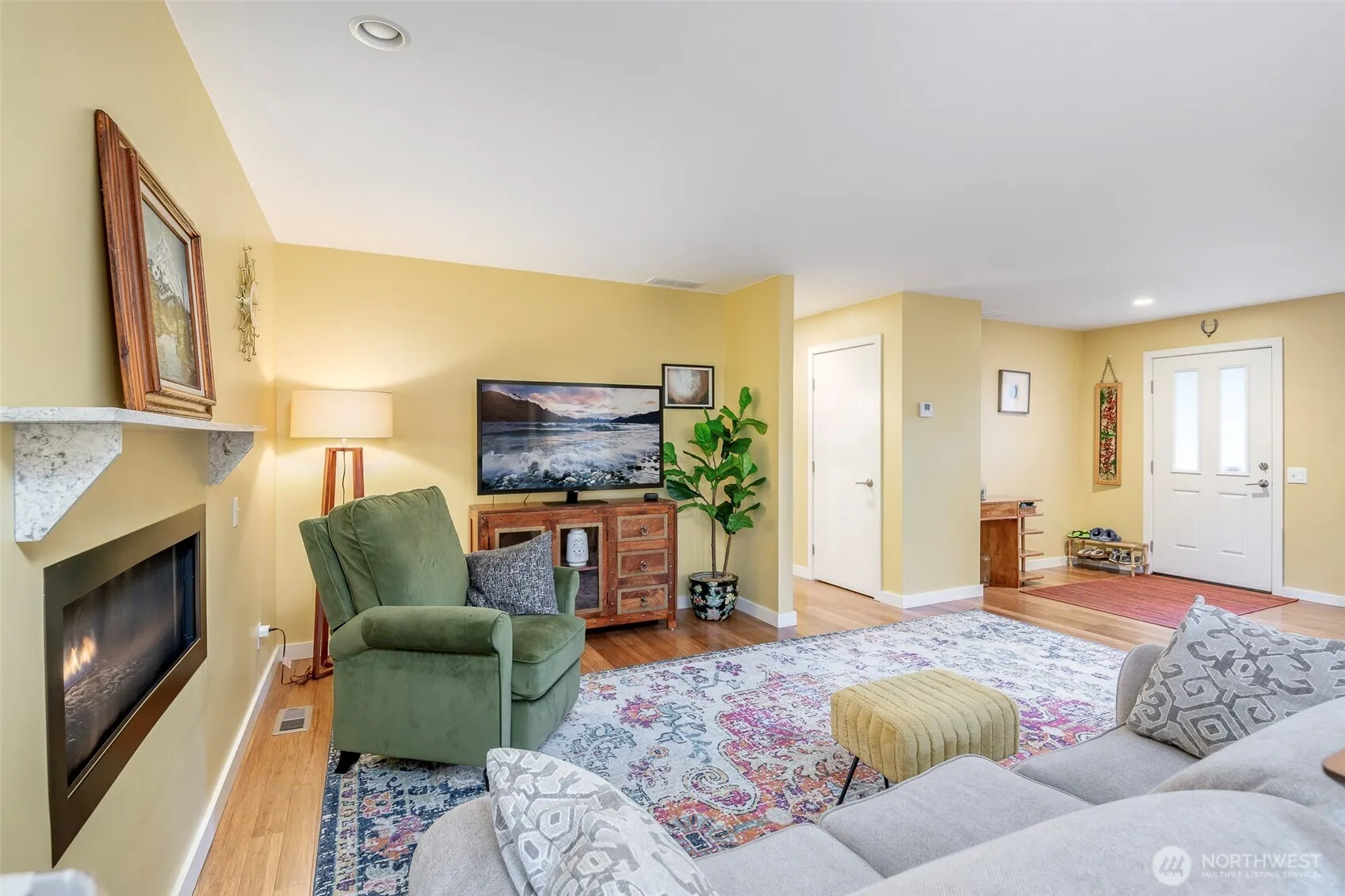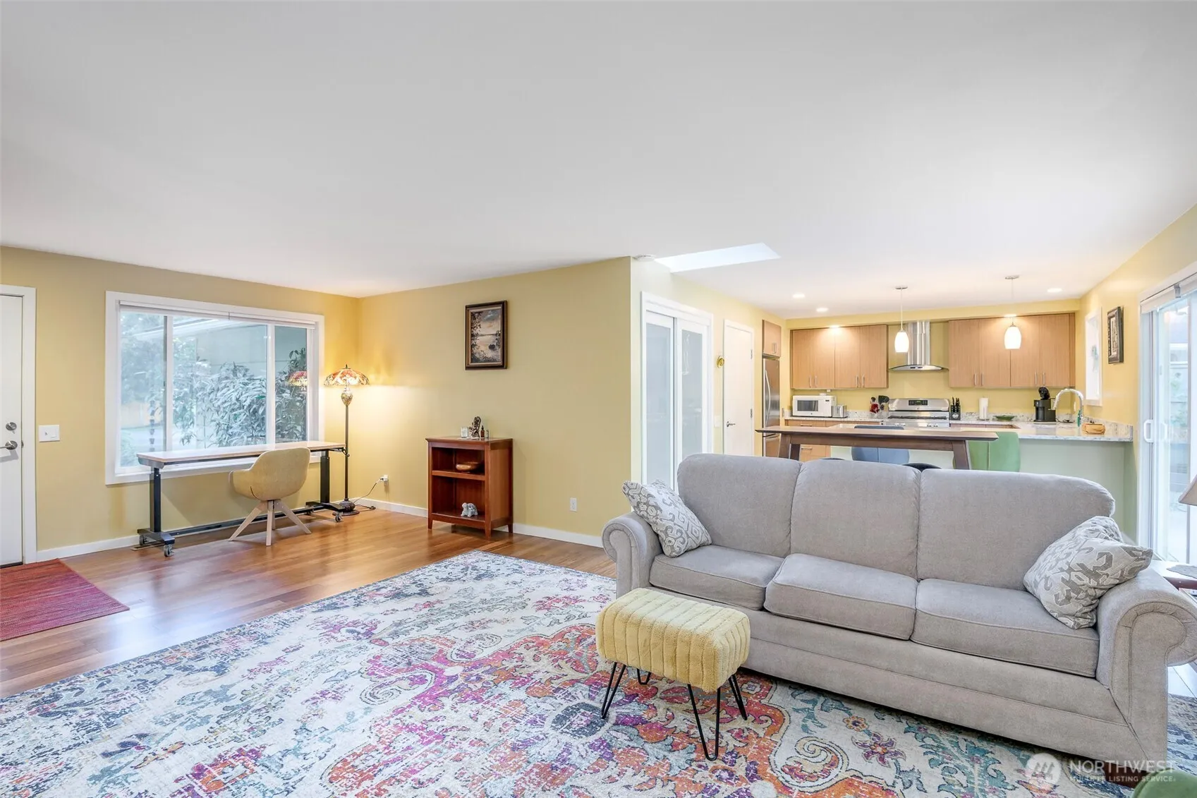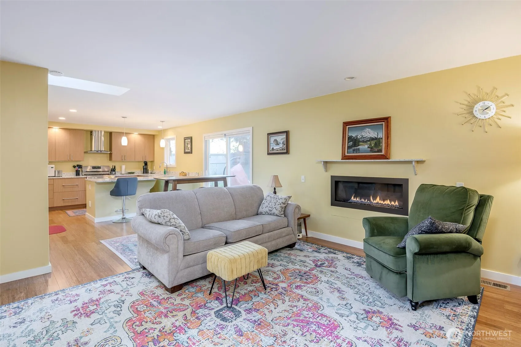 Set on nearly a half-acre, this home offers the perfect blend of comfort and function. The updated open layout features bamboo flooring, quartz countertops, and a gas fireplace for cozy evenings. The kitchen shines with under-cabinet lighting and a wired pantry, while the bathroom’s heated floors add luxury to your morning routine. Step outside to an expansive patio and yard—ideal for entertaining or relaxing—with a gas BBQ hookup, outdoor hot water access, and a sprinkler system. A garage with epoxy floors and a backyard shed with an electric door make yard work and storage effortless, completing this move-in ready retreat built for everyday living and easy enjoyment. This home is so conveniently located in Marine View Estates.