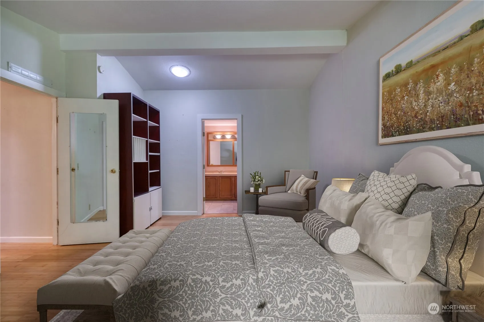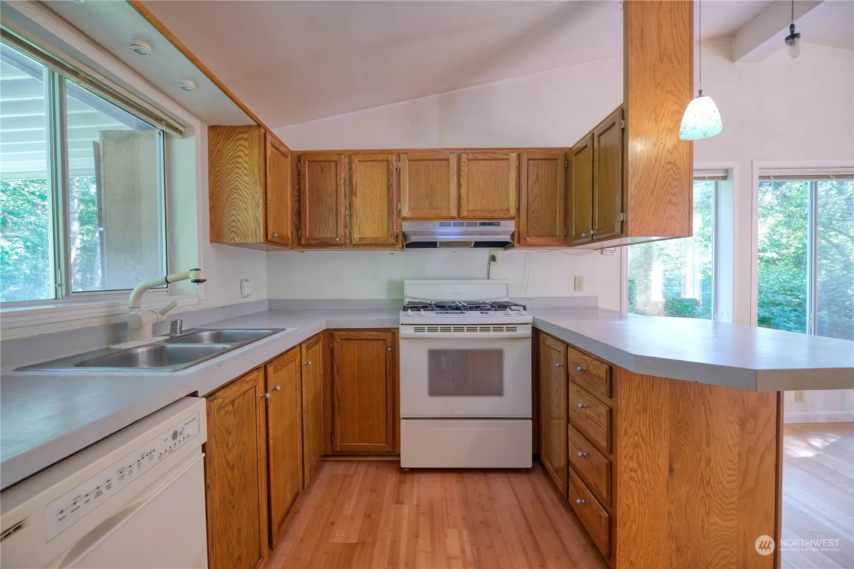 Discover the perfect blend of comfort and nature in this well maintained & financeable 1991 double-wide manufactured home. Nestled in a tranquil and sunny location at the end of a private road this home backs onto forested acreage and faces a grassy open space. This delightful home with bamboo floors throughout offers 2 spacious beds, 2 baths, a versatile den & a cozy fireplace in an inviting open floor plan that seamlessly connects the living spaces. The 9000 sq. ft. lot is a gardener’s delight. The covered back deck affords a relaxing view over the expansive yard with fruit trees, blueberries & established shrubs. There’s a shed for storage & an additional bunkie/office with power and water *Some rooms are virtually staged 55+ Community