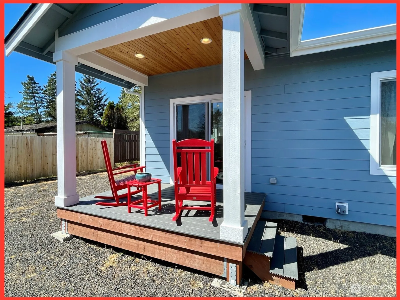 Like-New Home Near Beach Access via Pacific Blvd approach! short distance to town center, several parks, 18-hole golf course, and miles of lakes and canals. Situated on a 7,000 sf parcel complete with low maintenance landscaping, RV parking and front porch and back composite decks. Enter this 1,262 sf open floor plan residence featuring vaulted ceilings and a fireplace wall. Kitchen complete with granite slab counters, subway tile backsplash, stainless appliances & door to back deck. 9 ft ceilings. Primary en-suite with a walk-in closet and 3/4 bath. Second BR and full bath off hallway. Exterior H/C spigot.
