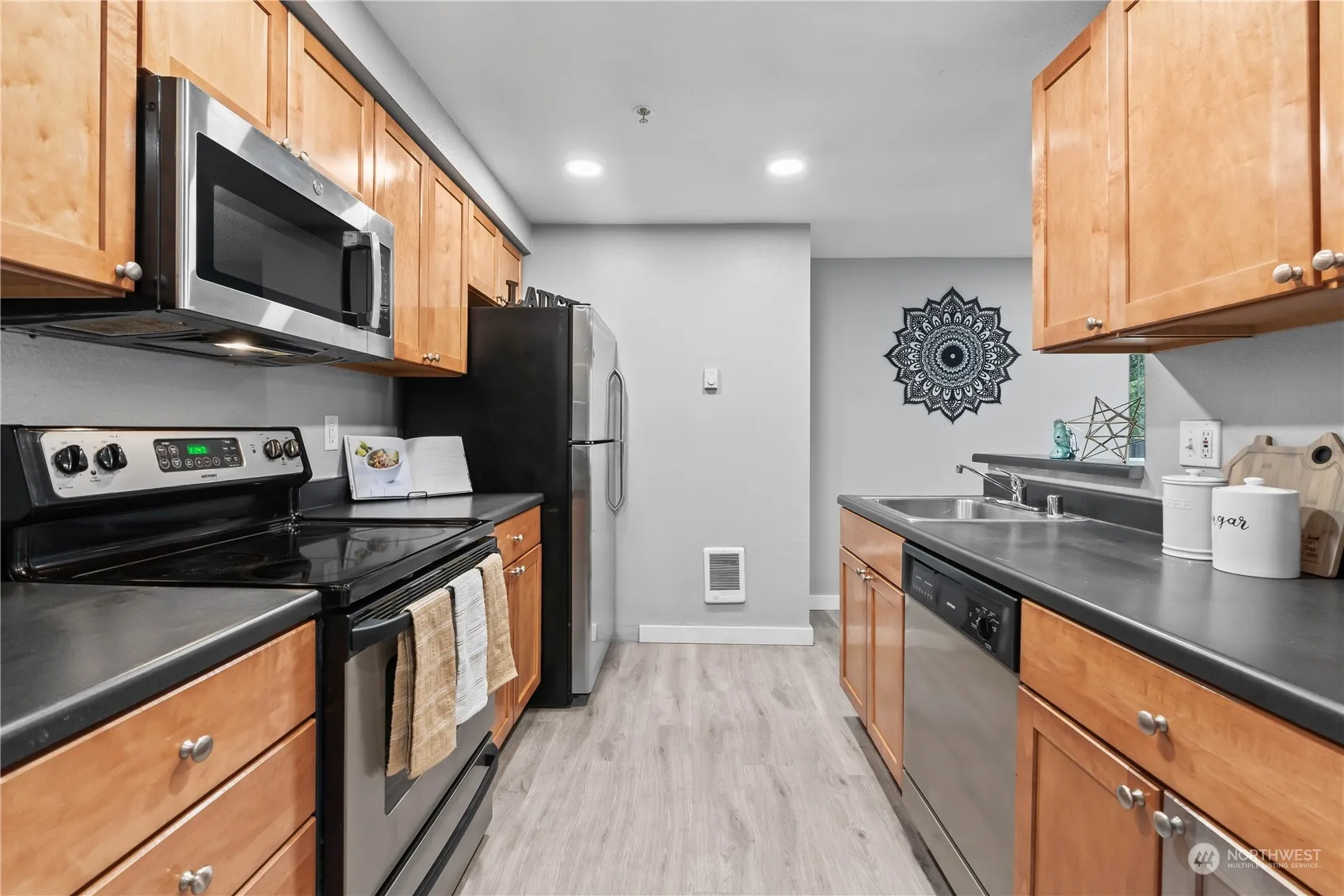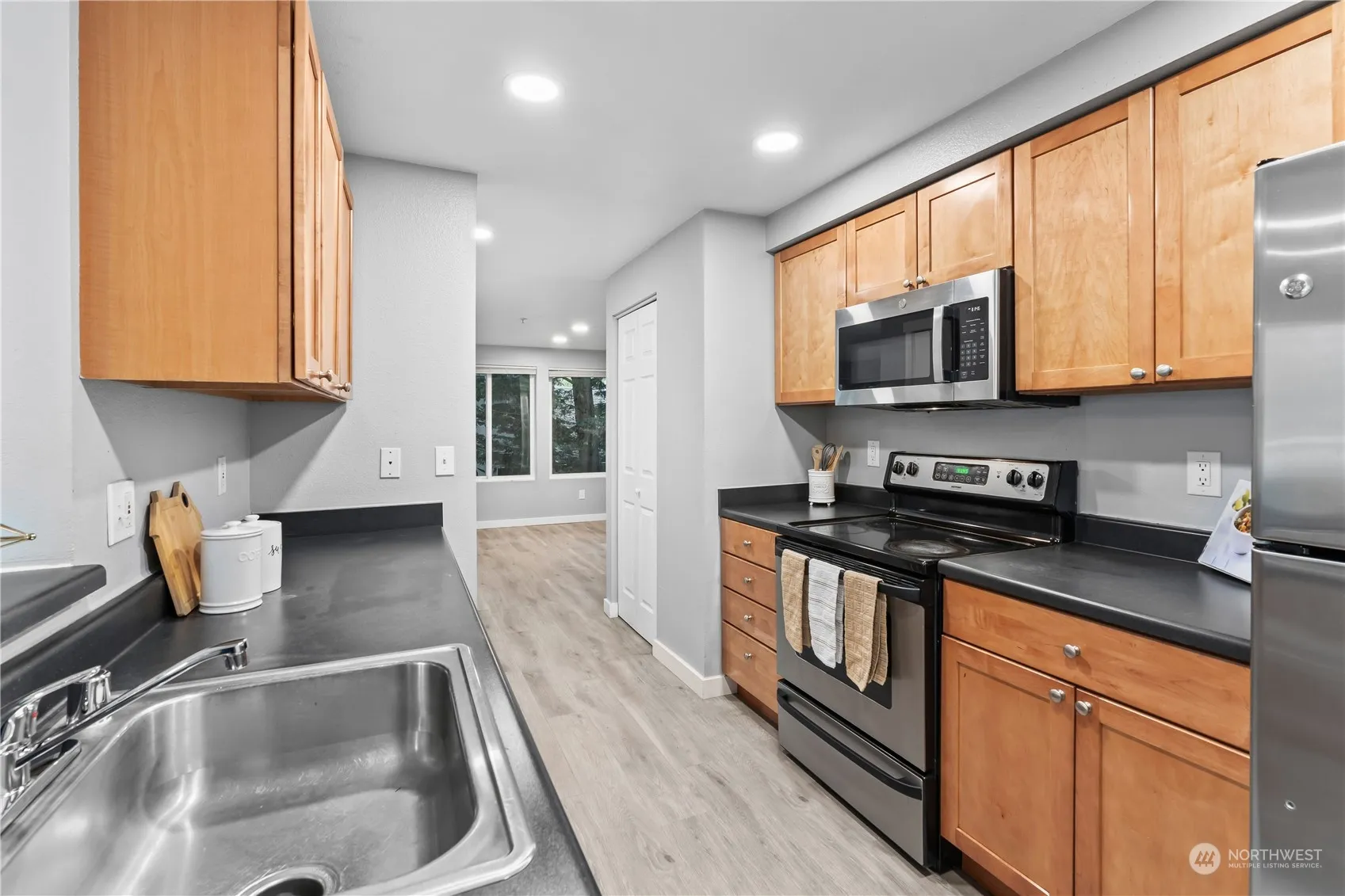 Spacious end unit has all new windows allowing abundant natural light & cozy ambiance throughout. Kitchen features SS appliances w/separate dining area. Relax in open living room by the wood-burning fireplace or step out onto your private patio, complete w/storage closet. Retreat to your primary bedroom offering a spacious closet, full ensuite w/fully tiled walk-in shower. Full sized laundry conveniently located in-unit & New Luxury Vinyl Plank Flooring. Complex amenities are sure to impress, featuring a refreshing outdoor pool, children’s wading pool, clubhouse & playground. 2 reserved parking spaces, detached garage & designated covered parking spot for your convenience. No rental cap & mins to commuting routes, shopping & dining options.