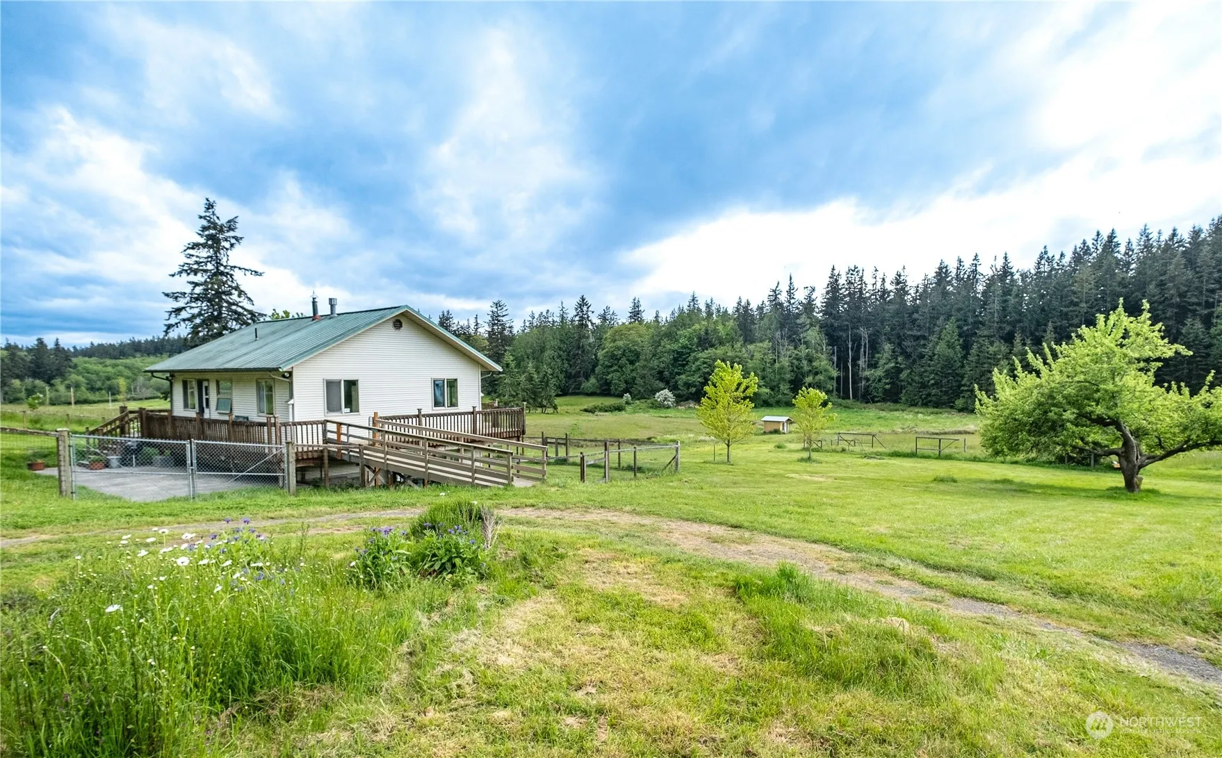 One of the most private and serene properties available on Whidbey Island. 10+ cleared acres. Located in desirable Double Bluff/Freeland area with private road. SW facing property enjoys sun all day, strong solar candidate. Fruit tree orchard, barn (partially renovated), fenced garden, all highlight the acreage. Perfect for hobby farm. 2-story, 3-bed home with living spaces on each floor. Home includes newer Marmoleum flooring, radiant heating downstairs, and wood stove. Metal roof with wrap around deck. Fenced perimeter/dog yards. Rain collection system on side of the house irrigates the orchard. Near beaches, trails, shopping centers, and Clinton Ferry. Experience all Whidbey seasons in your own private paradise. Former strawberry farm!