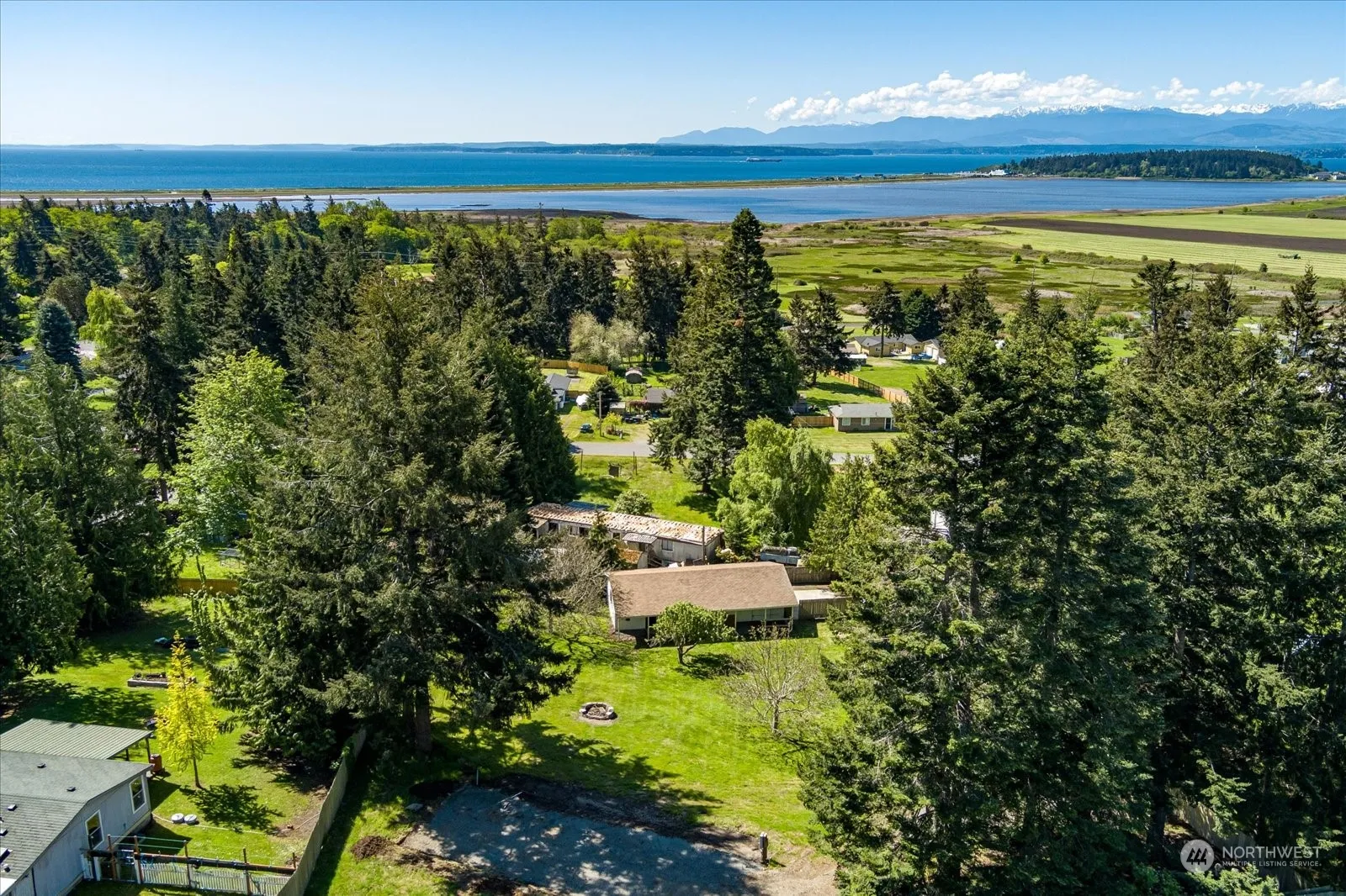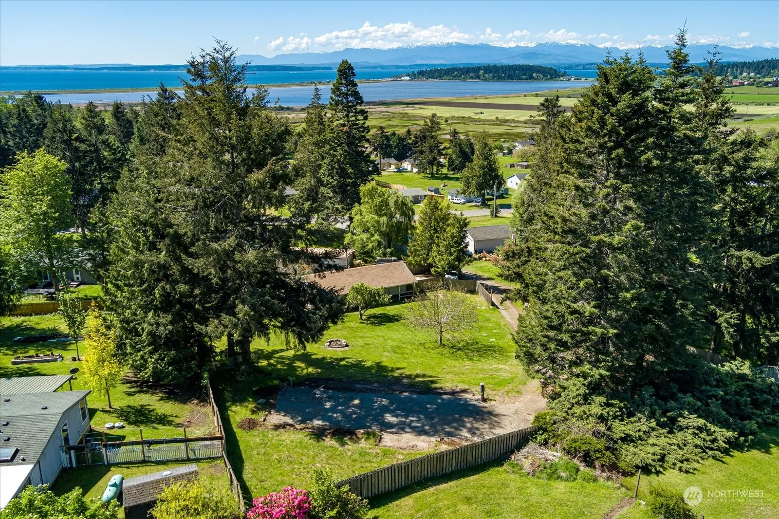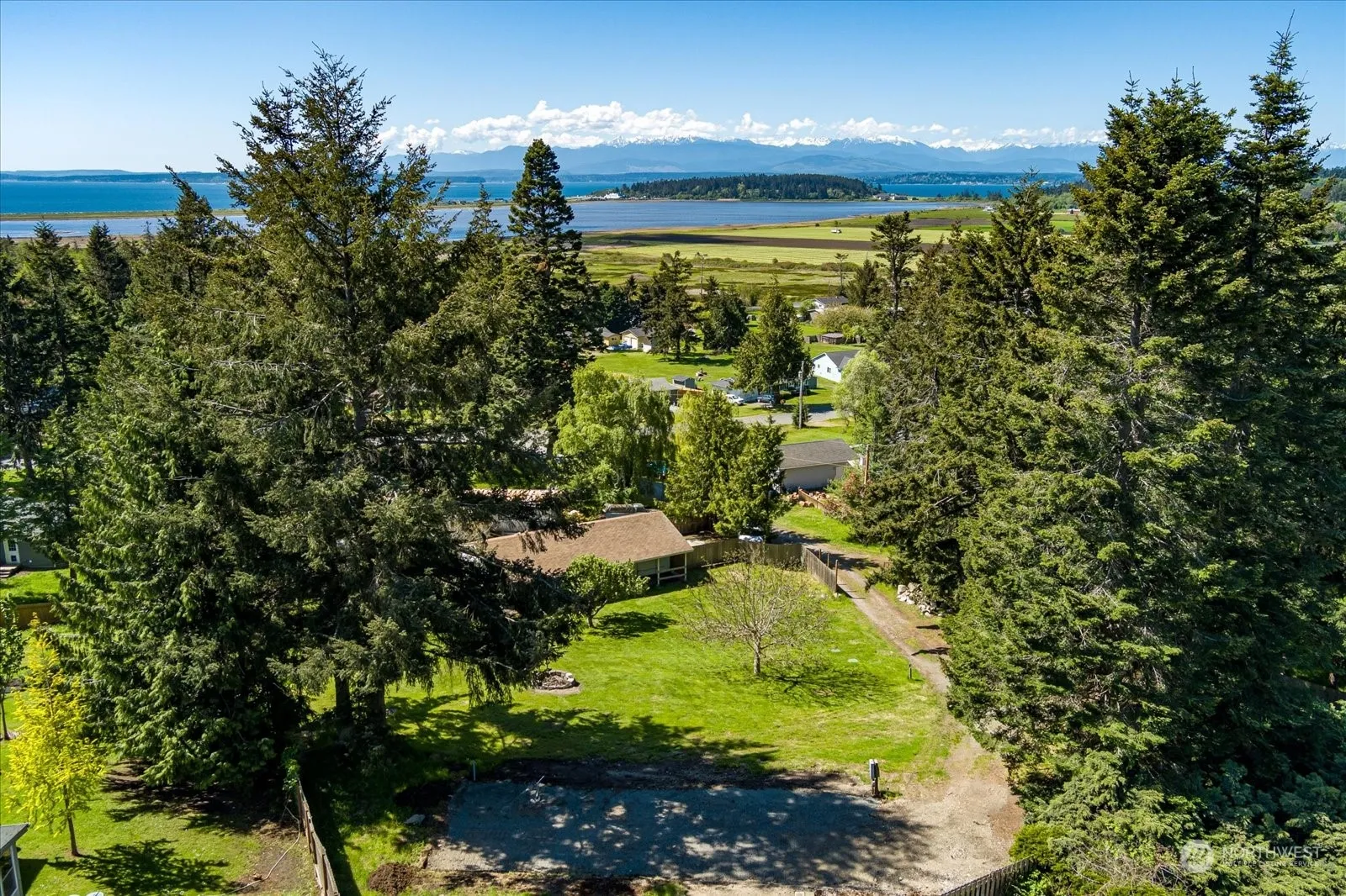 Sunny, 0.63 acre view lot in Crockett Lake is calling you. Lush green hillside slopes down in the direction of the view making an excellent spot for a house with daylight basement. Imagine sitting on an oversized deck facing the Olympics in the afternoon as the sun sets. Site already equipped with power, water from Crockett Lake Community, 2 bedroom septic, and expansive shop. Shop has a separate work or office space at the back and room for vehicles or whatever your hobby is. Eves extended to allow for outdoor storage space as well. Park all your tools in a safe space while building your dream home or weekend getaway. Could almost walk to the ferry, Fort Casey, and the beach. Potential building plan w/estimate avail.