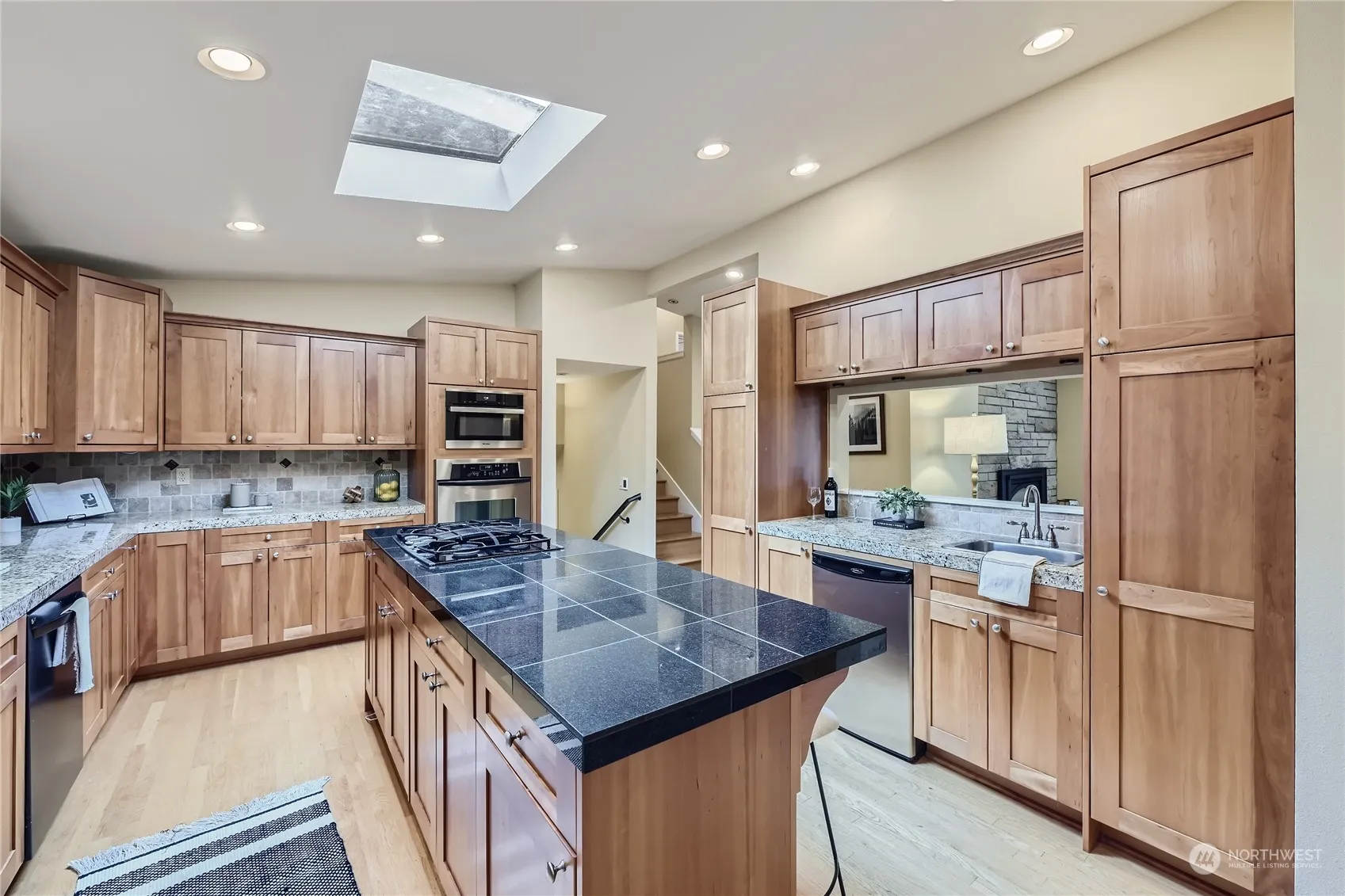 Beautifully maintained and pristine residence situated at the end of a cul-de-sac, boasting four bedrooms upstairs, including a primary suite with an en-suite bathroom. The main level presents a generous living area flowing seamlessly into a luminous and open kitchen with adjoining dining space. Descend to the lower level to discover a family or media room, ideal for additional recreation, featuring heated floors and integrated surround sound. Step outside to a meticulously landscaped backyard, offering a sizable deck or lower patio option, complete with an outdoor gas fireplace and provisions for a hot tub. This residence showcases meticulous attention to detail, with various upgrades and modernizations throughout.
