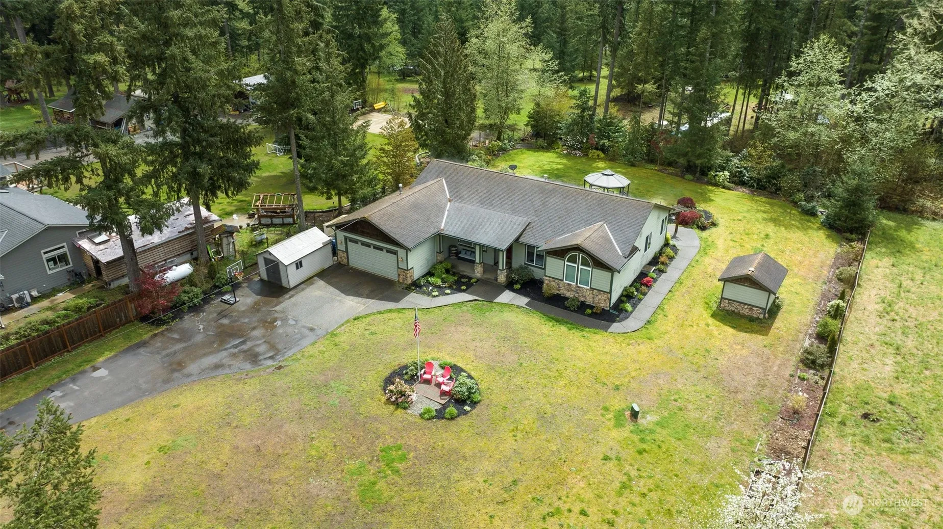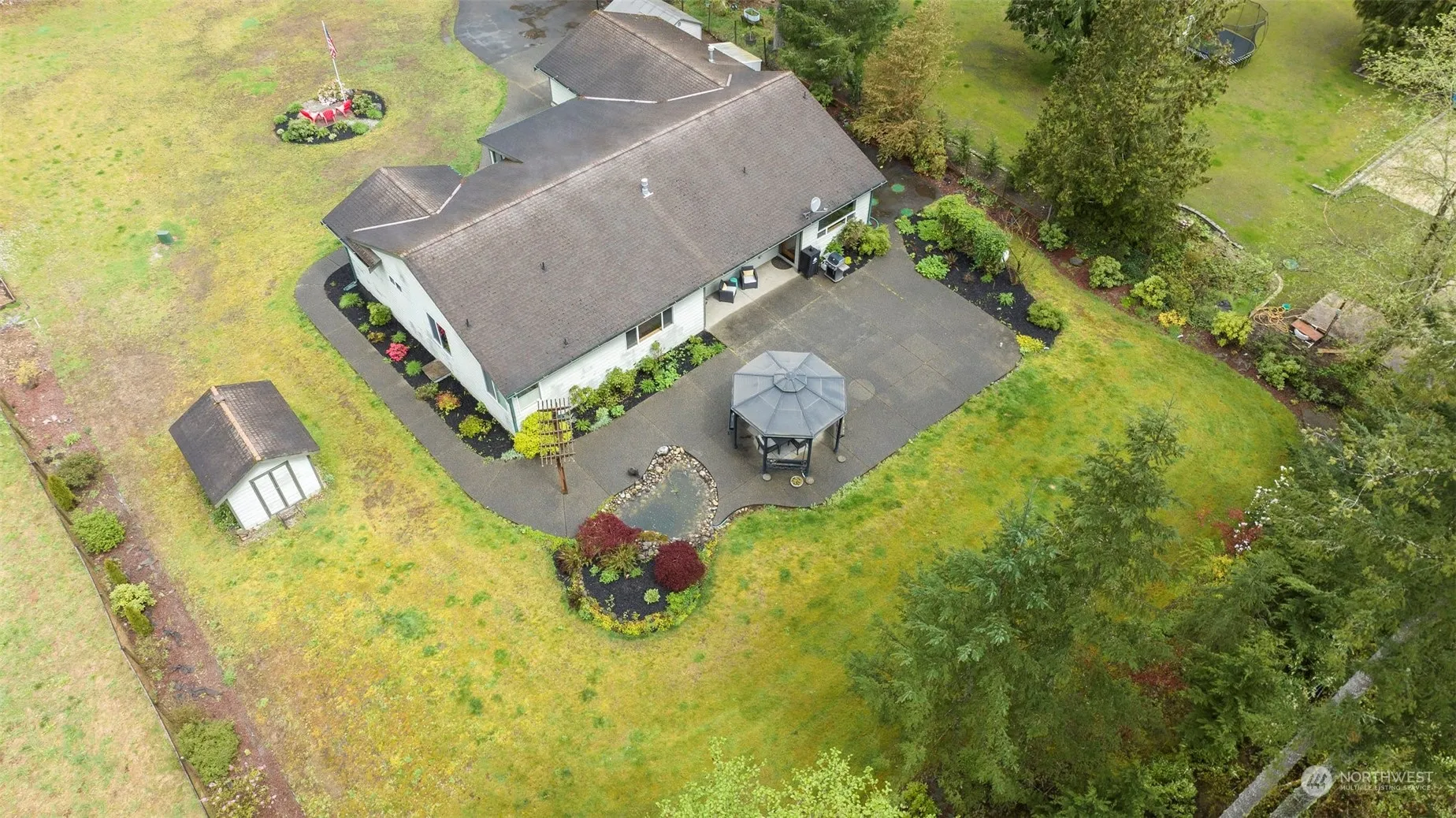 Your custom rambler retreat awaits! Situated on a shy acre, this 3 bed, 2.5 bath + bonus room home has it all! Stunning arched windows are the focal point of the large open concept living space, w/built ins & fireplace, dining nook, and spacious kitchen with an oversize island, & plenty of cabinet space. Formal living room with charming pocket doors. New LVP flooring throughout! Primary bedroom offers a huge walk in closet & 5 piece en-suite, with private access to your huge back patio complete with fish pond, gazebo, and tons of room to entertain. Recently upgraded w/ new furnace & A/C, new fencing & gate, and over $18k into well refurbishment & upgrades, it’s ready for it’s new owner! Award winning Tahoma schools!