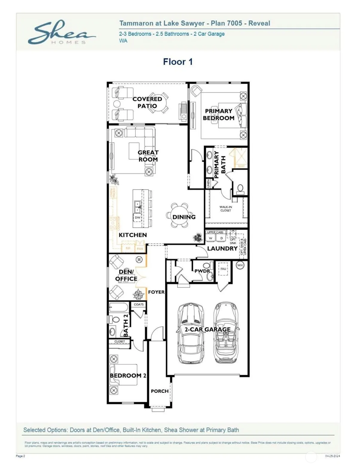 Welcome to Tammaron at Lake Sawyer! This gated 55+ community is sure to impress in beautiful Black Diamond. The Reveal plan is designed with you in mind: open-concept, single-story rambler living with $74K+ in upgrades! In the kitchen, discover the always-appreciated “soft-close” drawers, luxurious Quartz countertops, and classic subway-tile backsplash. Your spacious primary suite is the perfect place to relax at the end of the day, while your guests have their own ensuite bath for privacy. Outside, make the most of your living space under the covered patio, and enjoy the future community pavilion with picnic tables in a park-like setting. If you are working w/a Licensed Broker they must accompany you on the first visit per site reg policy.