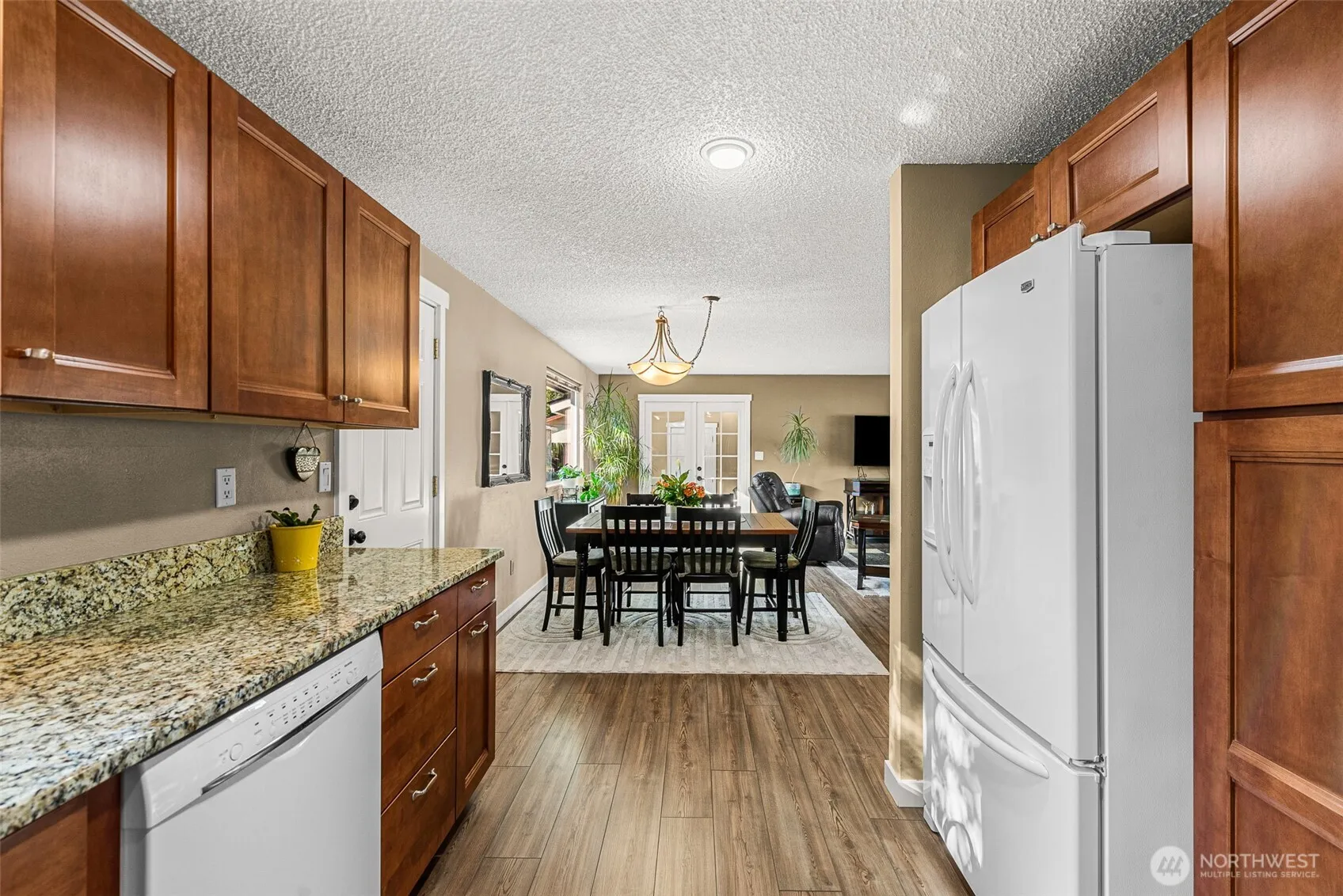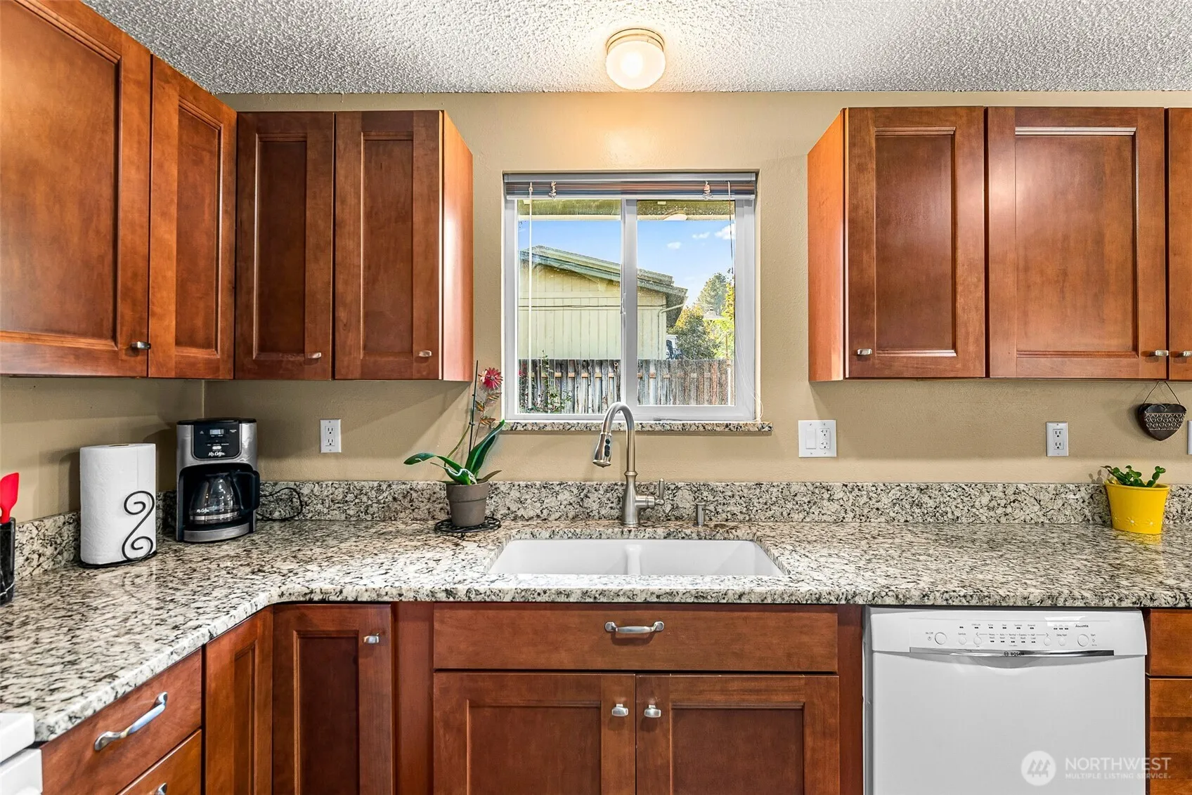 Well-maintained rambler on a spacious corner lot! This updated single-level home features a newer roof, windows, flooring, and interior/exterior paint. Remodeled kitchen with granite countertops and modern finishes. One garage stall has been converted into an office and/or TV room with French doors for privacy. Large, fenced backyard, electrical box for hot tub hook-up, sprinkler system for entire yard and tool shed too. RV parking behind gated fencing. Centrally located and move-in ready with smart updates throughout!