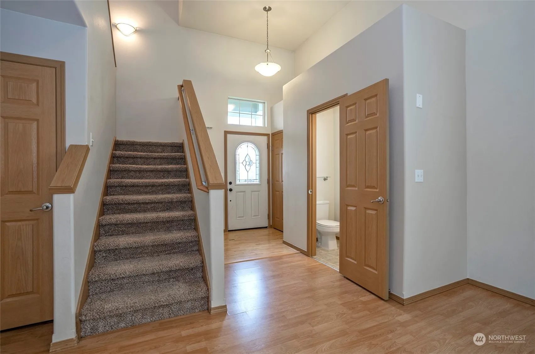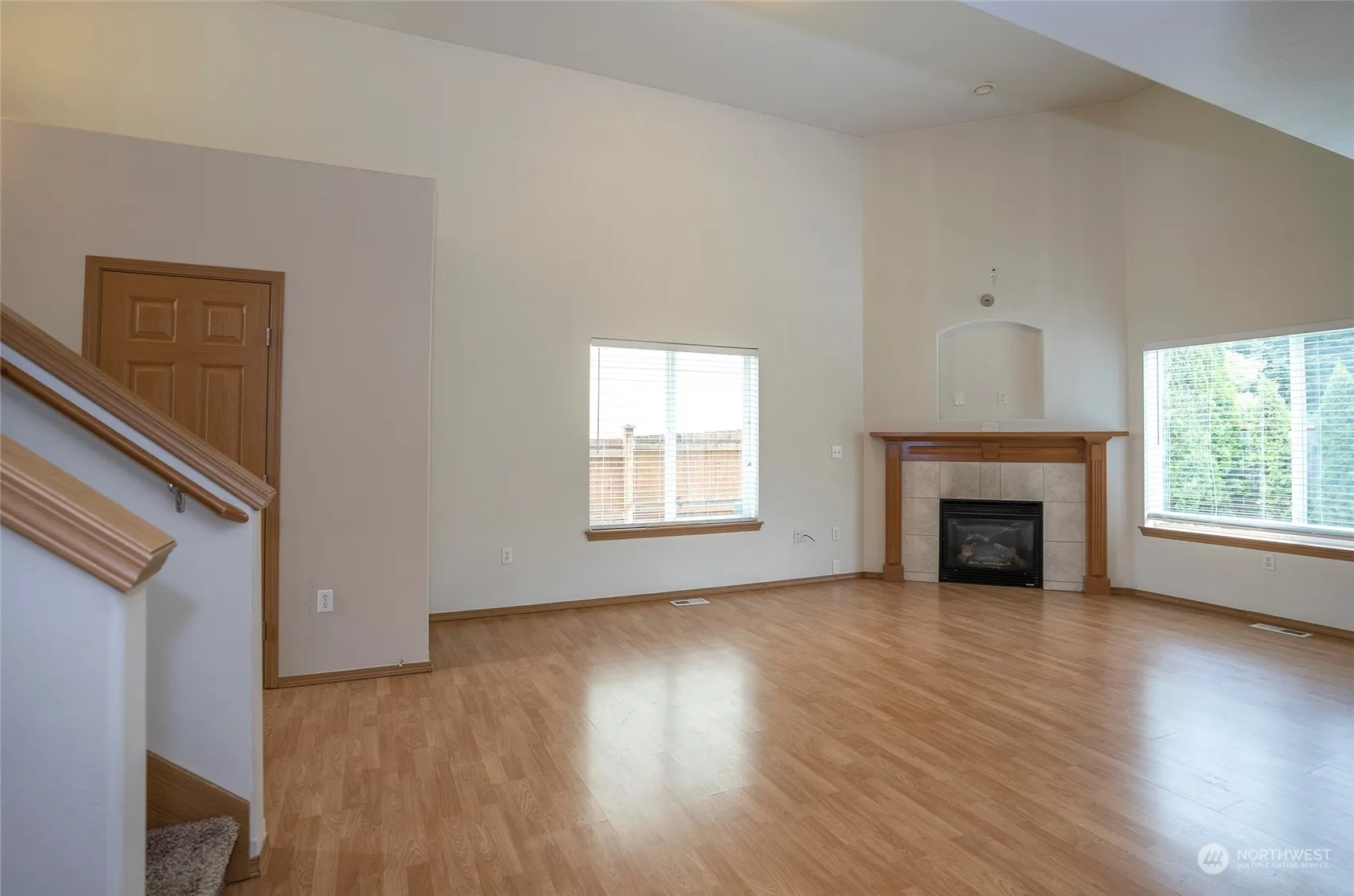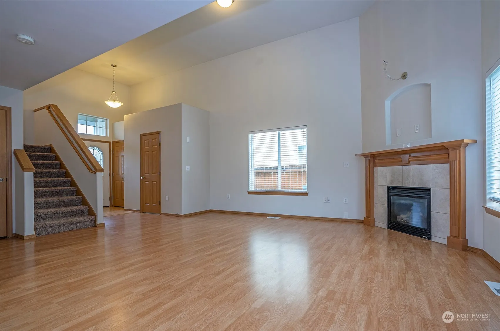 This home features a modern open floor plan, ideal for seamless entertaining. The spacious kitchen includes an extended eating bar, perfect for quick meals and ample space for culinary creativity. Soaring two-story ceilings add a touch of elegance and a sense of space. The upstairs master bedroom boasts vaulted ceilings and a private five-piece bath, providing a luxurious retreat. Two additional guest suites and a guest bath grace the upper level. The private, level backyard is fully fenced and includes a patio, perfect for summer barbecues. Neighborhood parks, sidewalks, and local shopping enhance the community feel.