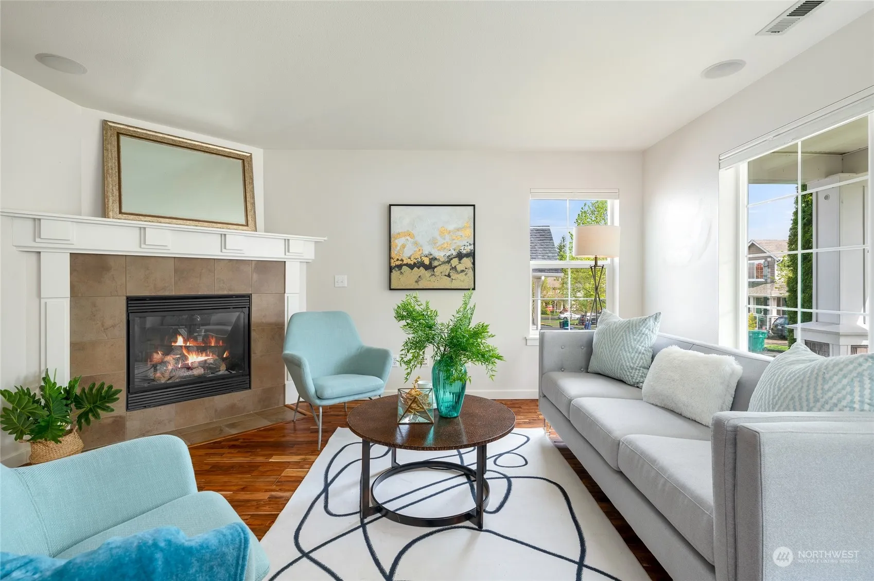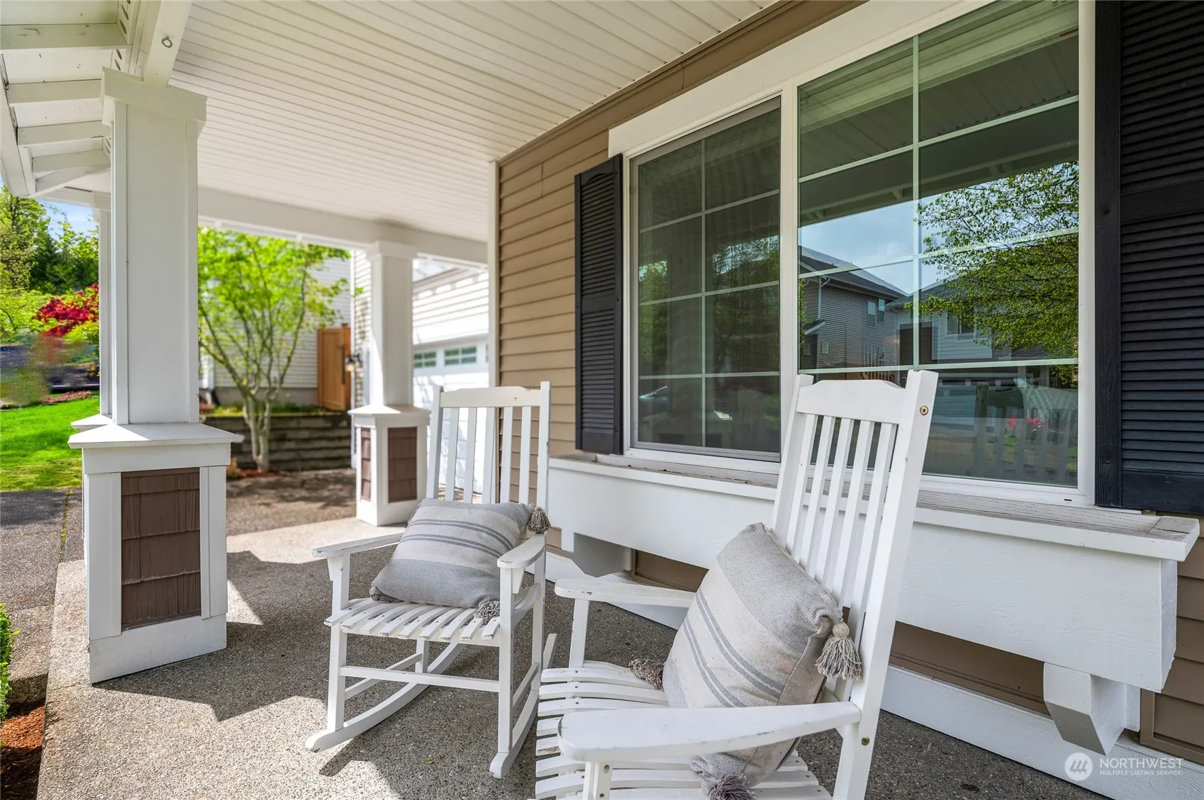 This Snoqualmie Ridge home is delightful! The covered front porch exudes warmth and sets the tone for a welcoming atmosphere. Beautiful hardwood floors create a seamless flow throughout the open-concept main floor. The updated kitchen with quartz countertops and stainless steel appliances adds a touch of modern elegance and functionality—a newer composite deck overlooking the spacious, flat, fenced backyard for outdoor gatherings and relaxation. Upstairs, the master suite offers a peaceful retreat with a walk-in closet and a 5-piece bath, Additionally, the 3 bedrooms and loft area offer versatility and ample space for various needs. Newer 90% Energy efficient furnace, A/C, built-in sound system, and more. It is an ideal place to call home!