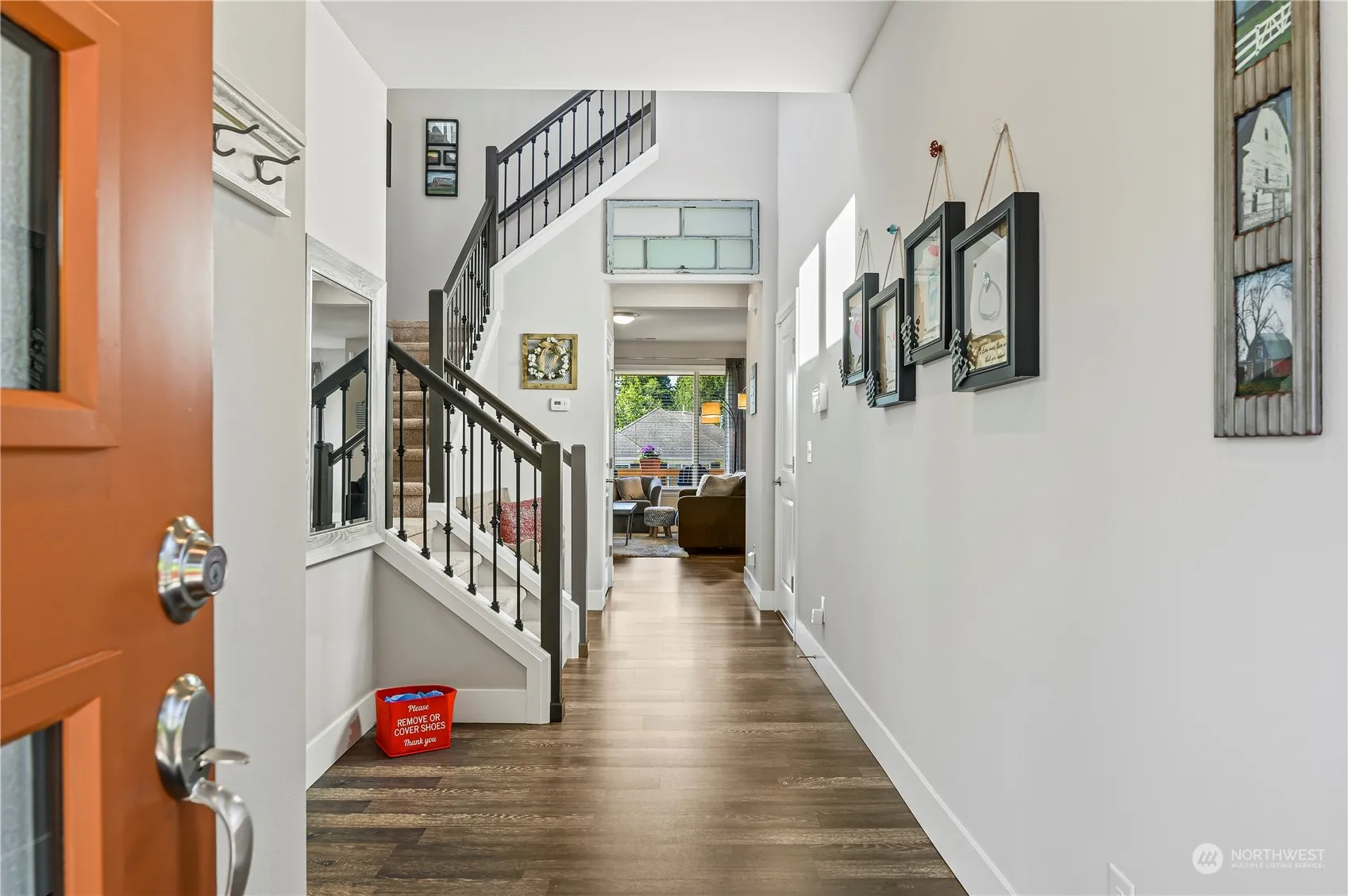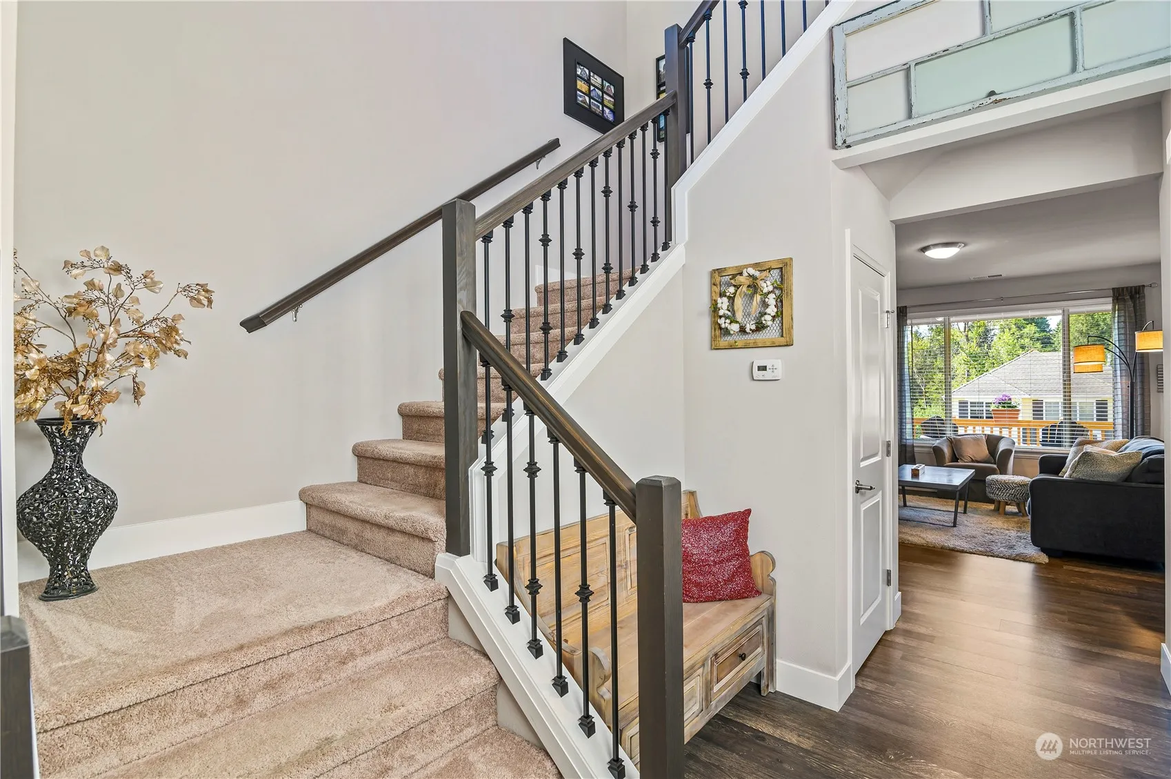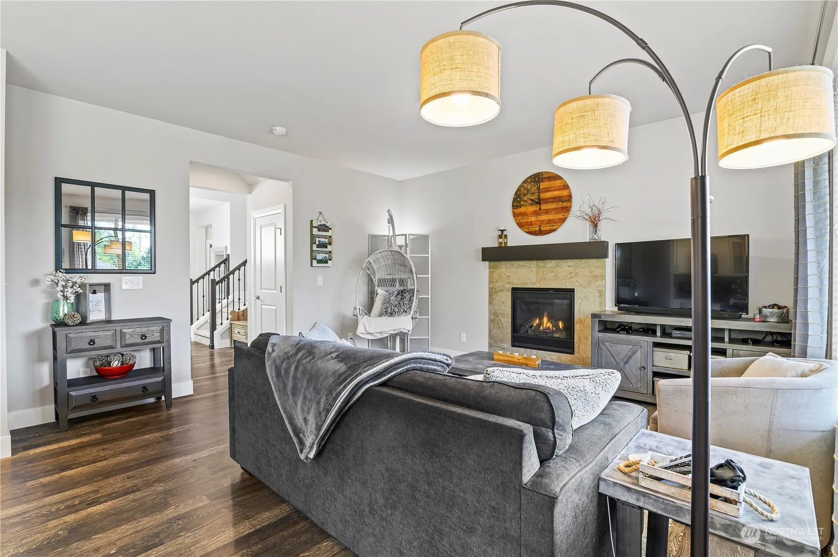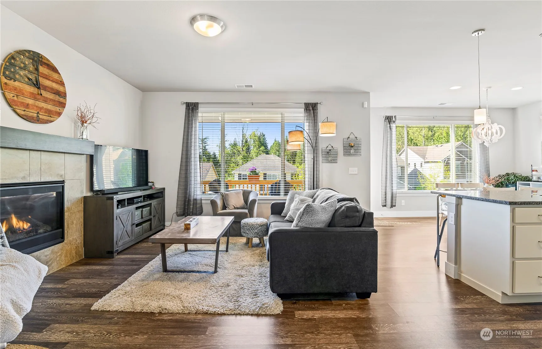 This barely lived-in 3-bed, 2.5 bath home is full of exquisite upgrades. Light pours through the open staircase, 2-story entry, the open concept great room, flanked by a cozy gas fireplace. The kitchen boasts a tile backsplash, granite counters, light cabinets w/upper glass doors, a gas range & walk in pantry! The upper primary suite is sizable & has a 5-piece attached bath plus a walk-in closet. There are 2 guest rooms, another full bath & laundry room upstairs too. Enjoy leisure time on the back deck of this elevated home, on the hammock just below or the adjacent nature trails. Also included are a fully fenced back yard & 2-car garage. All nestled in a serene neighborhood with & the convenient proximity to Snohomish Station shopping.