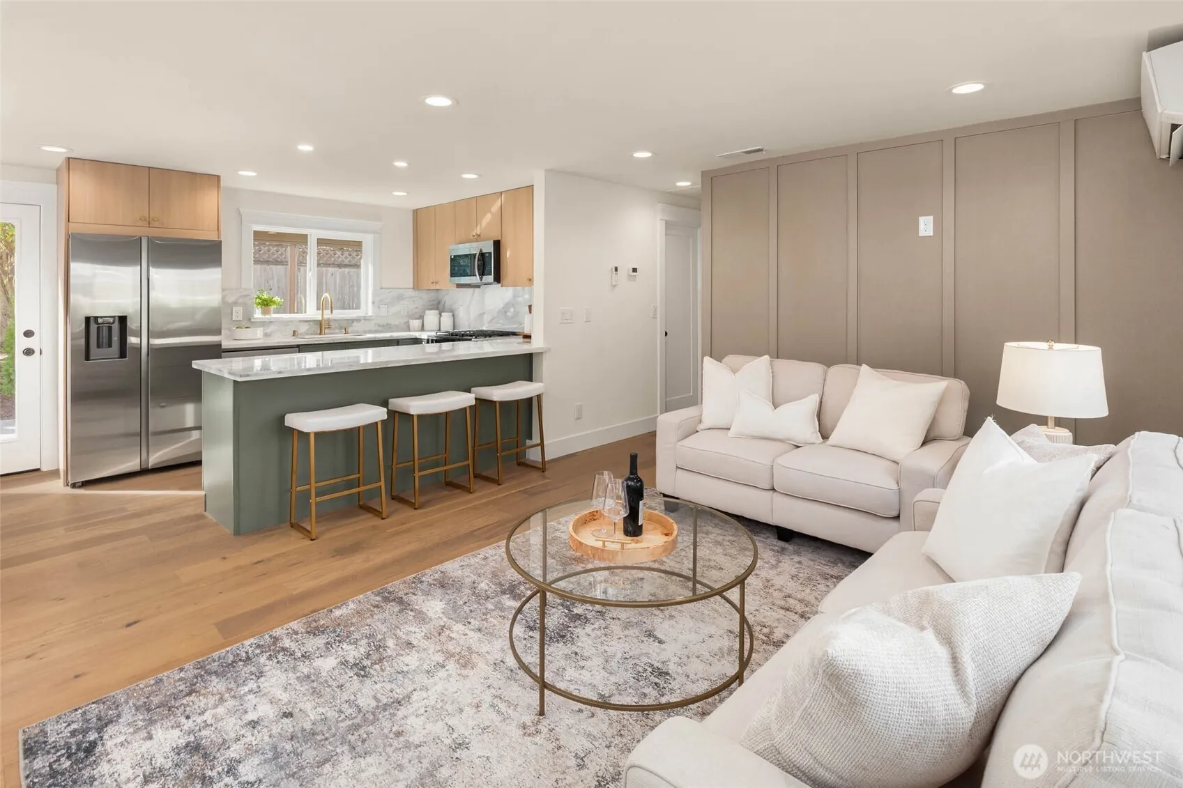 Charming new construction like – fully renovated rambler. This 3 bed/2 bath is perfect blend of comfort, functionality and modern finishes. Enjoy open kitchen w/ natural stone countertops & backsplash, SS appliances & sparkling new cabinetry. Primary ensuite boasts oversize frameless luxury shower w/ walk in closet. Year-round heating and cooling with central A/C. Natural Oak hardwoods throughout, vaulted ceilings, freshly painted inside and out w/ everything brand new – every detail thoughtfully designed. Step outside to private patio on large level lot, professionally landscaped with ample RV parking space & possible DADU (buyer to verify) or Adult Family Home. Prime location! Move-In Ready! This won’t last long!