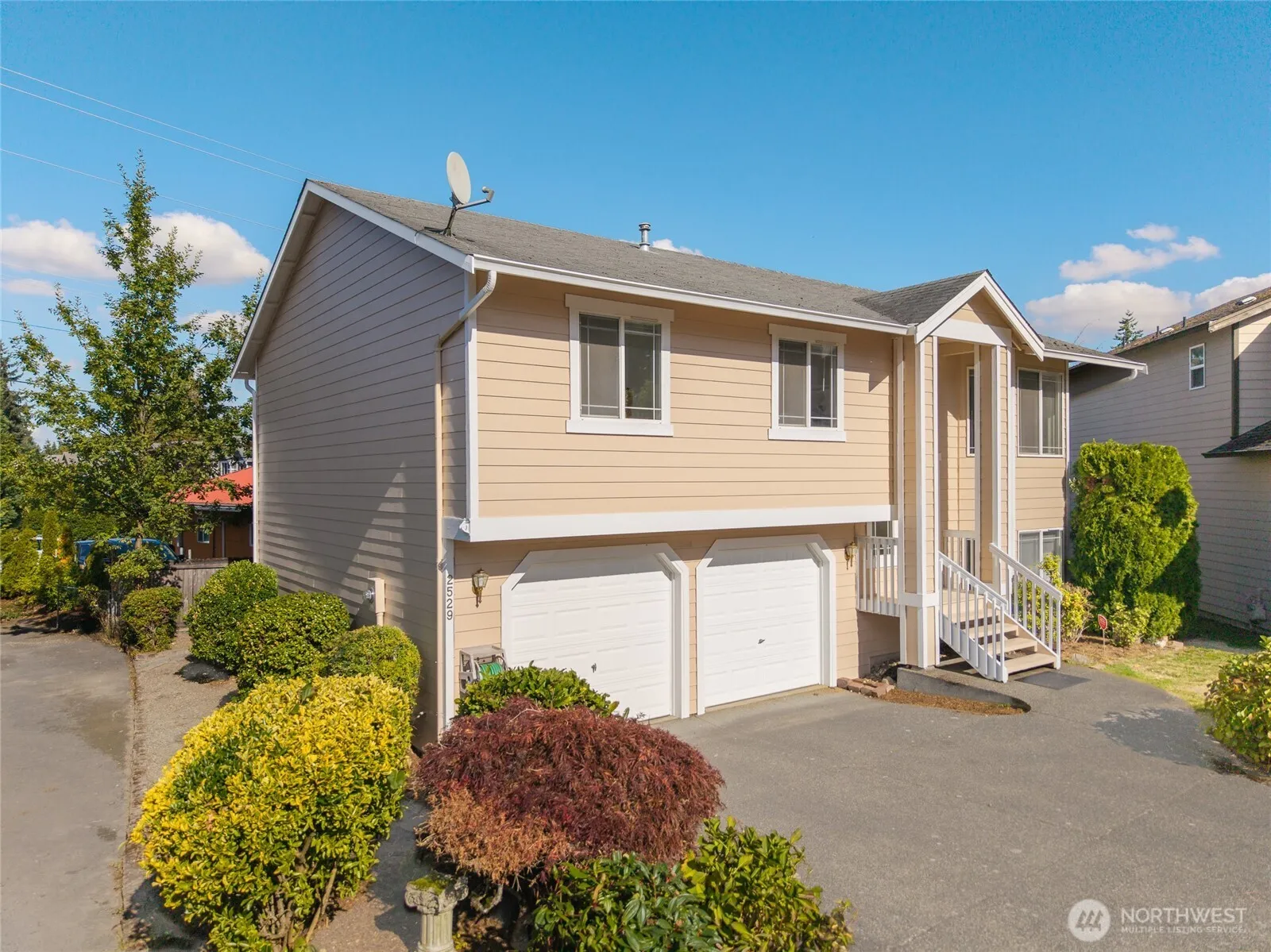 Beautifully updated Mill Creek home tucked in a quiet cul-de-sac! This light-filled 4-bed, 3-bath home features vaulted ceilings, a cozy gas fireplace, and a bright open kitchen with a breakfast bar. Enjoy new interior and exterior paint, new carpet, and modern new light fixtures throughout. The spacious Trex deck is perfect for relaxing or entertaining, while the lower level offers a private bedroom and ¾ bath ideal for guests or a home office. Conveniently located near Mill Creek Town Center, parks, and major highways. This move-in-ready gem perfectly blends comfort, style, and convenience!