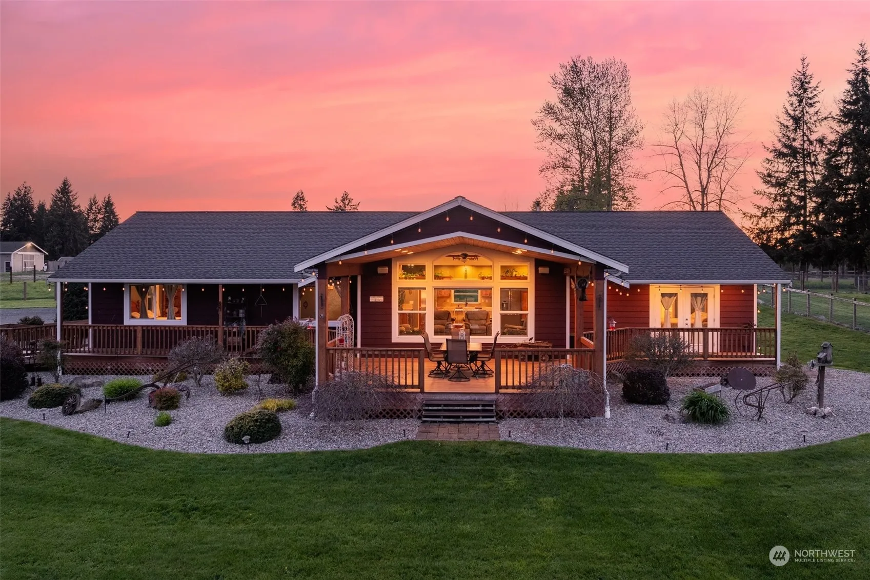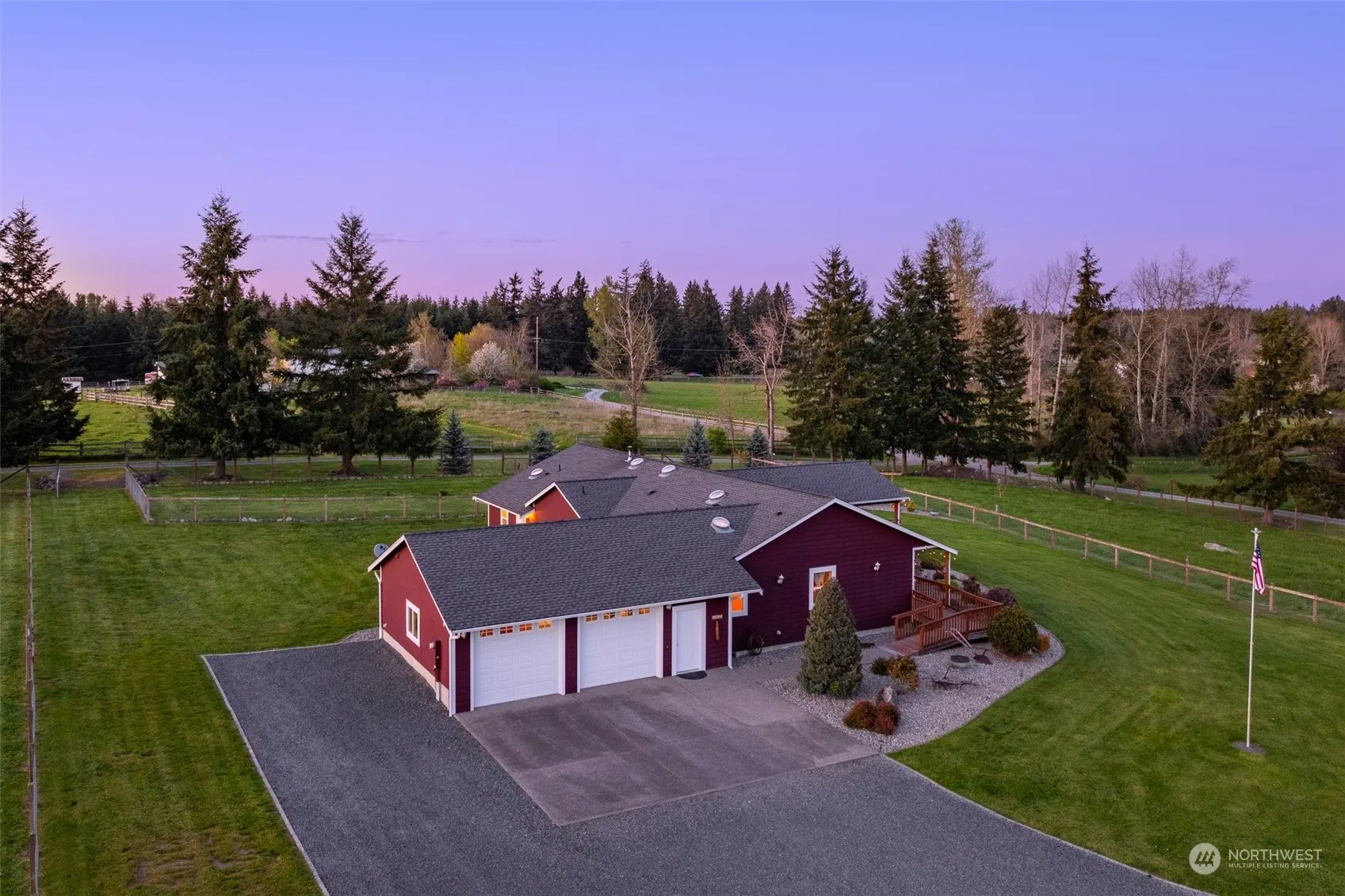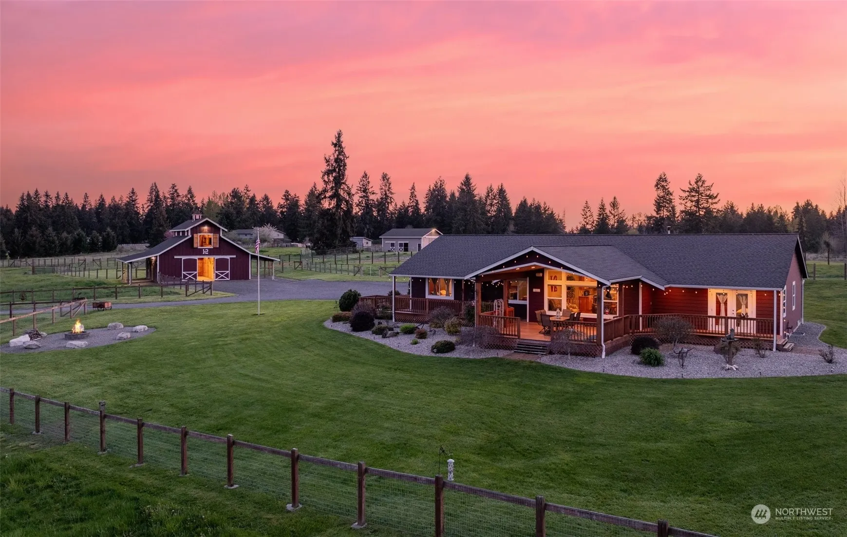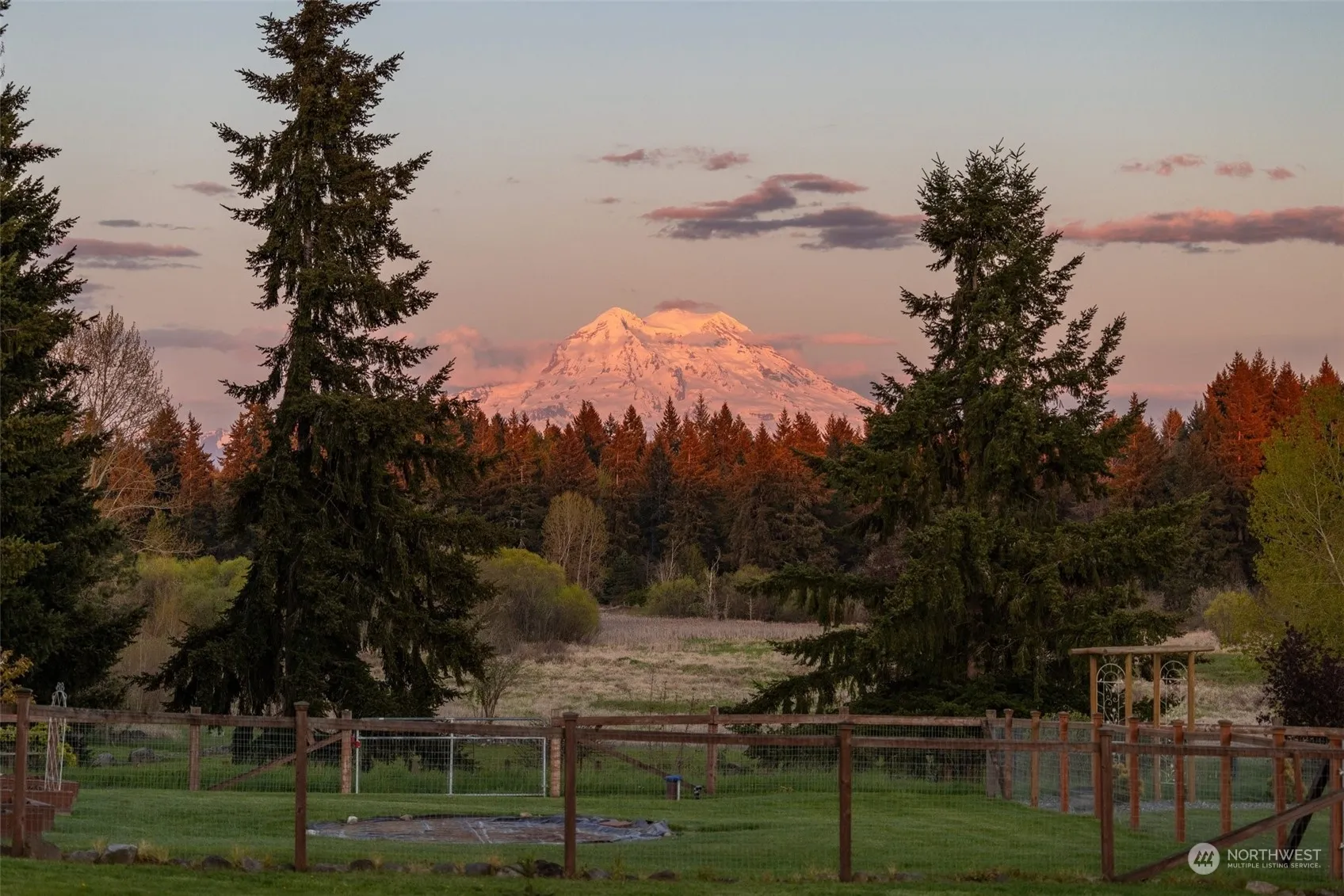Buyer got cold feet, back on market!Indulge in the epitome of country living within this meticulously crafted 2012 home set on 5.13 acres of picturesque landscape. Boasting 3 bedrooms plus a den, this home offers 2 primary suites—one thoughtfully designed for wheelchair accessibility. This residence offers both comfort and convenience. Marvel at the stunning vistas of Mt. Rainier from nearly every angle of this home and property. A covered patio, perfectly situated to take in the breathtaking views, invites relaxation and outdoor enjoyment. The property’s manicured grounds feature fenced pastures adorned with timothy hay, while a finely crafted barn beckons with 2 spacious stalls, a well-appointed tack room, and storage for all your needs.