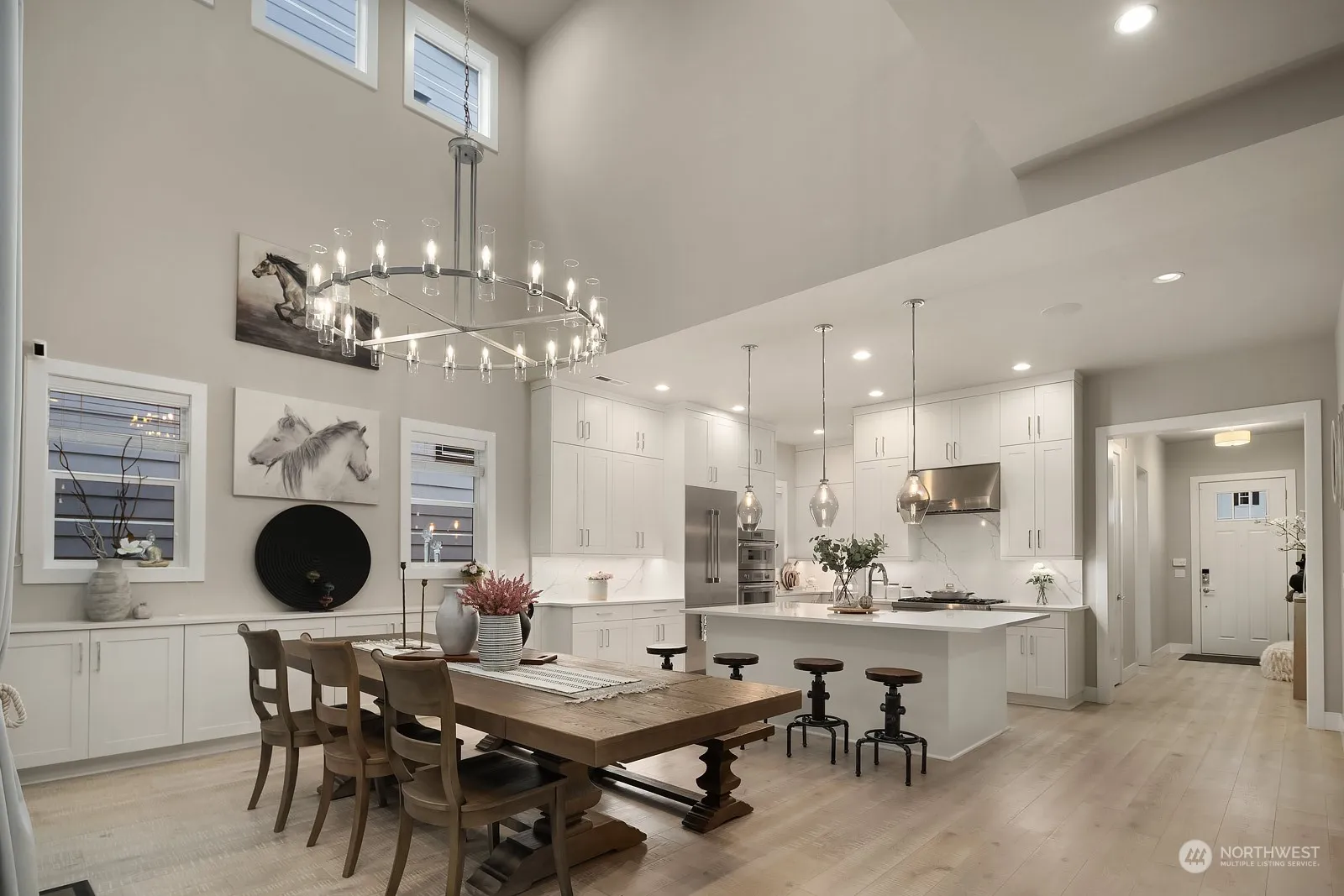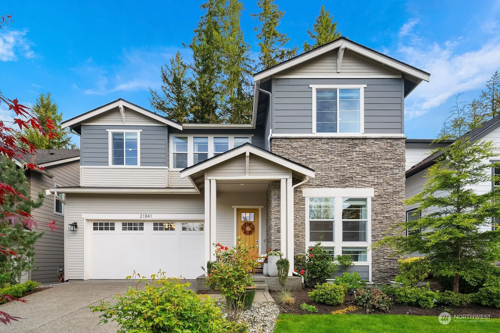 Experience the epitome of luxury living in desirable Inglewood Landing! This captivating home boasts exquisite details and premium features throughout. Step inside to discover all hardwood floors, soaring ceilings, and an open-concept layout that effortlessly combines elegance with functionality. Gourmet kitchen w/generous island, designer cabinets, SS appliances, quartz counters & custom bksplash. Luxurious primary suite with spa-like bathroom & dual closets. Three additional bedrooms, including a guest suite with an attached bath & versatile loft. Private yard with covered patio & paved sitting area overlooking big rock park for entertainment. Central AC. Steps from a vibrant shopping center, dining & parks. Lake WA schools. Preinspected.
