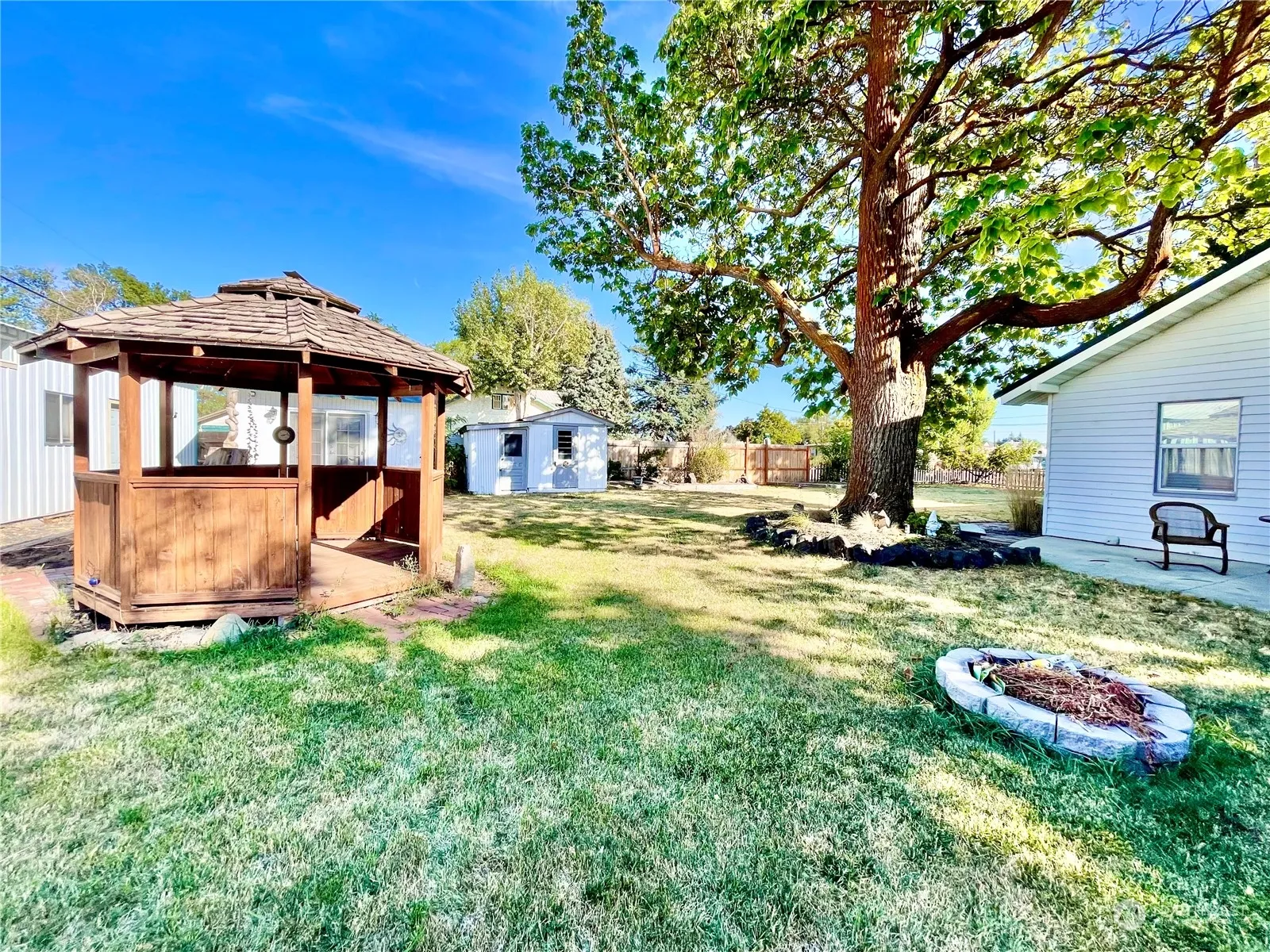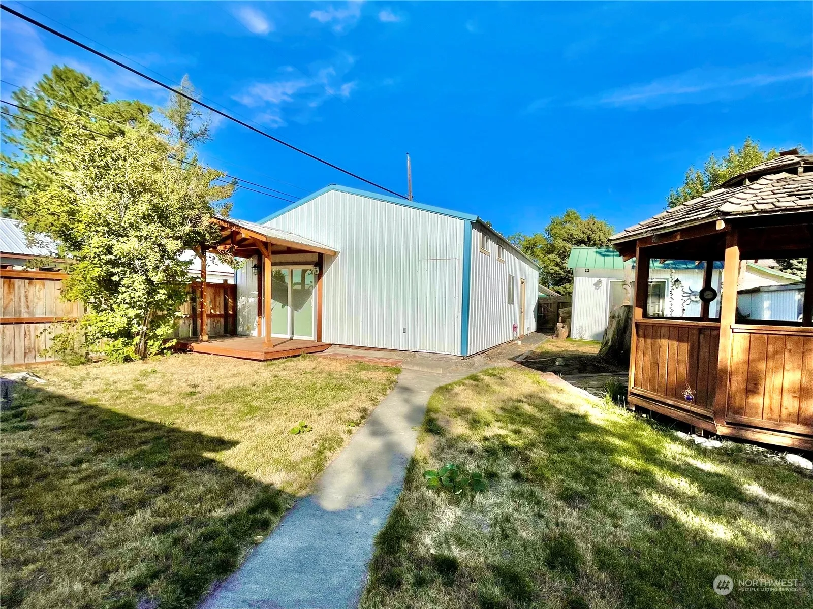Mother-in-law/Guest suite in shop! The 24×35 shop features the most adorable guest suite with its own 3 pc bathroom, mini-kitchen and bedroom. Still lots of room for the boat & autos! Charm abounds in this tastefully remodeled 2 bedroom home with extra touches throughout! A stunning fireplace w/ wood insert & blower anchors the large living room featuring beautiful wood floors. A country kitchen with a sunny nook offers lots of natural light! The full bath has been updated w/ subway tile surround, pedestal sink, & flooring. The property also features a separate studio space perfect for guests, office or crafts! Enjoy time in the private backyard under the gazebo or patio.