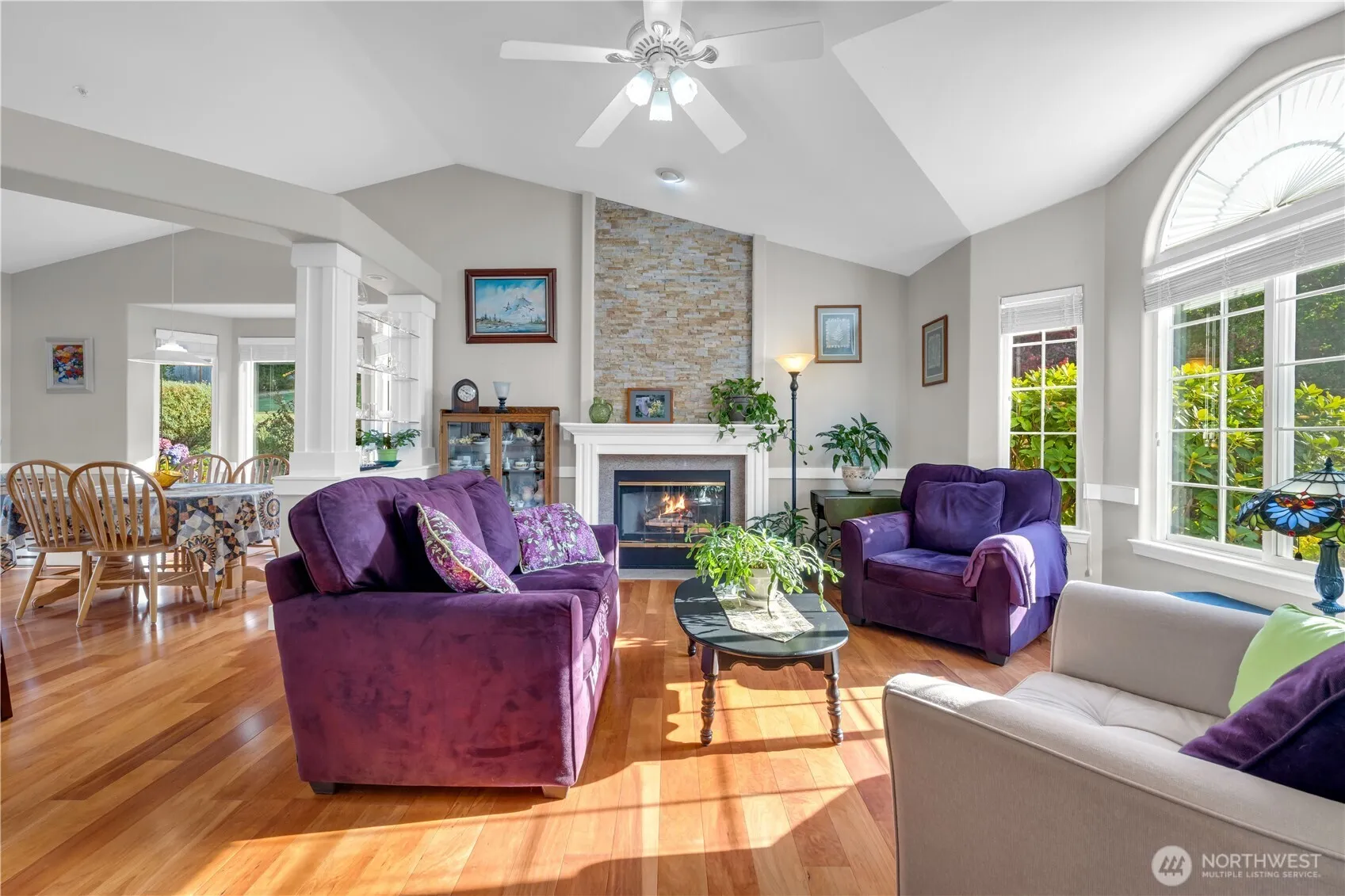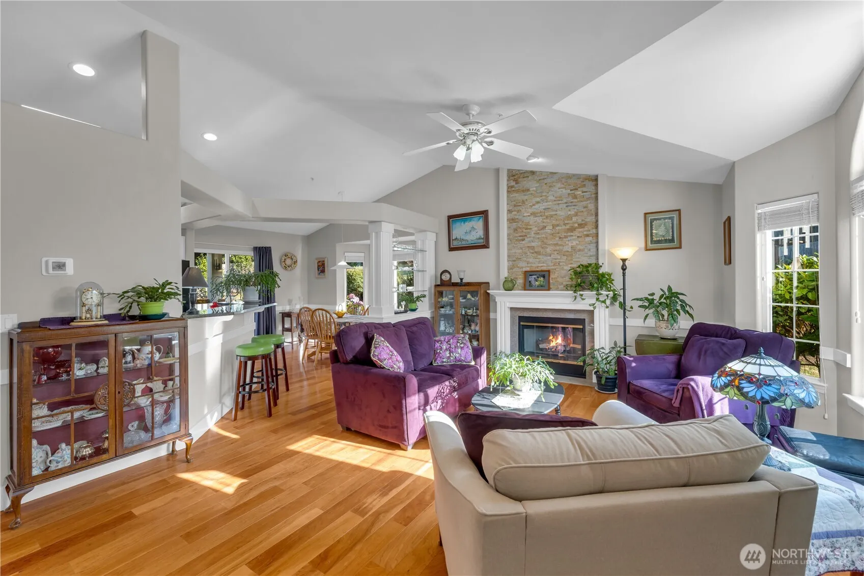 Welcome to your lovely home in a peaceful setting at the end of a quiet neighborhood. Enjoy ample parking with a 3-car garage (220 outlets), 10x20x10 canopy, 10×20 storage shed, and garden shed. The fenced backyard features strawberry and thornless blackberry plants, a fire pit and a covered deck backing up to Kayak Point Disc Golf Course, just a short walk to Kayak Point County Park. Inside, you’ll find granite kitchen counters with a gas stove, stone bathroom counters, tile floors, two gas fireplaces, and a tankless water heater. New roof, gutters, furnace, heat pump (80%), and appliances (2025).