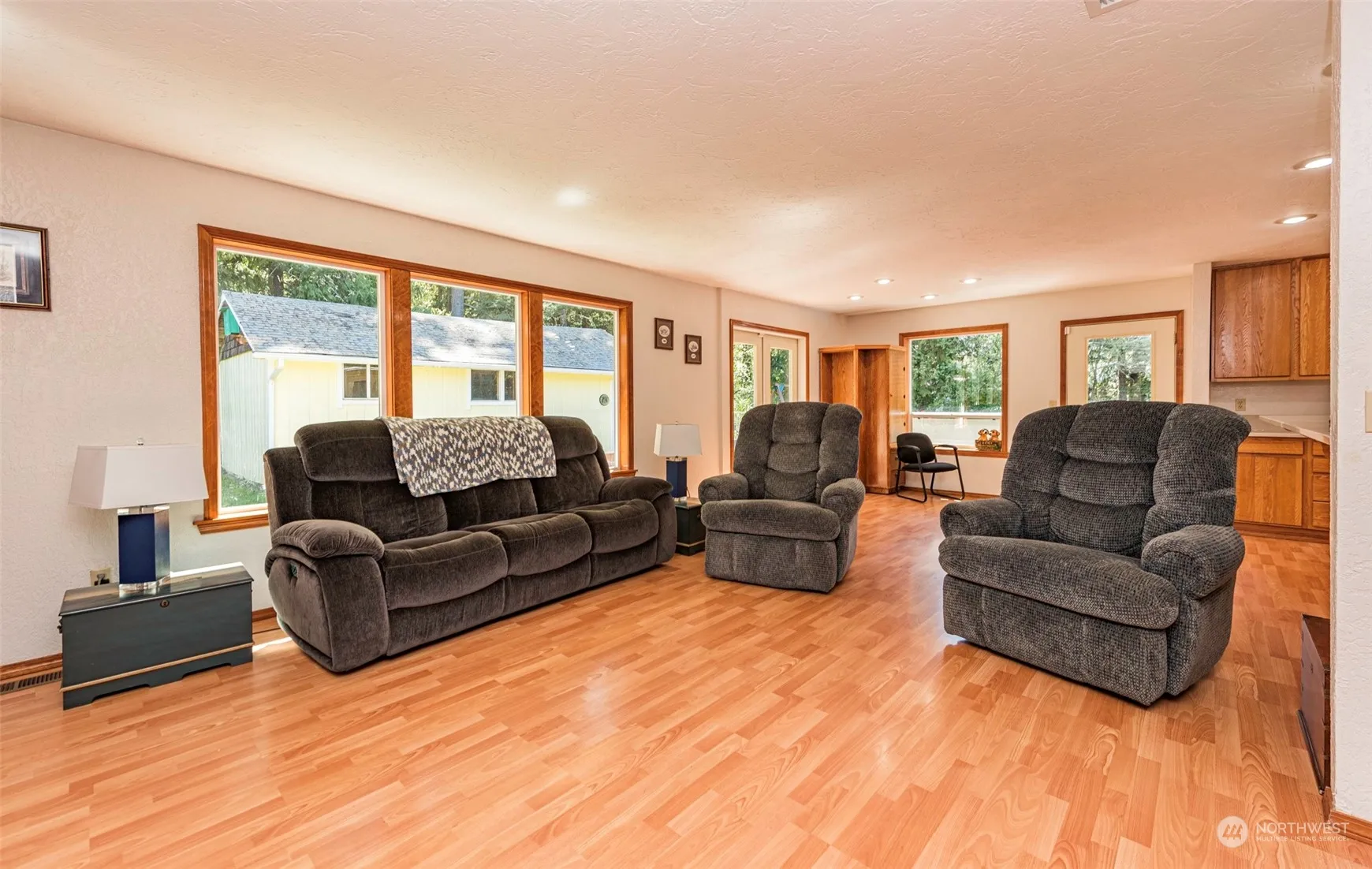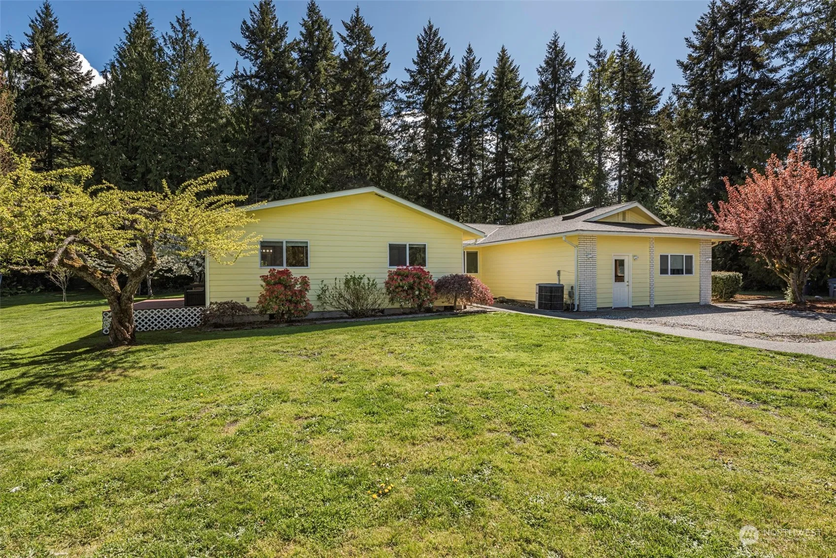 Lovely single level 3 Bed, 3.5 bath home on 1.56 acres w/2000 sf half round barn plus the adjacent one acre of lush forest. Sunny and bright yet very private w/plum, cherry, pear, apple and hazelnut trees – just beautiful! Home features 2 BR suites plus another couple dual purpose rooms to use as you see fit. New quartz counters and new appliances in the kitchen. Trex deck off the back to enjoy the incredibly private backyard with large outbuilding/storage shed. Separate private deck off of primary bedroom. Large living room area with propane fireplace. Plenty of room for everyone, the privacy we crave all with the natural beauty right on your own property. Great location just a few miles south of town.