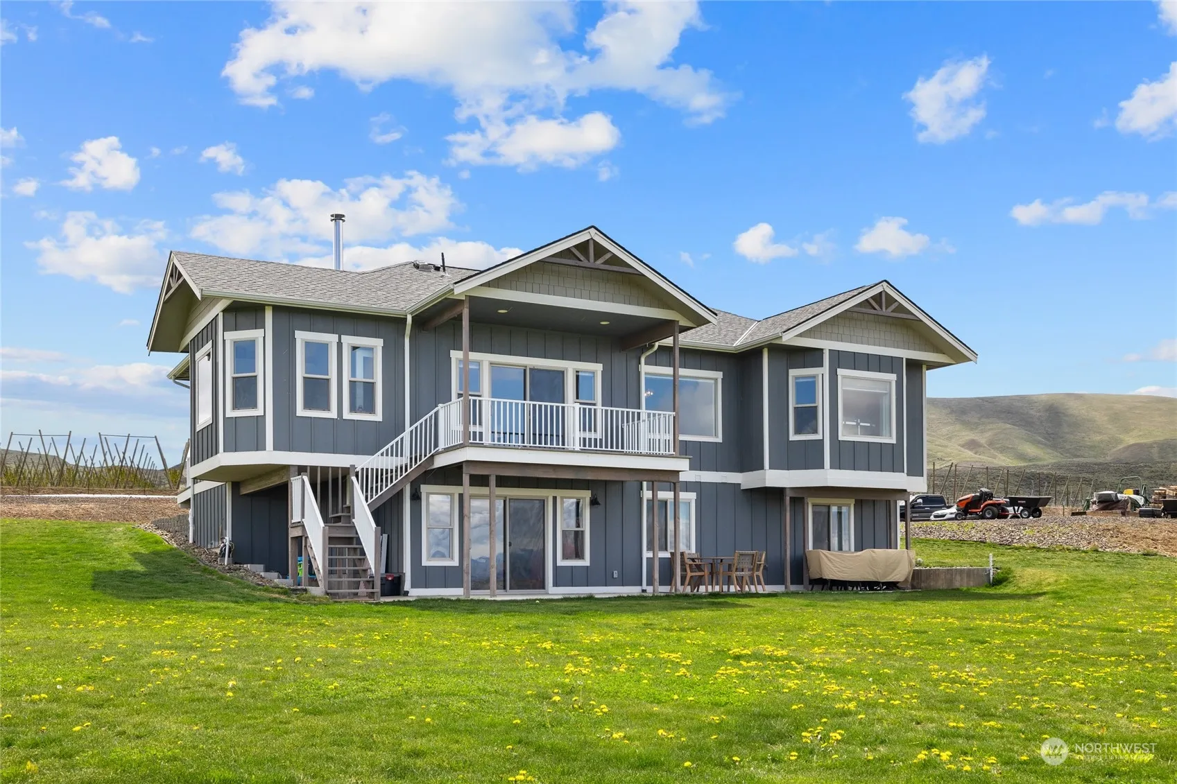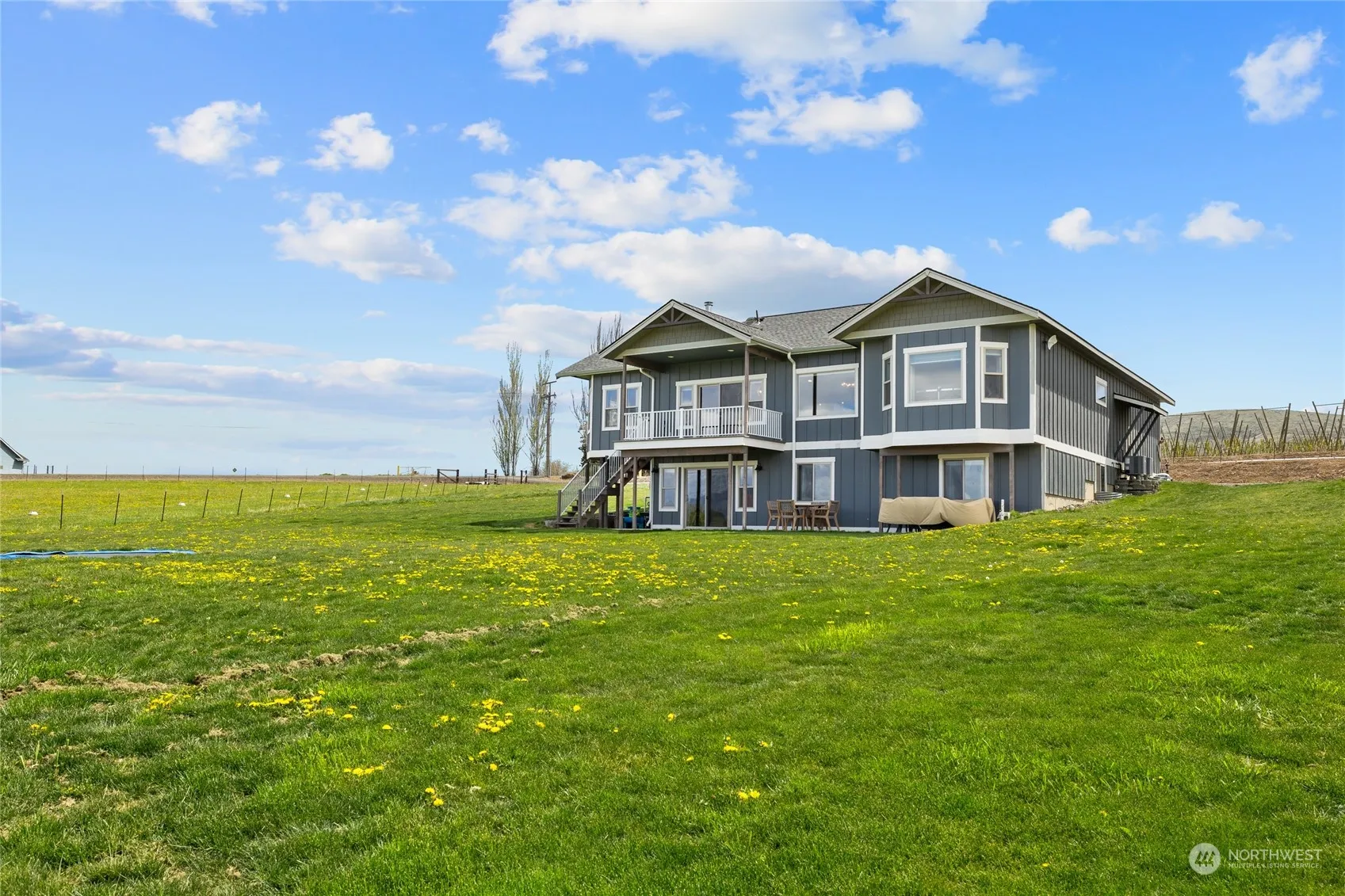 This stunning custom home, constructed in 2018, sits on 5.6 acres of pristine land, offering unparalleled views of the picturesque valley and majestic Stuart Mountain range. With 2705 square feet of thoughtfully designed living space, this home features 4 beds and 2.5 baths. The main floor is highlighted by a luxurious primary suite, providing convenience and comfort. An open layout seamlessly connects the living, dining, and kitchen areas, creating an inviting atmosphere for entertaining. Descend to the lower level to discover a spacious bonus room and three additional bedrooms, providing ample space for guests. Outside, this property utilizes irrigation water rights, ensuring lush fields and pastures for livestock if desired.
