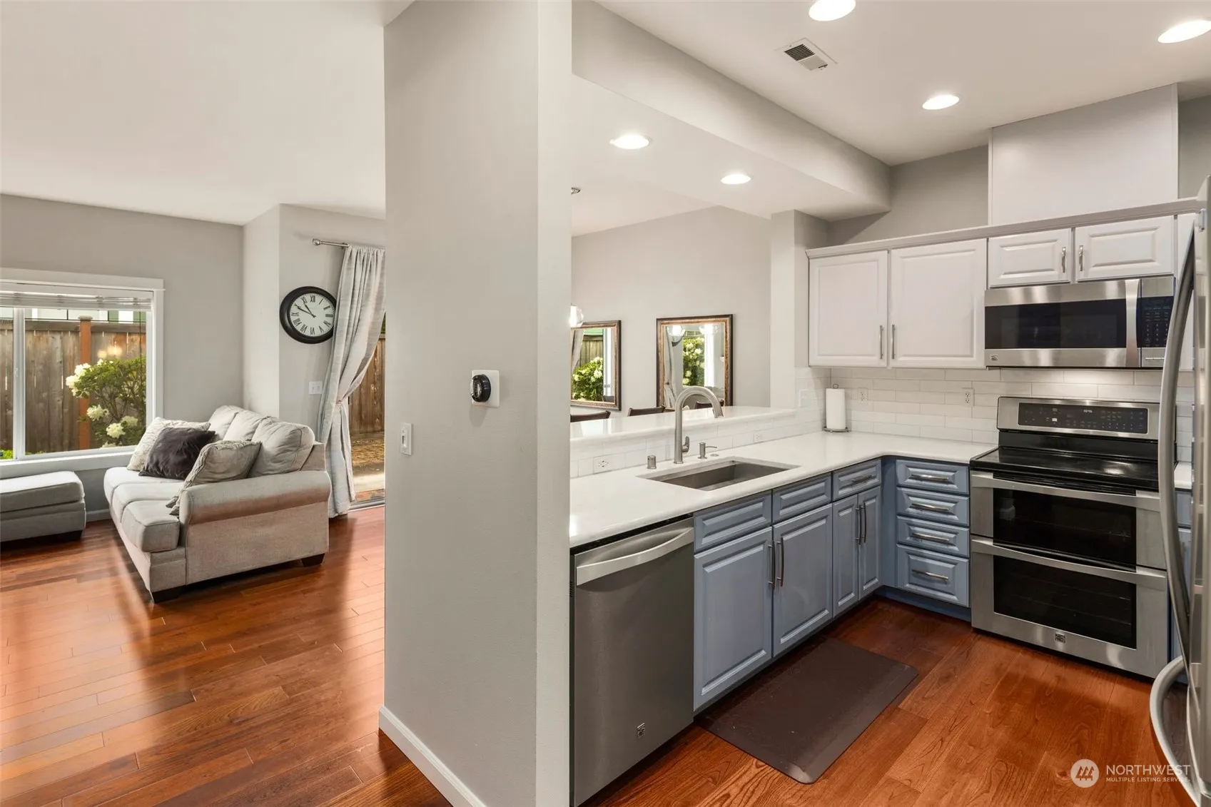 Welcome home to your updated townhome in the peaceful & gated Hampton East. Complete with gourmet kitchen/pantry, updated cabinetry, slab counters and stainless appliances, you’ll feel immediately at home in this spacious, open-concept living space with 9-foot-ceilings and gas fireplace for cozy evenings at home. Updated hardwoods on the main floor, updated half bath, breakfast bar & dining area with slider outside to your covered patio. Walk-in closet off primary suite, custom built-ins in second bedroom, WFH with built-in desk upstairs. High walk score surrounded by restaurants, shopping & easy access to the freeway. No rental cap, no assessments, no pet restrictions! FHA & VA approved! Come see it today!