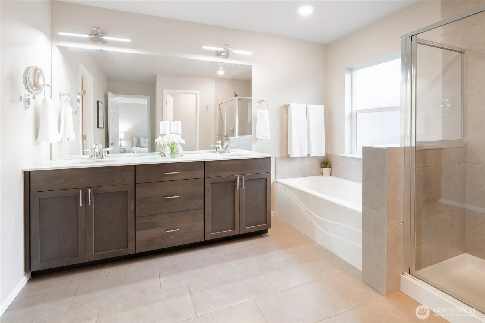 Welcome home to this beautifully refreshed Sequoia plan in the sought-after Ten Trails community. Designed for modern living, this home welcomes you with a soaring two-story entryway and features a main-level junior suite, updated designer lighting and fixtures, as well as hardwood floors throughout the main level. The open-concept island kitchen boasts quartz countertops, a walk-in pantry, and a large island perfect for entertaining. Upstairs, the spacious primary suite offers a spa-inspired bath, plus three additional bedrooms and a generous laundry room. Just 350 feet from the nearest park, this home showcases a brand-new yard with fresh sod, beauty bark, and meticulous updates. Truly a must-see!