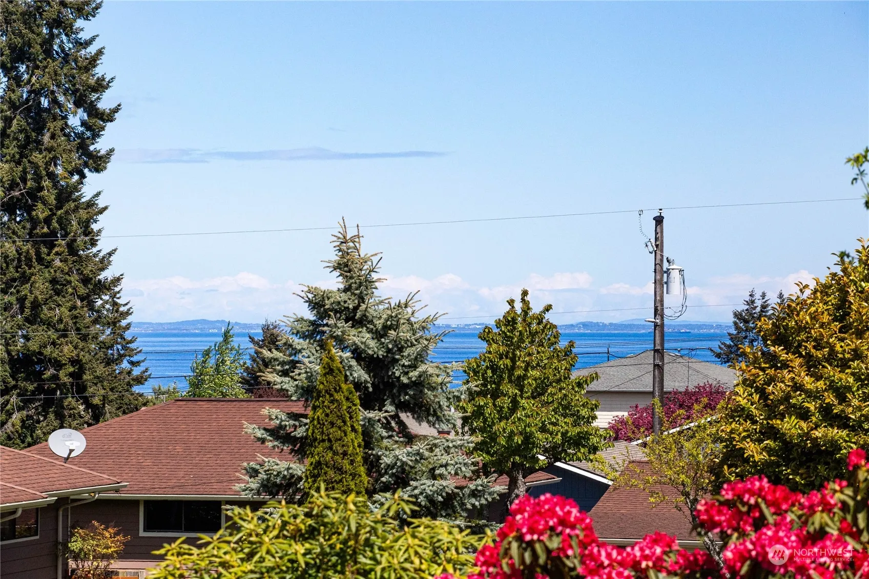 Single story 3BR 2BA home + bonus room, w/saltwater & mountain views! Located in a quiet established neighborhood, you’ll love the cheerful landscaping, french doors to a large covered porch, raised garden beds, storage shed, attached garage & paved driveway w/alley access. Interior has a lovely flow & upgrades, featuring ductless heat pump, propane fireplace, new blinds, vinyl flooring, dining area w/pantry, built-in buffet including granite counters, undercabinet lighting, pullouts, china pegs & pan uprights, new stainless refrigerator, updated main bathroom, double closets in the primary + attached bathroom & so much more. You can have it all with this one!