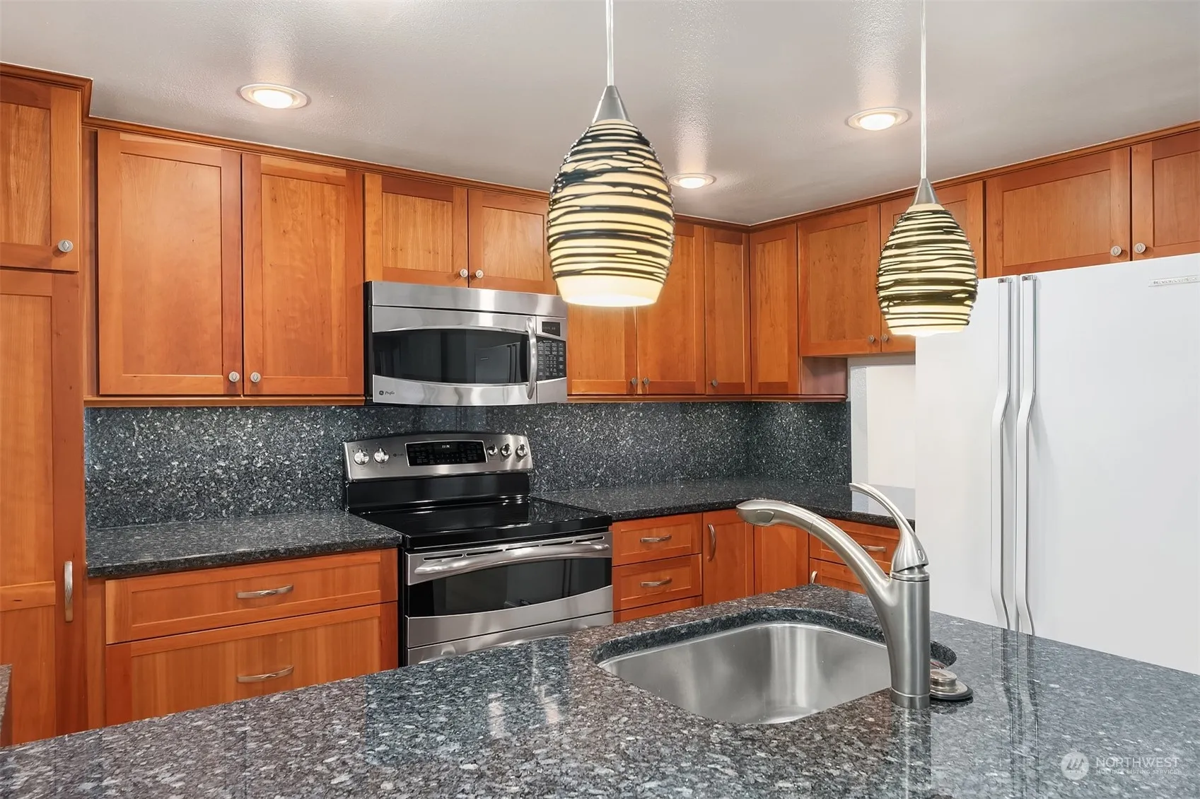 Welcome to Sammamish Forest Manor, the highly desirable, perfectly located community. Close to everything with a true neighborhood feel. Just under 2000 sq. ft., this spacious townhome features 3 Beds/2 Baths, ample storage & new windows. The kitchen shines w/beautiful granite countertops, bamboo flooring, breakfast bar & adjoining dining/office area. Separate dining & living room w/wood burning fireplace. Expansive, private deck on greenbelt. Main level primary suite w/vaulted ceiling & 3/4 bath. Upstairs 2nd & 3rd bedrooms with adjacent full bath & skylights to bring in natural light. Community Amenities: clubhouse, outdoor pool, playground, tennis courts & RV parking. 2-car attached garage w/Add’l driveway parking. A/C! & Lake WA Schools