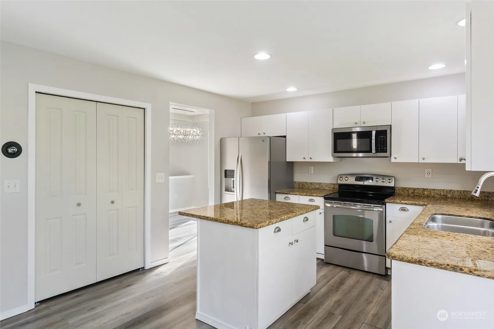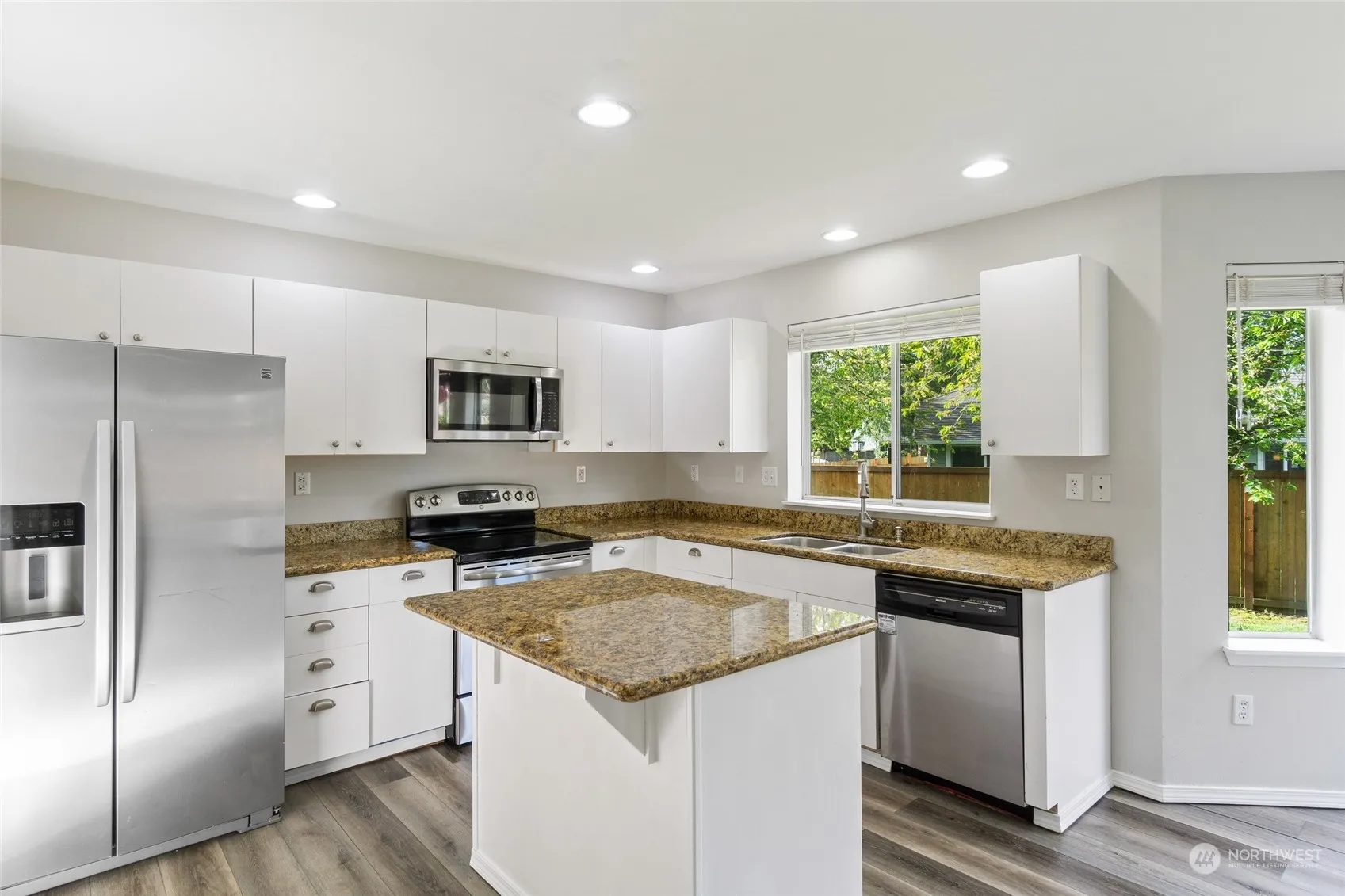 Sought-after 3bd + den Maple Valley corner unit single family home with abundance of natural light, AC, and great outdoor living. Front door leads to the main floor with vaulted ceiling, vinyl plank flooring, dedicated dining room, and oversized living room with cozy fireplace. Fully stocked kitchen with quartz countertop, all stainless steel appliances (gas stove, microwave hood, dishwasher, and refrigerator), and spacious pantry. Upstairs has flexible open space at the landing, en-suite master bedroom, and two additional bedrooms sharing a full bath. Fully fenced and level backyard has patio and storage shed. Top Maple Valley schools and conveniently located just minutes to community playground, highway, shopping, and restaurants.