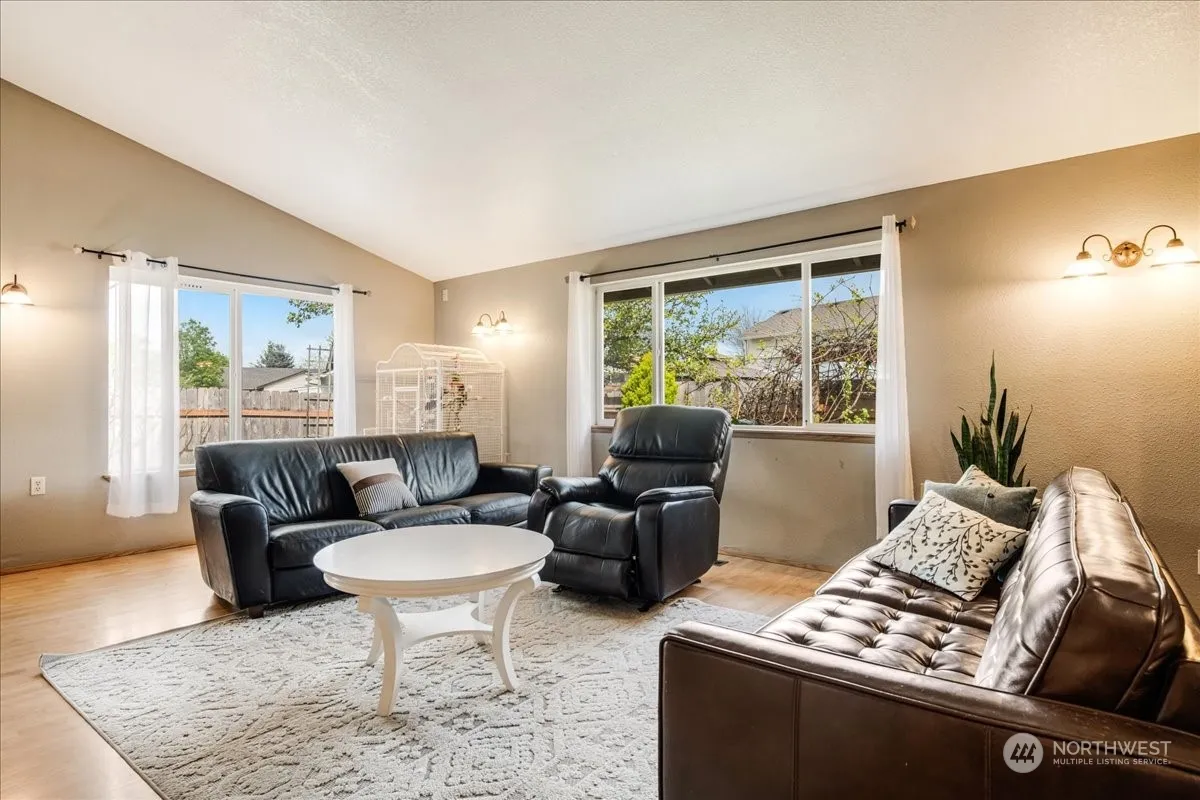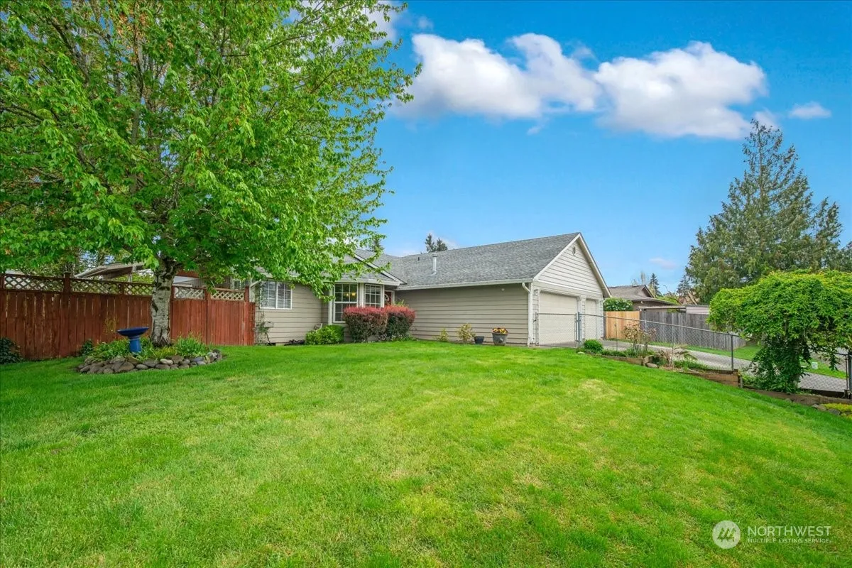 This 3-bed, 2-bath Battle Ground home prioritizes accessibility and practical living. Features include vaulted ceilings, gas heat, and AC for comfort. An office space is efficiently integrated into the 3rd garage, with ample storage throughout. Accessibility features include widened door frames and a wheelchair-friendly Roman shower in the master suite. Outdoors, enjoy a private hot tub, fenced yard, raised garden boxes, and tranquil ponds. With a 3-car garage and storage solutions, this home balances everyday needs. Ideal for those seeking accessibility and functional living.