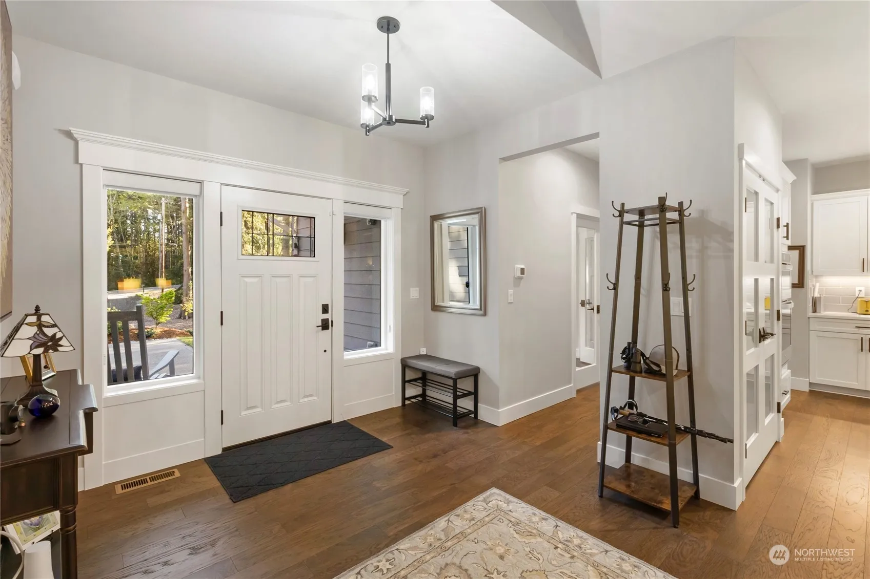 Immaculate Rambler on over two acres in Gig Harbor! Built in 2020, over 2,300 SqFt, features 3 bedrooms, 2.5 baths and a spacious office. Open concept, gorgeous hardwood floors, white millwork, high end window treatments, great room with stone faced fireplace and vaulted ceilings. All white kitchen has double oven, large pantry space and beautiful island to gather around. Primary bedroom with free standing soaker tub, custom shower and massive walk-in closet. Step out your double glass sliding doors onto the covered back patio and take in the serenity, nature and wildlife. Landscaped, garden space, sprinkler system, leaf-guard gutters and RV Parking! Finished 3 Car Garage, A/C, wired for generator and on-demand hot water. Come enjoy!
