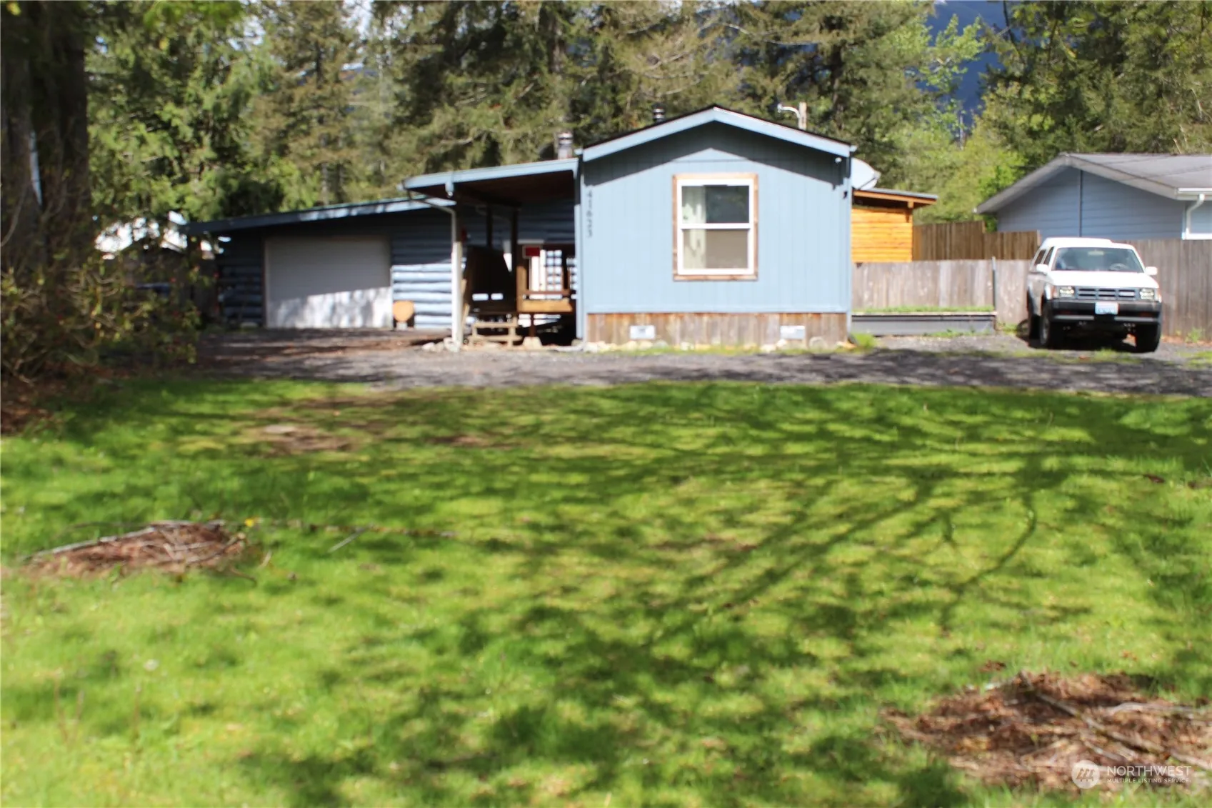 Exceptional value in this modest home. 2 bedrooms 1 full bath cozy Living room with fireplace and flows nicely to kitchen includes all appliances. New roof and Water Heater. 2 large self supporting covered decks, 675 sqft garage/ shop with wood stove and power. .25 of an acre, fully fenced backyard. Only 5 minute walk to community park with creak access and a 5 minute drive to the famous Reiter pit. FHA Certified.