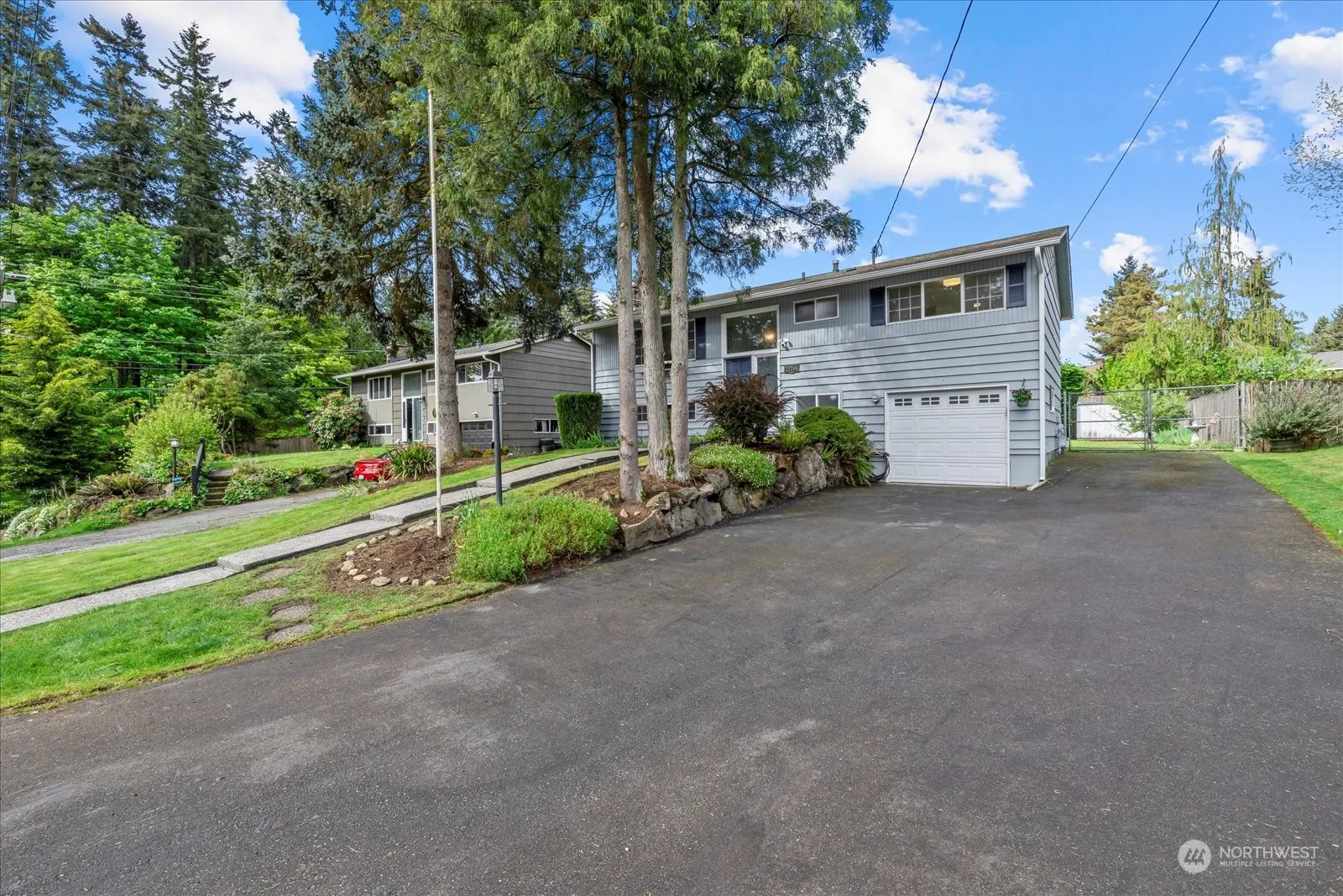 Improved price on this move-in ready home now with pre-inspection and warranty! Updated with all new paint, fixtures, stainless appliances, quartz countertops, new carpets, and refinished hardwoods. Lovingly and meticulously maintained and landscaped for the last 56 years – first time to market since 1968. With three bedrooms, 1 bath upstairs + 4th bed/office, half bath and rec room downstairs, this split level has room to spread out. The deck can be shaded by retractable awning for those bright PNW days. Level back yard contains a shed and spot for a fire pit. Park your RV/boat in the separate parking and bring your hobbies to the attached garage with workspace. Two gas fireplaces. Close to schools, grocery, parks and upcoming light rail.