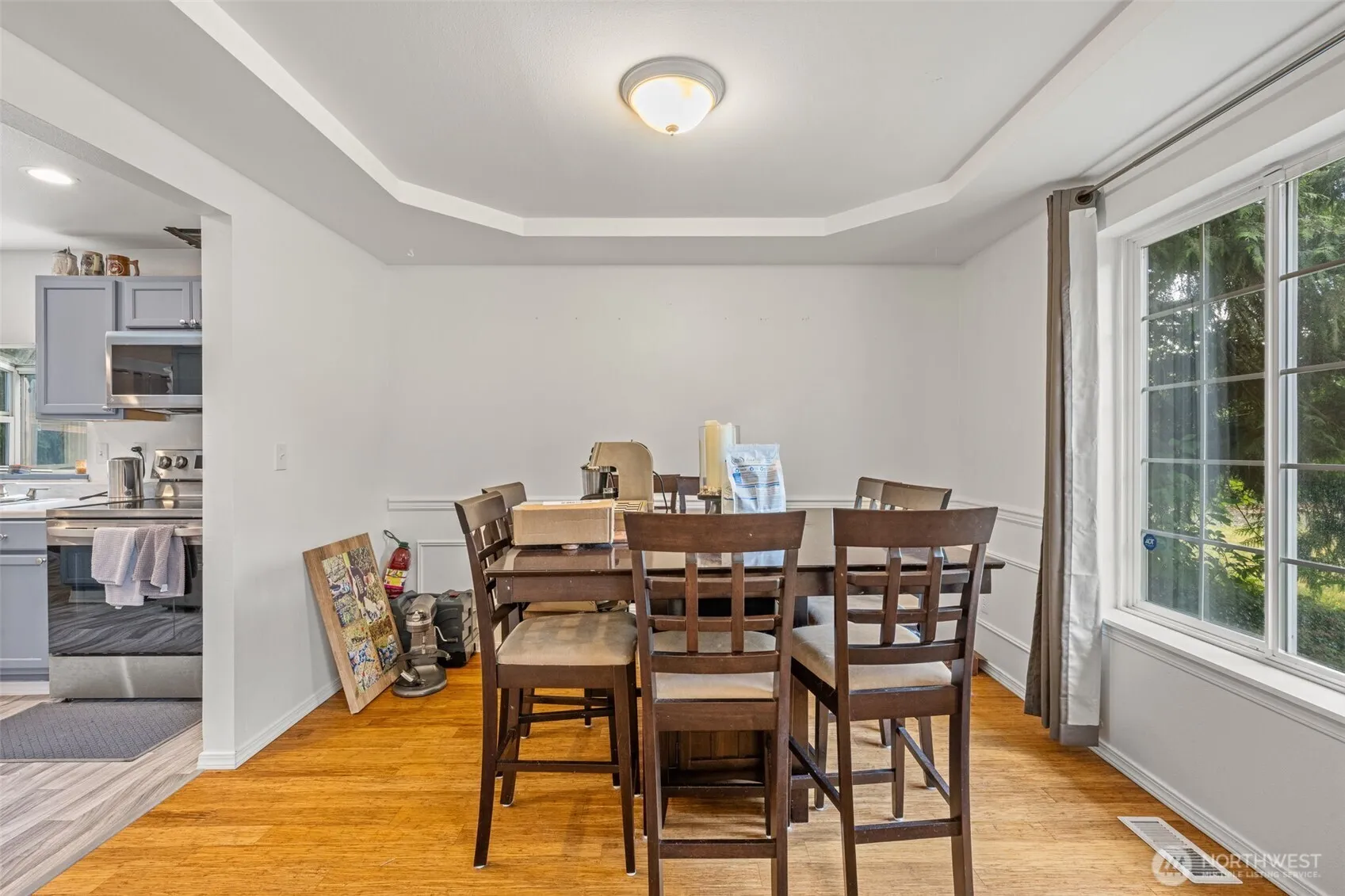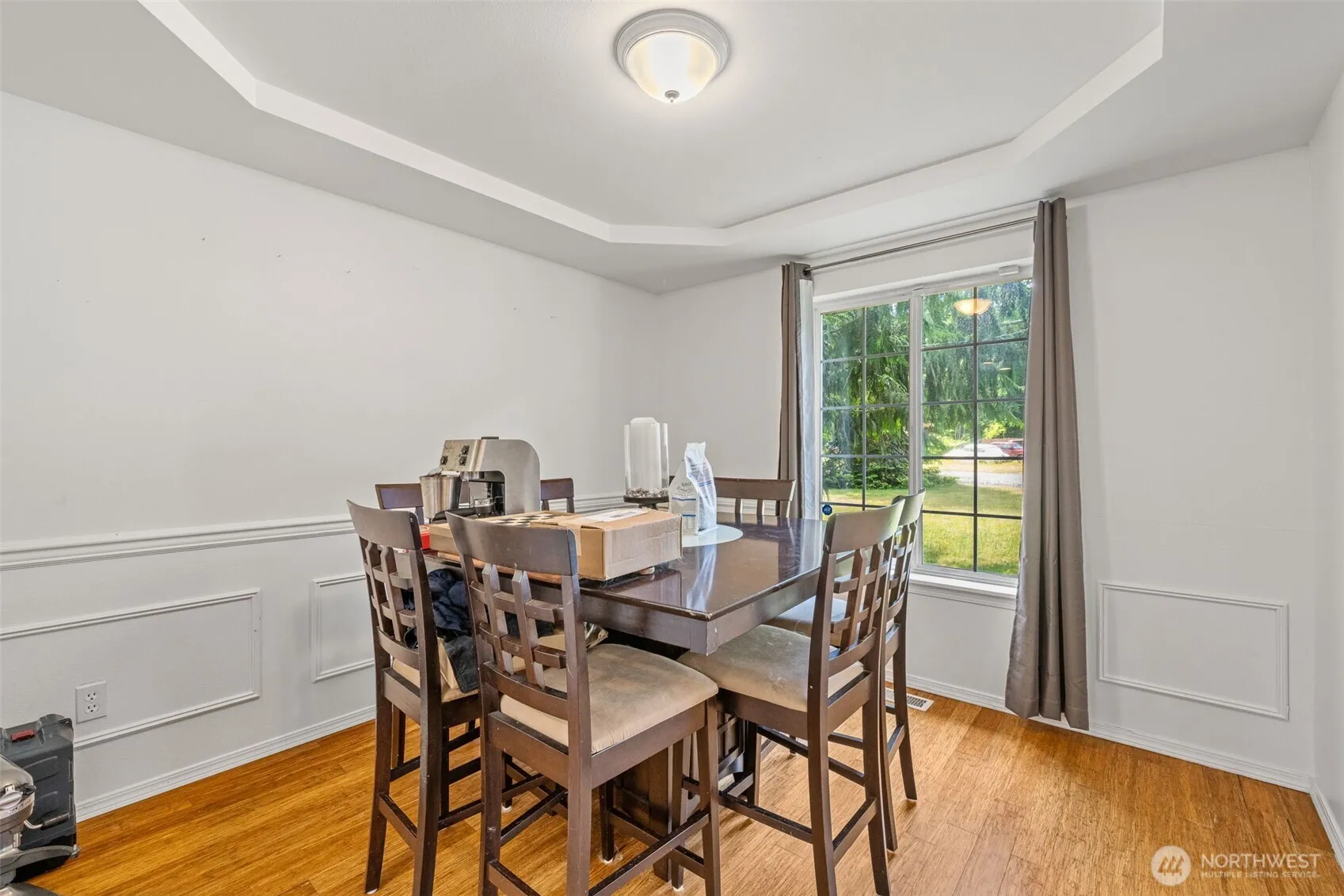 Welcome to your serene retreat in Graham! This beautifully maintained home sits on over an acre of level land, offering space, privacy, and potential. Enjoy a spacious layout with vaulted ceilings, and abundant natural light. The kitchen features ample cabinetry and counter space, perfect for entertaining. Primary bedroom includes an en-suite bath and walk-in closet. Step outside to a fully fenced yard, oversized deck, fire pit, garden space, and multiple outbuildings—ideal for storage or hobbies. Room for RV parking, toys, or even future expansion. No HOA. Located on a quiet street but just minutes to schools, shopping, and JBLM. Country living with convenience!